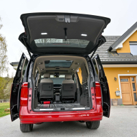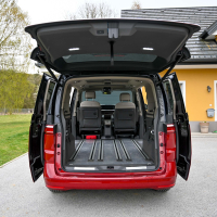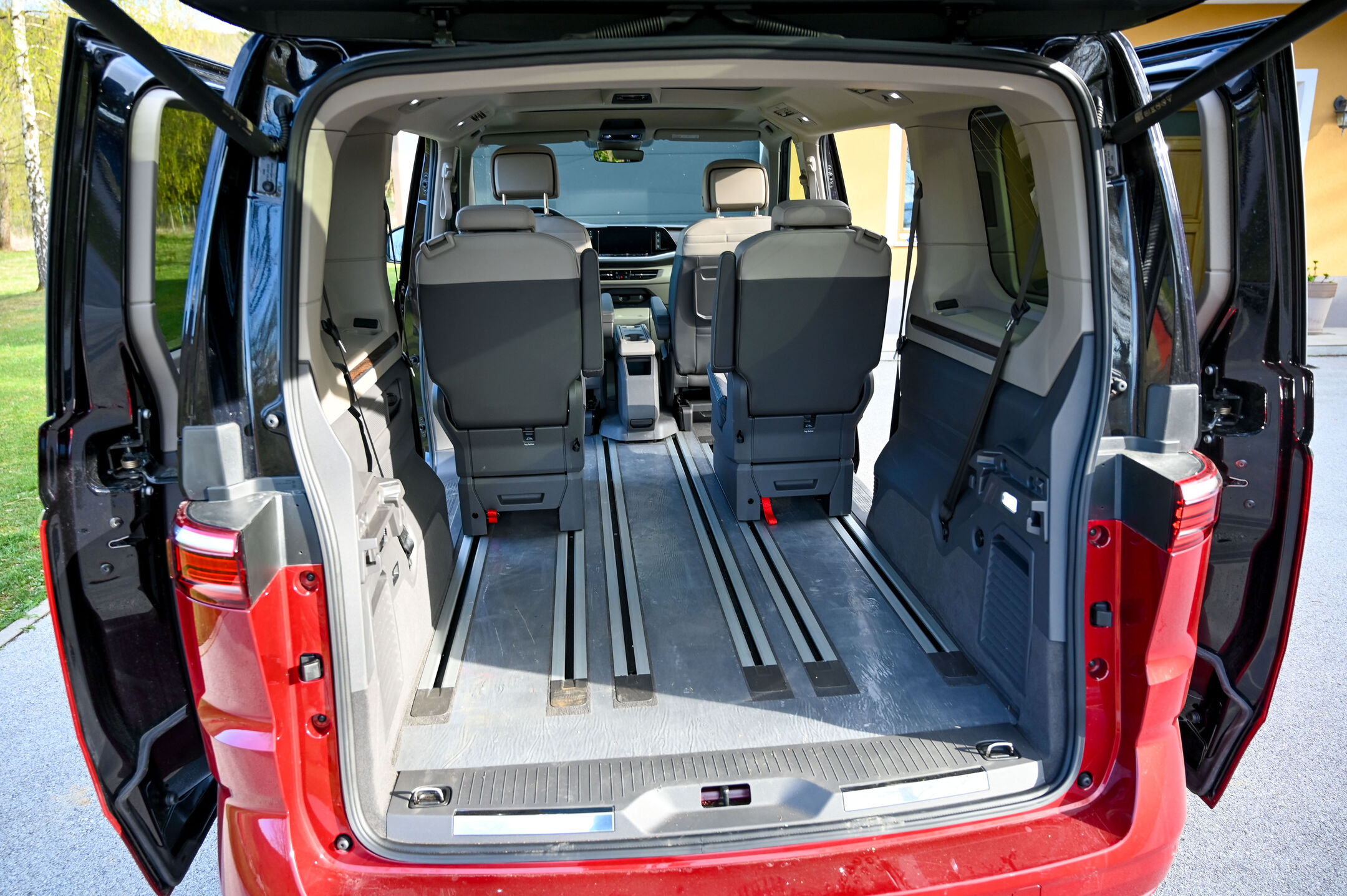 Uporabnost novi multivan izkazuje še z razkošnimi dostopi zaradi širokih vrat na obeh bokih in zadaj, ki jih na daljavo odpira in zapira elektrika. Je pa po nosilnosti bližje enoprostornežu kot lahkemu dostavniku; kar precej razpoložljivih kilogramov mu vzame električna energetska shramba, tako da za potnike in prtljago ostane manj kot pol tone nosilnosti (457 kg), kar je manj kot v kakšnem velikem karavanu. “Tovorni obliž” pri hibridni različici predstavlja vlečna kljuka, s katero je tudi v električnem voznem načinu dovoljeno vleči do 1,6 tone težko prikolico.