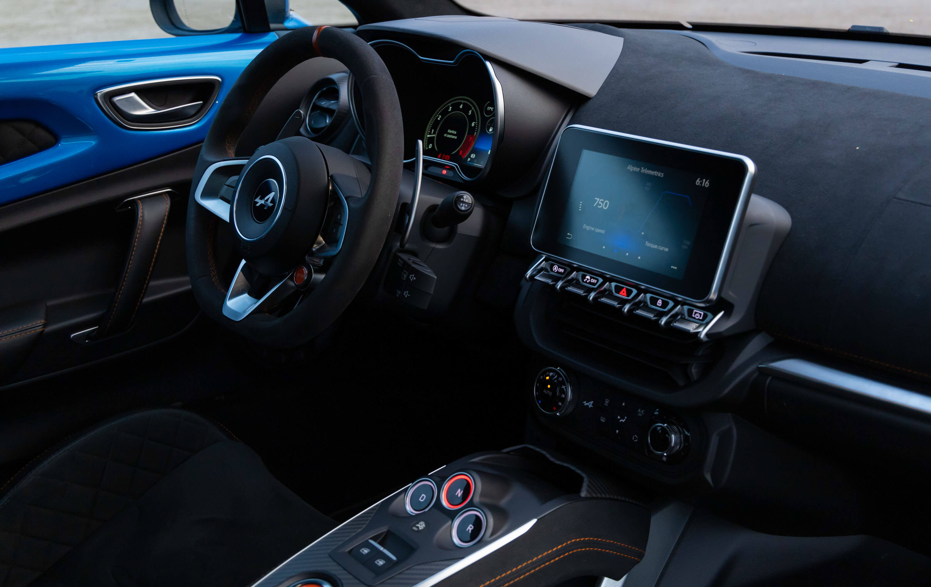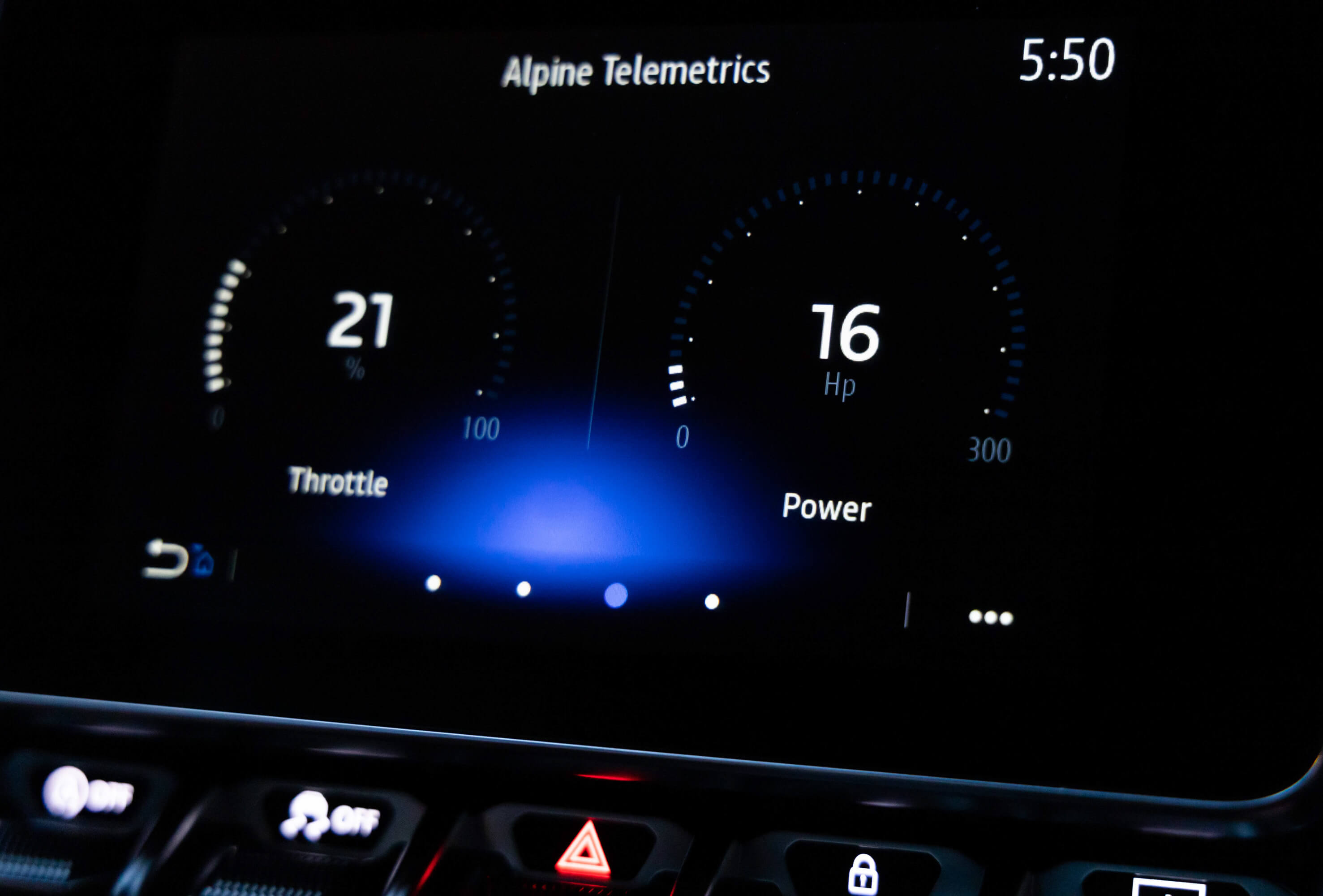 Alpine od voznika zahteva polno prisotnost vseh čutil. Že izjemno nizek sedežni položaj in objem Sabeltovih športnih školjkastih sedežev dajeta vedeti, da alpine ne sklepa kompromisov. Ko prvič pritisneš veliko rdeče stikalo sredi sredinske konzole in prvič bliskovito hitro zamenjaš prestavo, je jasno, zakaj alpine prevzema primat Renaultove RS športne selekcije. Težko je opisati občutke, ko na centimeter natančno zadeneš vrh ovinka ali ko se bližaš meji oprijema. Alpine ti takrat postavi največji izziv: “Upaš, znaš, a ne izzivaj!” To je avto, ki zahteva zrelega in pametnega voznika ter dobro mero dresure zase in za vozniški ego. Pravi voznik bo v tem avtu vozil varneje, bolj osredotočeno in zavzeto. V njem ti niti na misel ne pride, da bi pogledoval na zaslon telefona. Prav vseeno ti je, kako odziven in velik je sredinski zaslon. Zanima te le prava prestava, zven vrtljajev in cesta. V njem voziš, ukvarjaš se s cesto, s podlago in ovinki. To je tista najbolj varna stran zmogljivega avtomobila. Če si povsem zaupaš, ti alpine omogoča popolno svobodo brez elektronskega nadzora. V programu TRACK si prepuščen svojemu znanju, zaneseš pa se lahko na vrhunsko uravnoteženo podvozje, odličen mehanski in aero oprijem ter zmogljive zavore.