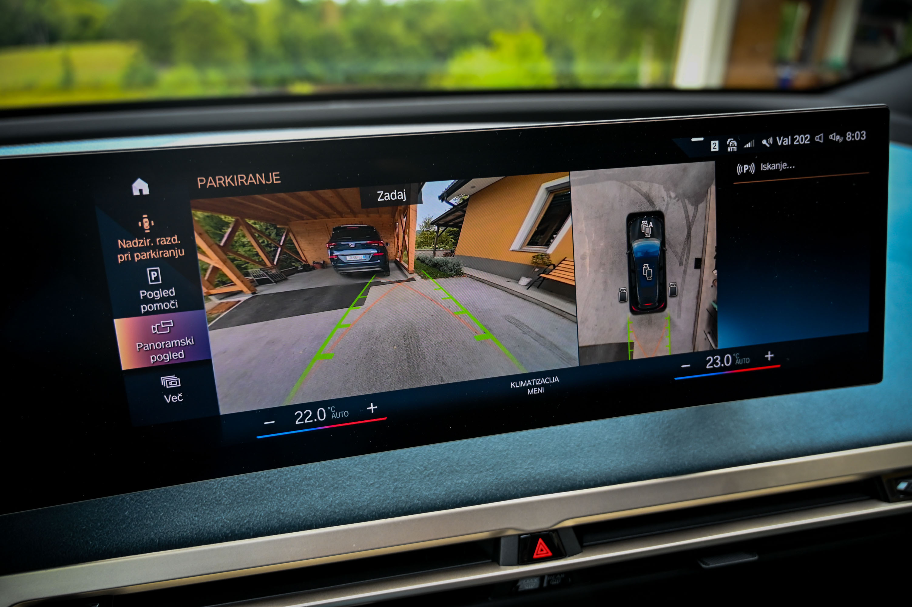 Avto na cesto gleda s petimi kamerami, petimi radarji in dvanajstimi ultrazvočnimi tipali. Paket varnostnih inovacij stane dodatnih 5 evrskih tisočakov, z njim pa BMW iX obvlada naloge 3. stopnje avtonomne vožnje, čeprav vsa aktivna pomagala na slovenskih cestah še ne delujejo. Pri aktivni varnostni podpori vozniku velja izpostaviti zelo natančnega pomočnika za vzvratno vožnjo, ki s samodejnim krmiljenjem odlično obvladuje tudi parkiranje oziroma zapuščanje parkirnega prostora. BMW iX zgledno ohranja smer na sredini voznega pasu in voznika tudi zgledno opozori na stop znak ali rdečo luč na semaforju.