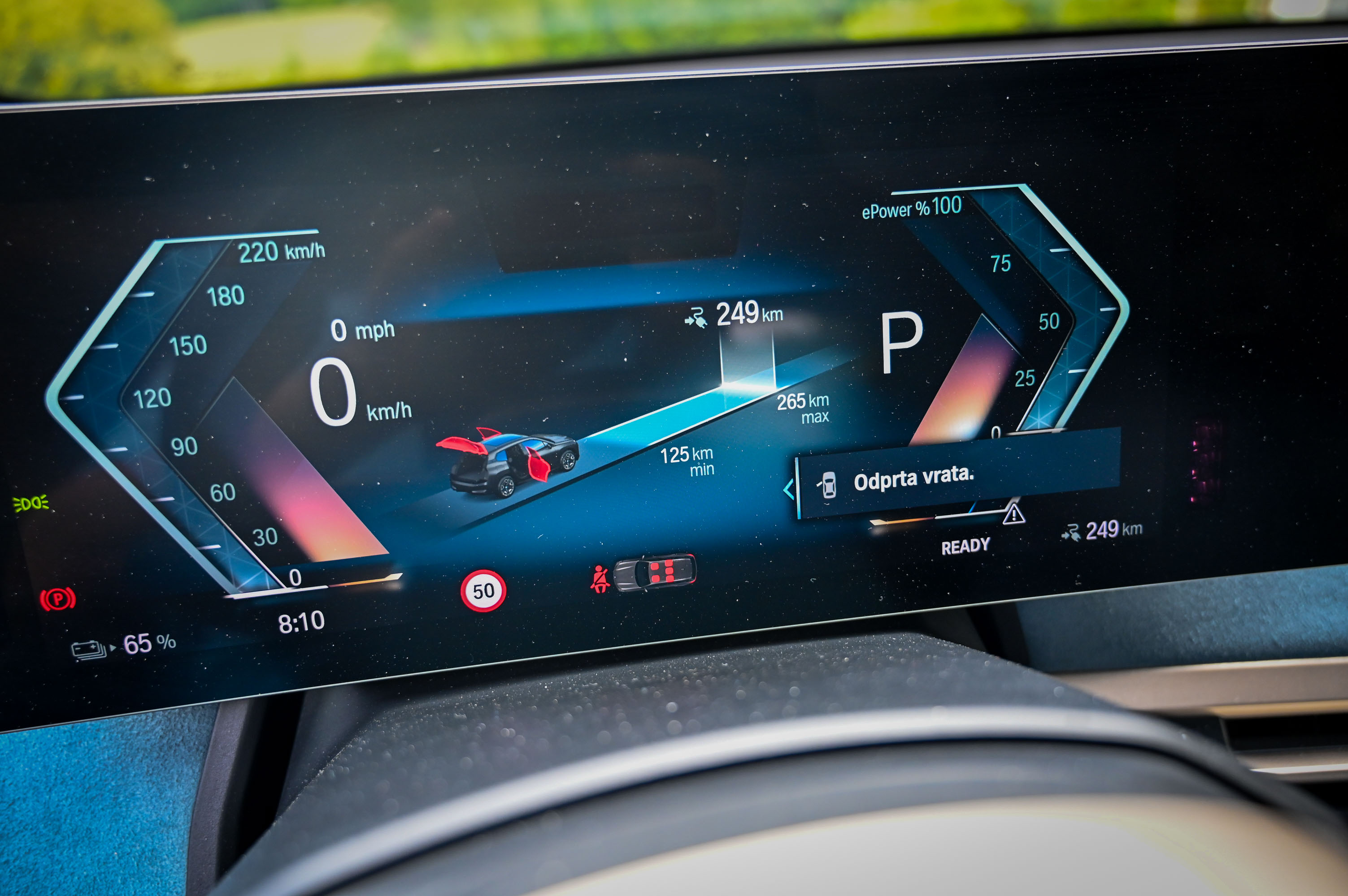 Škoda, da zajeten motorni pokrov, pod katerim ni valjev, lahko odpirajo le na servisu, saj je pod njim zagotovo dovolj prostora, da bi lahko naredili še kakšen predal za polnilno opremo. Tekočino za pranje stekel se nalije skozi lij, ki ga pokriva BMW logo nad ledvičkama. Kljub temu, da iX še vedno ohranja najbolj značilne BMW-jeve oblikovne elemente, pa predstavlja nadaljevanje revolucije, ki jo je pred zdaj že skoraj desetletjem sprožil prvi električni BMW-jev model i3. Ta je še danes videti sodobno drugačen.