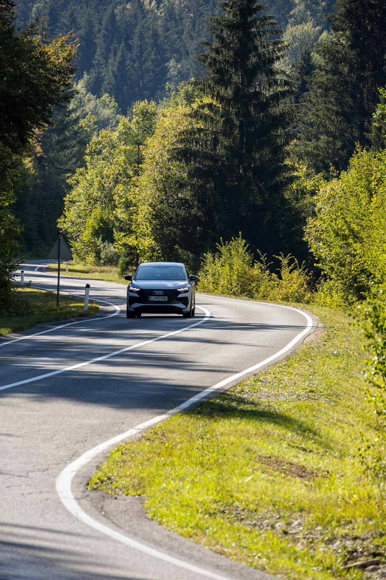 V primerjavi s Q4 40 e-tronom, ki smo ga preskusili letos spomladi, Q4 50 e-tron quattro izstopa predvsem zaradi dveh električnih motorjev; poleg sinhronega motorja zadaj s 150 kW ima tudi asinhroni električni motor z 80 kW spredaj, ki deluje le, kadar to zahtevajo vozne razmere (slab oprijem) ali voznik (plin do konca). Sistemska konična moč 220 kW in navor 460 Nm ob štirikolesnem pogonu zagotavljata le pospešek do 100 km/h v le 6,2 sekunde in odlična pospeševanja pri prehitevanjih. Ob akumulatorskem sklopu z uporabnih 77 kWh zaloge energije takšen audi z enim polnjenjem lahko prevozi od 340 do 440 kilometrov ob porabi energije od 18 do 24 kWh/100 km, kolikor smo zabeležili med našim preskusom. Z izmeničnim tokom ga lahko polnimo z največ 11 kW, z enosmernim pa z največ 125 kW.