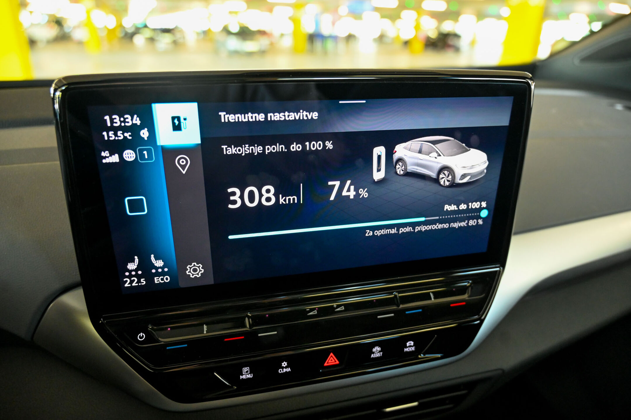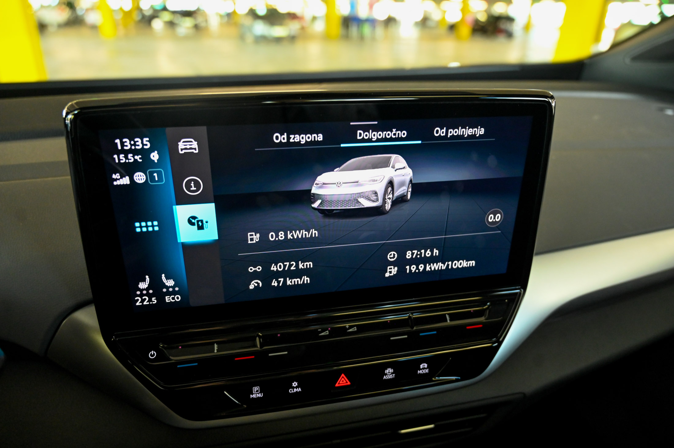 ID.5 je eden tistih električnih avtomobilov, ki ob razpoložljivi domači vtičnici brez težav izpolnjuje vlogo družinskega avtomobila. Z njim smo vsak dan potovali iz Ljubljane na Dolenjsko, pa nam avta ni bilo treba vsak večer s kablom povezovati v energetsko omrežje. Optimizacija programske opreme se oč tudiitno pozna tudi pri nadzoru energetske shrambe. Tokrat smo ob prijetnih zunanjih temperaturah na sto kilometrov porabili tudi manj kot 16 kWh elektrike, testno povprečje z veliko avtocestnimi kilometri pa je bilo 16,9 kWh/100 km. To pomeni, da smo brez živčnosti z lahkoto prevozili od 420 do 430 kilometrov, ob tem pa na polnilnico pripeljali še s 30 kilometri rezerve v dosegu, kar je dovolj, da najdeš drugo polnilnico, če so vsi priključki na izbrani lokaciji zasedeni ali pa je polnilnica v okvari, kar se zadnje čase dogaja precej pogosto.