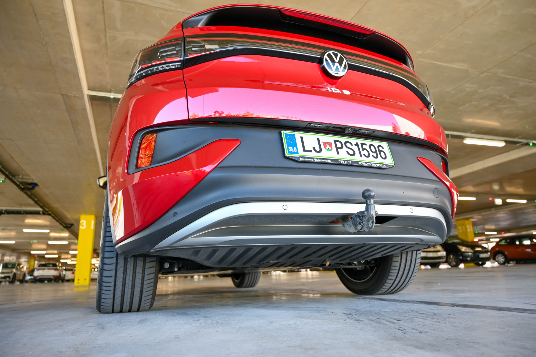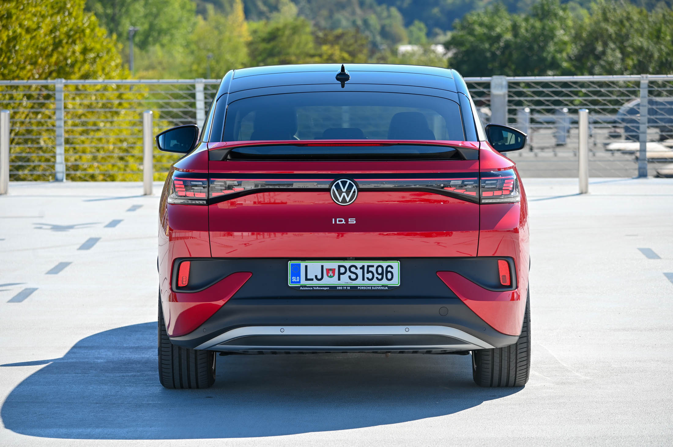 Prav je, da tokratni test najprej začnemo pri obliki tega prostornega križanca, ki s kupejevsko strešno linijo vsaj na pogled obljublja več vozniške dinamike kot njegov - po centimetrih skoraj identičen - brat ID.4. V dolžino je ID.5 zaradi malce nižje strešne linije, ki se lepo izteče v zadnji del avtomobila, na katerem je še diskreten, a vendarle opazen zračni usmerjevalnik, daljši za zgolj poldrugi centimeter. Ta praktično neopazni dolžinski prirastek je popolnoma nepomemben in le največji pikolovci bodo kot učinek malce podaljšanega zadka opazili tudi za 6 litrov več prostora v 549-litrskem prtljažniku. Ta je enostavno dostopen; elektrika odpira in zapira velika prtljažna vrata, ki zajemajo tudi zadnje steklo.