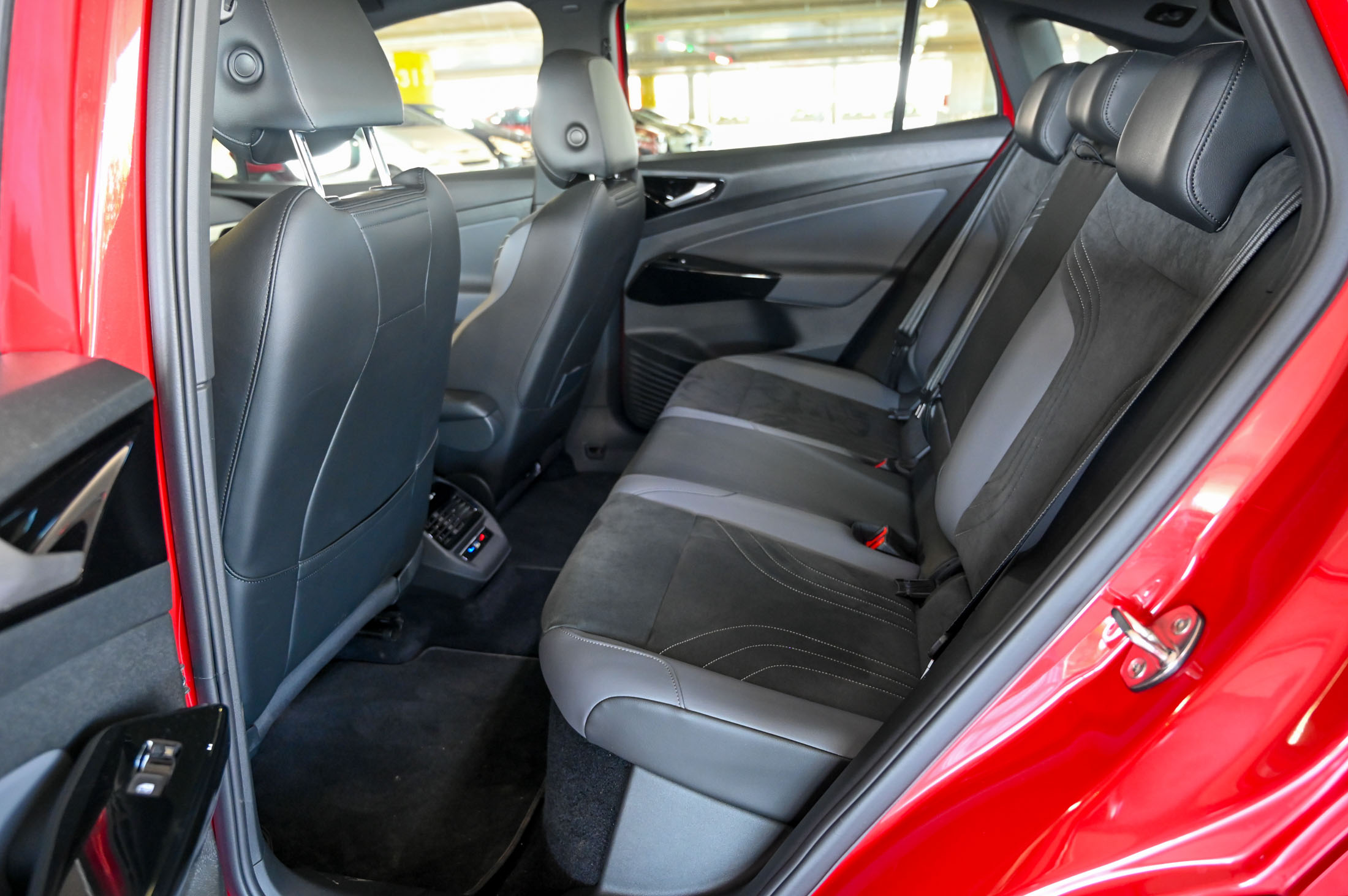Omenili smo že odlična prednja sedeža, pohvalo pa si ID.5 zasluži tudi za pregledno, svetlo in predvsem prostorno kabino. Na zadnjo klop brez težav sedejo tudi trije odrasli potniki, višji od 180 cm in ne bodo imeli težav s prostorom za kolena ali glave. Dno kabine je povsem ravno, zato je tudi na sredinskem delu klopi mogoče brez težav potovati na daljše razdalje. Pri praktičnosti nas je glede na razpoložljiv prostor zmotila relativno majhna povprečna nosilnost, ki je s 421 kilogrami za dobrih 100 kg manjša od passatove.