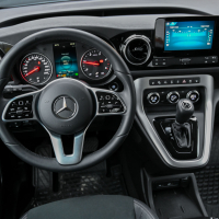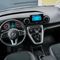 Kdor išče pravega družinskega mercedesa, pa nima denarja za velikega V-ja ali cestno-terenskega GLB-ja, bo v T-ju našel zelo dobro razmerje med ceno, ugledom in prostorom. Po voznih lastnostih T ne zaostaja za razredom B, uporabnost pa nadgrajuje z enostavnim vstopanjem preko drsnih vrat na obeh bokih, s prostorno kabino z ravnim dnom brez sredinskega grebena, velikanskim prtljažnikom z nizkim nakladalnim robom in tremi isofix sidrišči za pritrjevanje otroškega varnostnega sedeža. V osnovi razred T z močnejšo različico 1,5-litrskega dizelskega motorja (180d) stane 6 tisočakov več kot dostavniški citan, doplačilo pa skuša upravičiti predvsem z bogatejšo osnovno opremo in udobneje nastavljenim podvozjem.