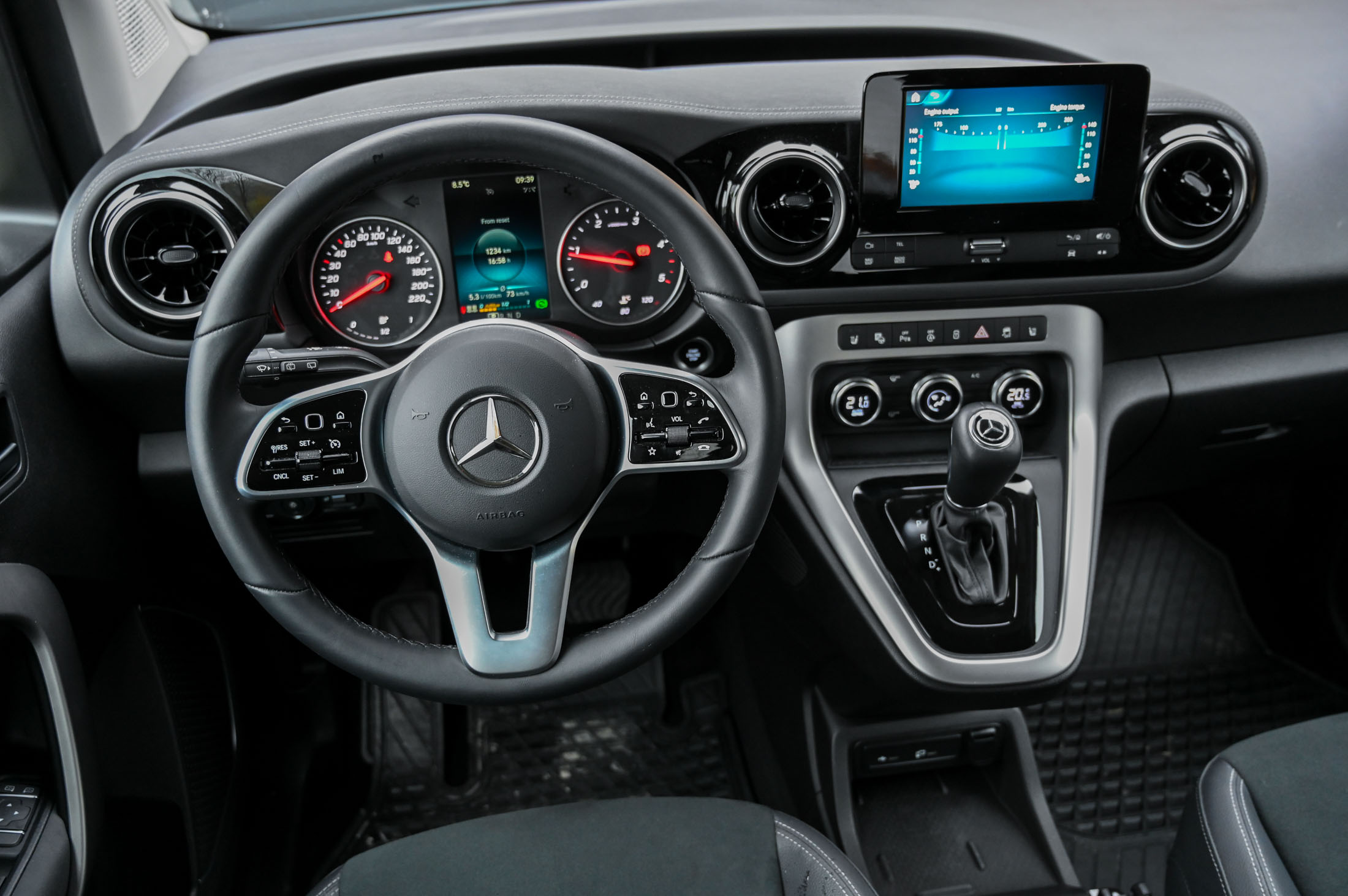 Mercedesovo pogonsko udobje družinski T nadgrajuje še z energetsko svobodo dizelskega goriva; v praksi to pomeni 1000-kilometrski doseg brez skrbnega načrtovanja poti ali taktiziranja glede zniževanja potovalne hitrosti. Ta avto ponuja vse, kar družina potrebuje za dolge družinske izlete ali potovanja, tudi 568 evrov vredno vlečno kljuko, na katero je mogoče pripeti do 1,5 tone težko prikolico.