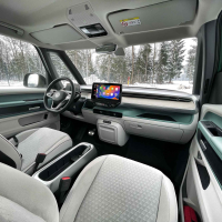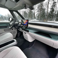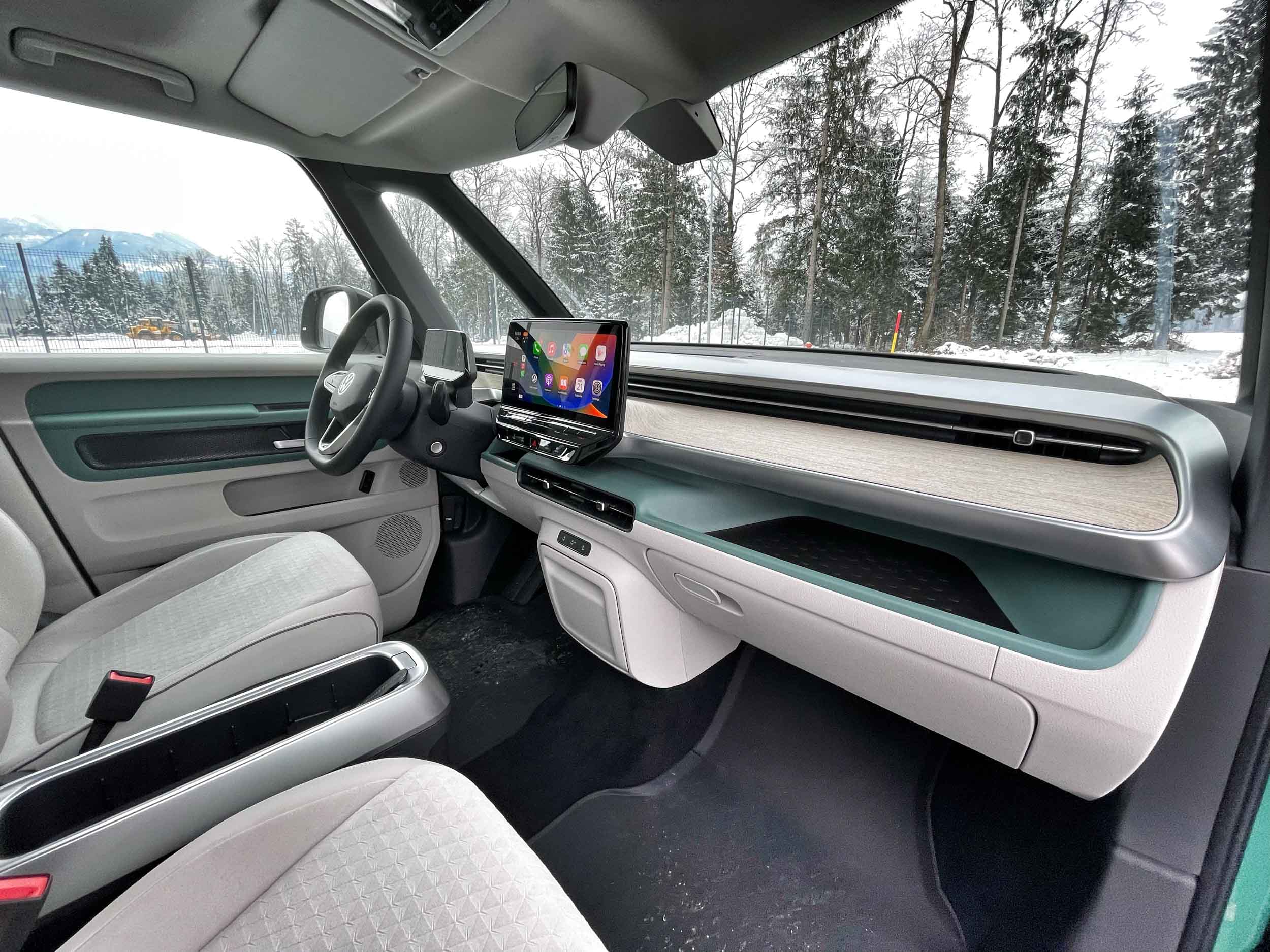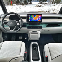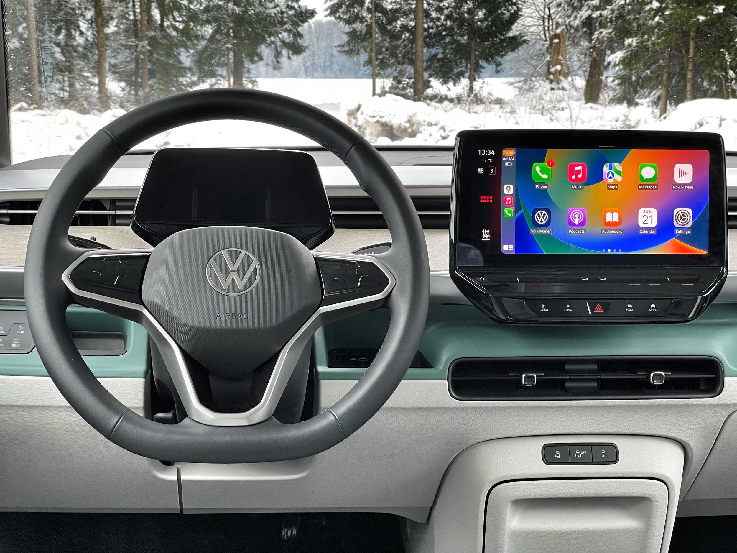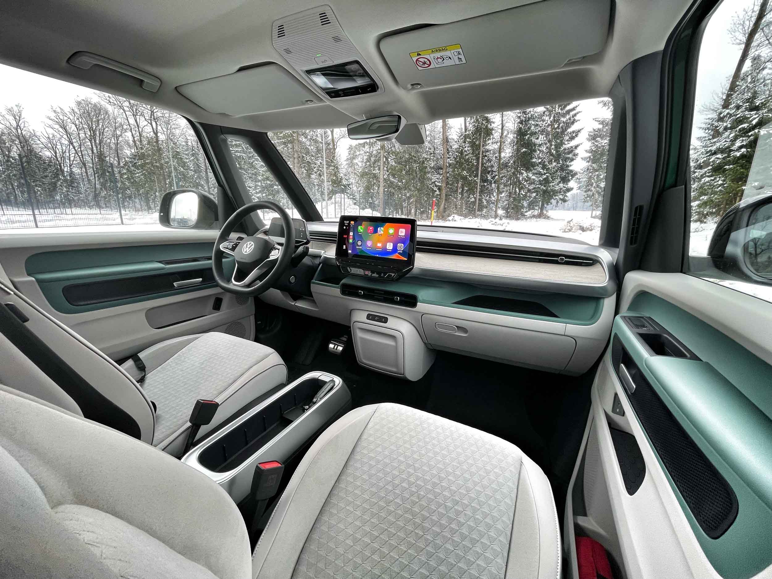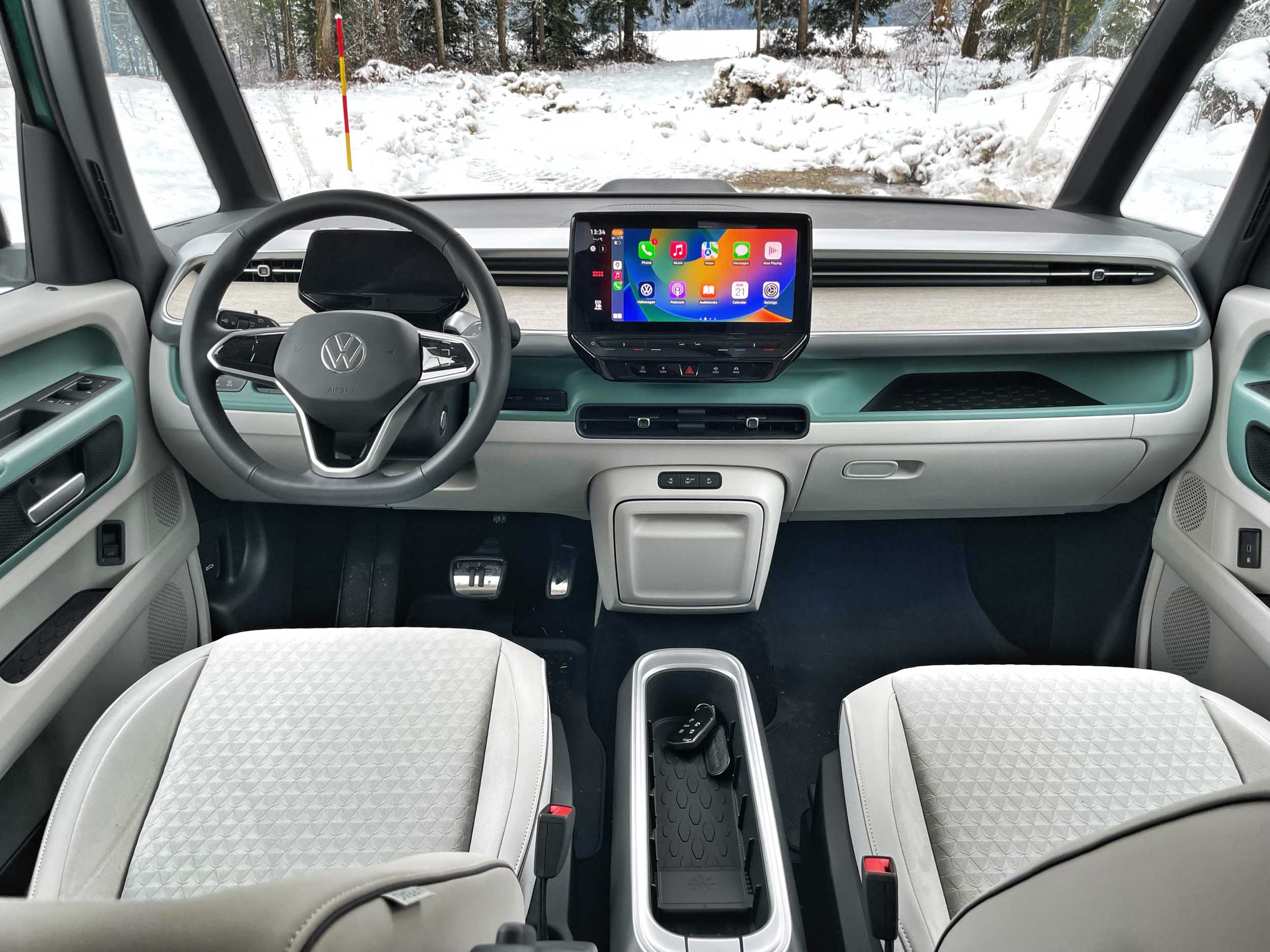 Kdor je že sedel za volanom katerega od Volkswagnovih ID avtov, se bo tudi v buzzu takoj počutil domače: pred volanskim obročem je majhen digitalni prikazovalnik osnovnih podatkov, na sredini pa velik zaslon multimedijske naprave. Delovanje uporabniškega vmesnika je izboljšano, a še zdaleč ne popolno (brez občasnih motenj v obliki zatemnitve ni šlo), z enostopenjskim reduktorskim menjalnikom pa upravljamo z desno obvolansko ročico, kar pomeni, da so vse ostale funkcije (na primer upravljanje z brisalniki) preseljene v levo obvolansko ročico.