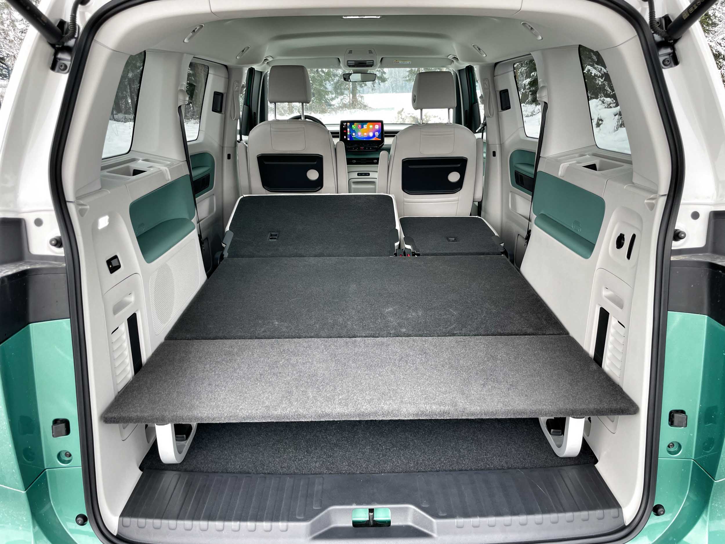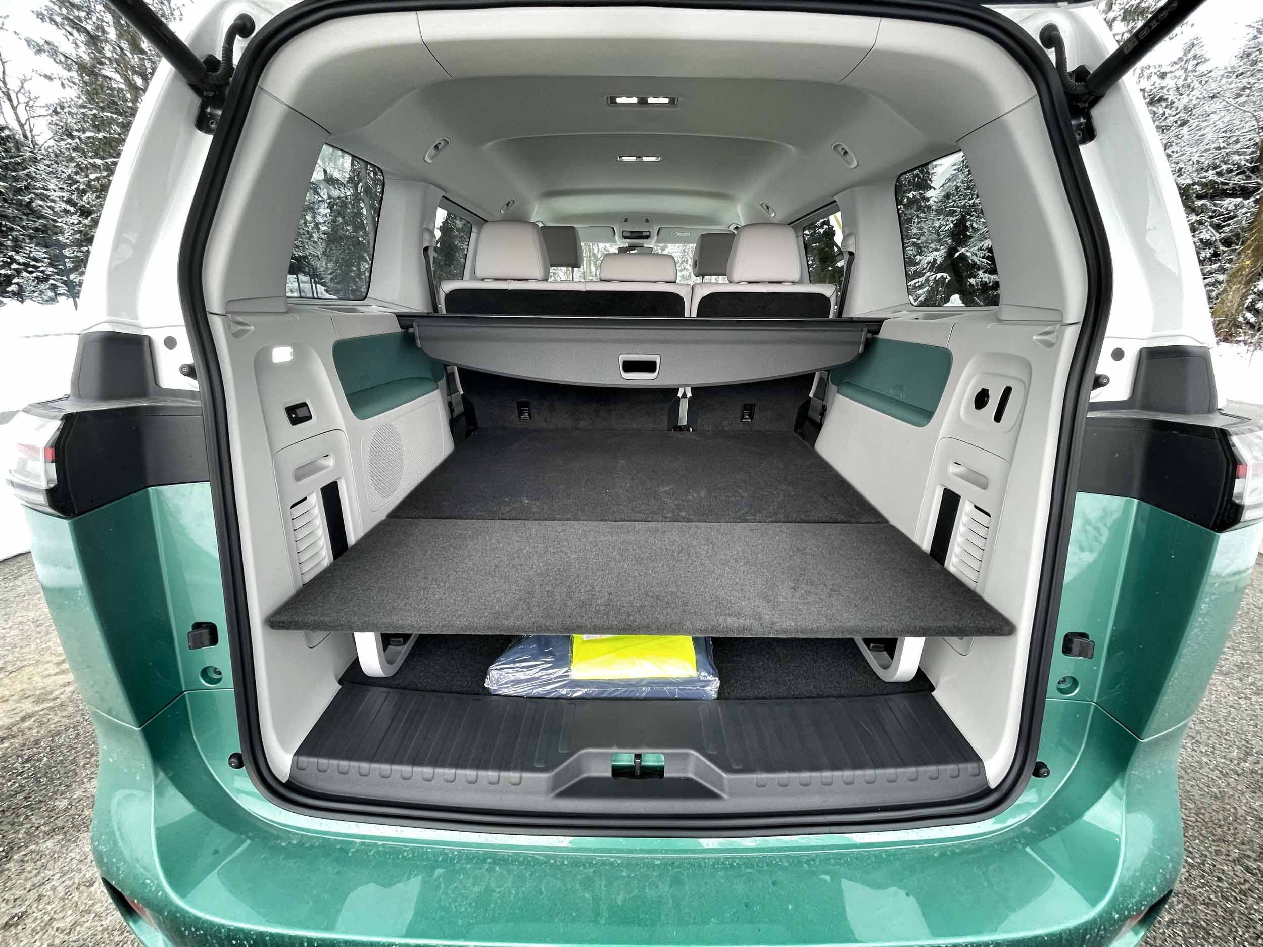 Pravo razodetje predstavlja velikanski prtljažni prostor, v katerem je bilo v preskusnem avtu dvignjeno in prilagodljivo dvojno dno na aluminijastih vodilih (na voljo za doplačilo 690 evrov) - pod njim je prostor za kable in druge manjše kose prtljage, nad njim pa še vedno več kot kubični meter uporabnega prostora. Bočna drsna vrata, ki ju lahko premika elektrika (za doplačilo 2000 evrov), močno olajšajo vstop v potniško kabino.