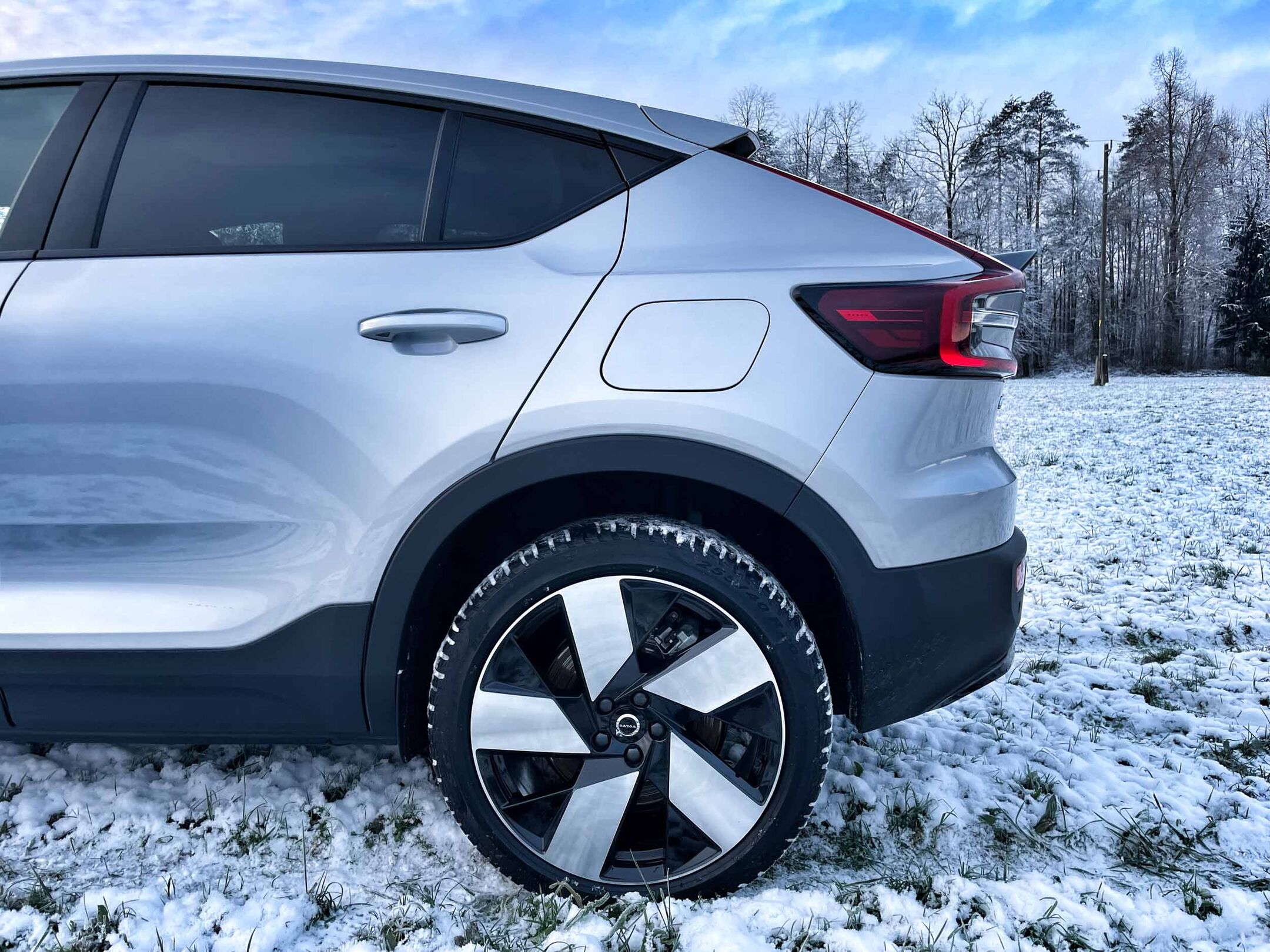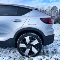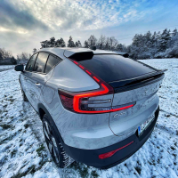 C40 ima oblikovno in tehnično veliko skupnega z električno različico uspešnega cestnega terenca XC40, s samosvojo kupejevsko obliko zadnjega dela pa so se pri Volvu priključili trendu kupejevskih cestnih terencev in križancev. O prednostih takšne oblike vam ne znamo veliko napisati, je pa C40 videti všečno in prepoznavno. Pogled od blizu odkrije zanimivo oblikovan zadnji del avta z lučmi, ki zaobjamejo boka in ob straneh zadnjega stekla sežejo proti strehi. Komur je všeč Volvov skandinavski dizajn, mu bo vsekakor všeč tudi kupejevski C40, ki je po zunanjih merah zelo poravnan z bolj klasično oblikovanim XC40, če ne štejemo nekaj centimetrov manjše višine avta.
