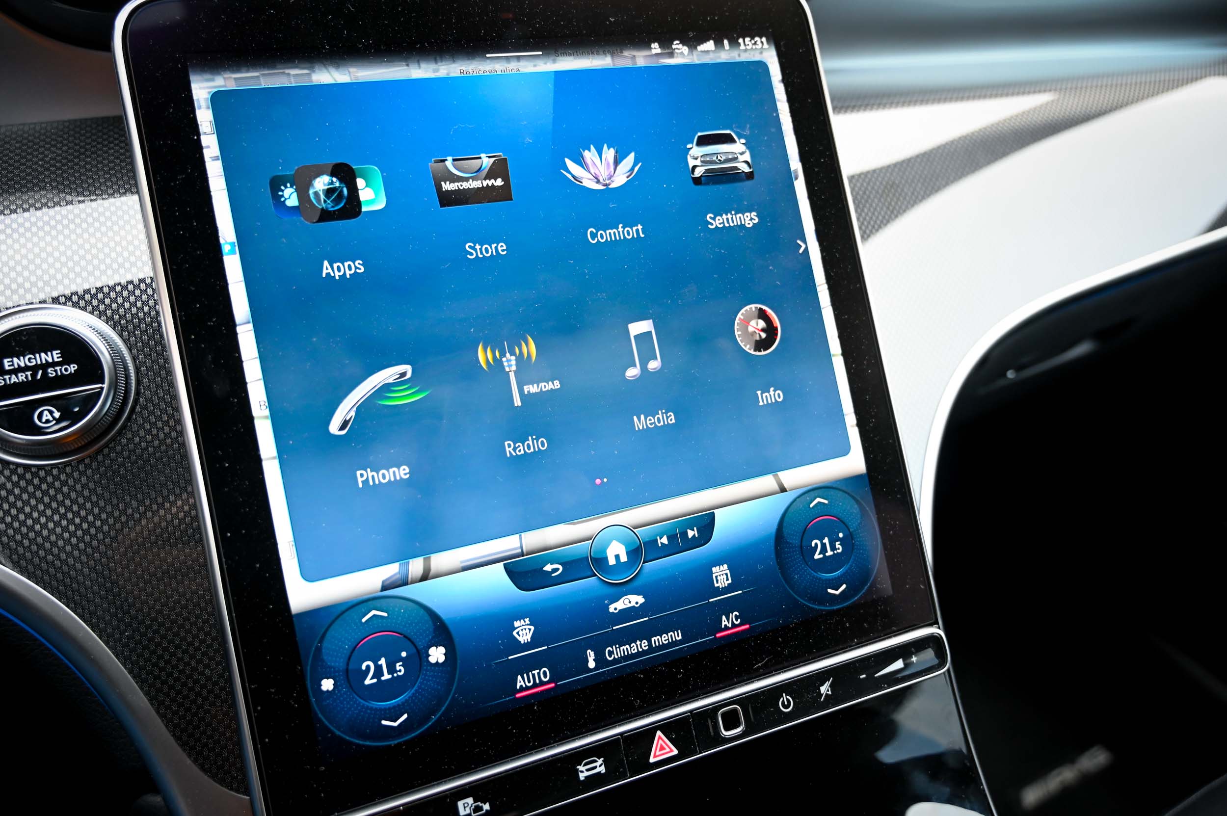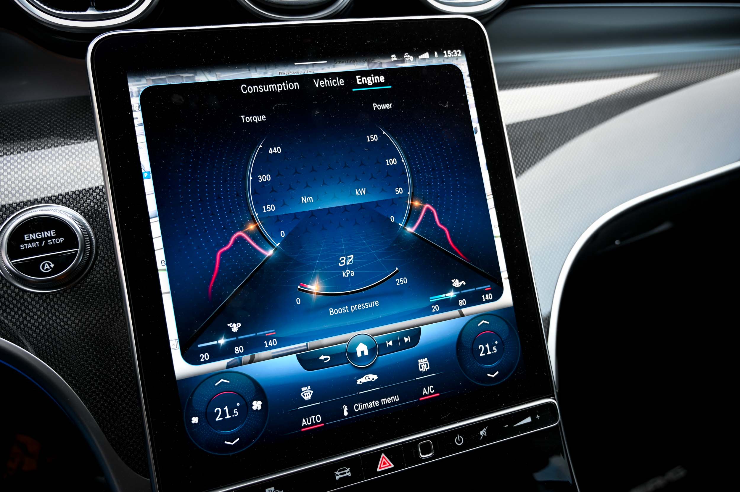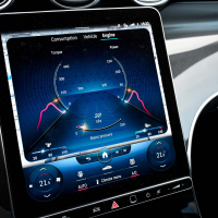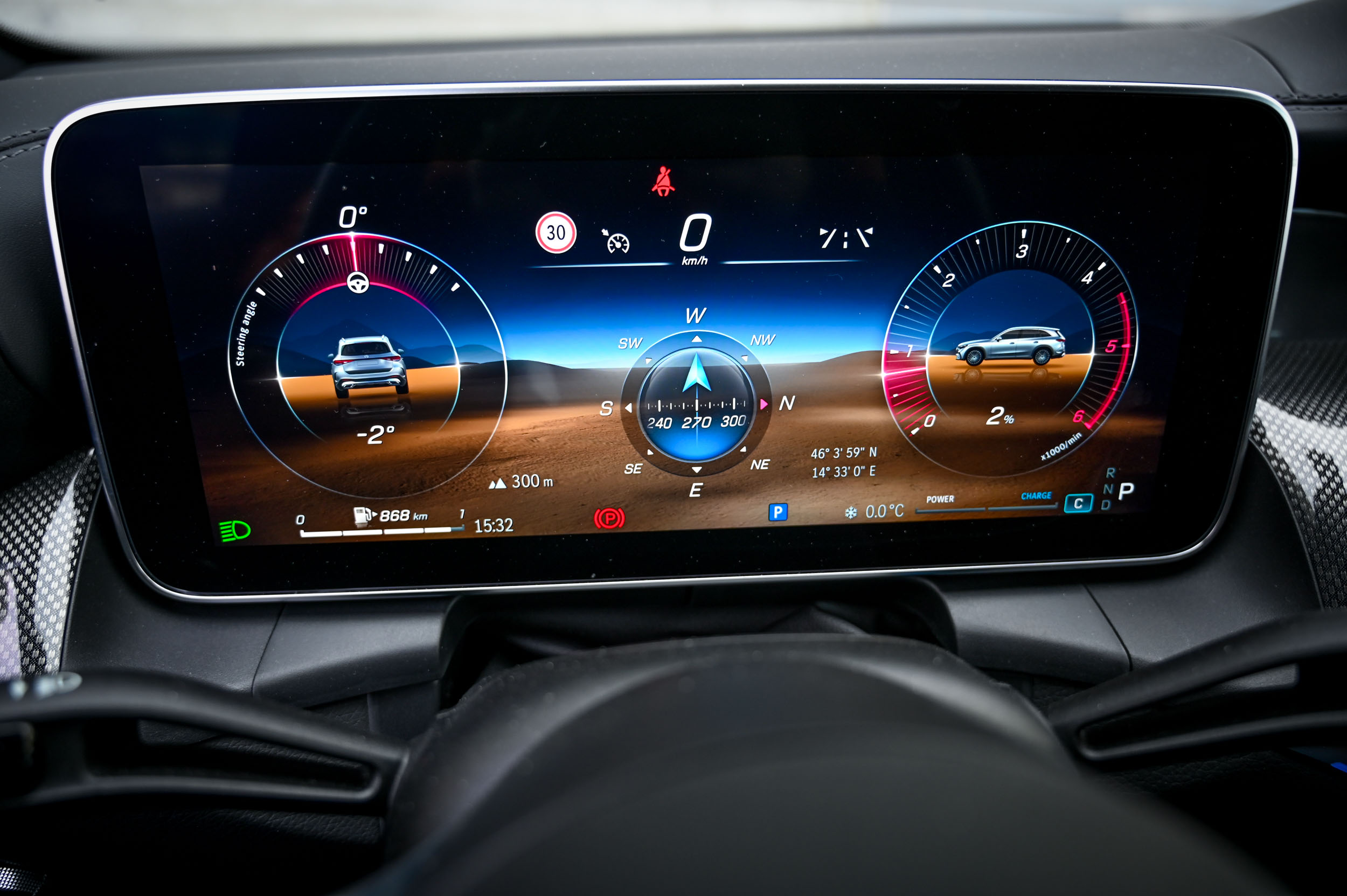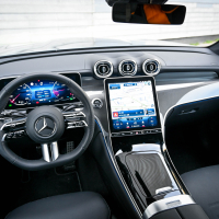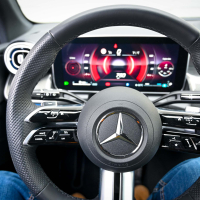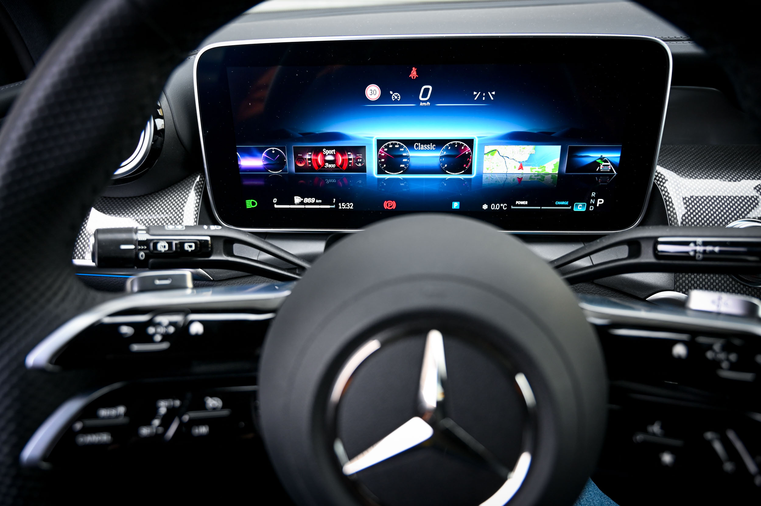 Da gre za novo generacijo avtomobila, je najbolj očitno, ko sedemo za volan, kjer voznika pričaka najsodobnejše Mercedesovo digitalno okolje z dvema velikima zaslonoma (12,3 in 11,9 palcev) visoke ločljivosti. O bogastvu razmeroma preprosto nastavljivih podatkov na obeh zaslonih ne gre zgubljati besed. Številne digitalne storitve, tudi aktualna vremenska napoved, je podprta s širokopasovno mobilno povezavo. Avto vozniku in potnikom zagotavlja celovito komunikacijsko podporo ter odlično navigacijo, ki pri načrtovanju in vodenju upošteva tudi aktualne prometne informacije. Pri digitalizaciji kabine nas je zmotilo le to, da so drsniki na volanu v MBUX vmesnika manj natančni kot prej. Pa tudi pri glasovnem vmesniku nismo zaznali kakšnega očitnega napredka, če odzivnost in odgovore “Hey mercedes!” primerjamo s “Hey Google!” iz nekaterih drugih avtomobilov.