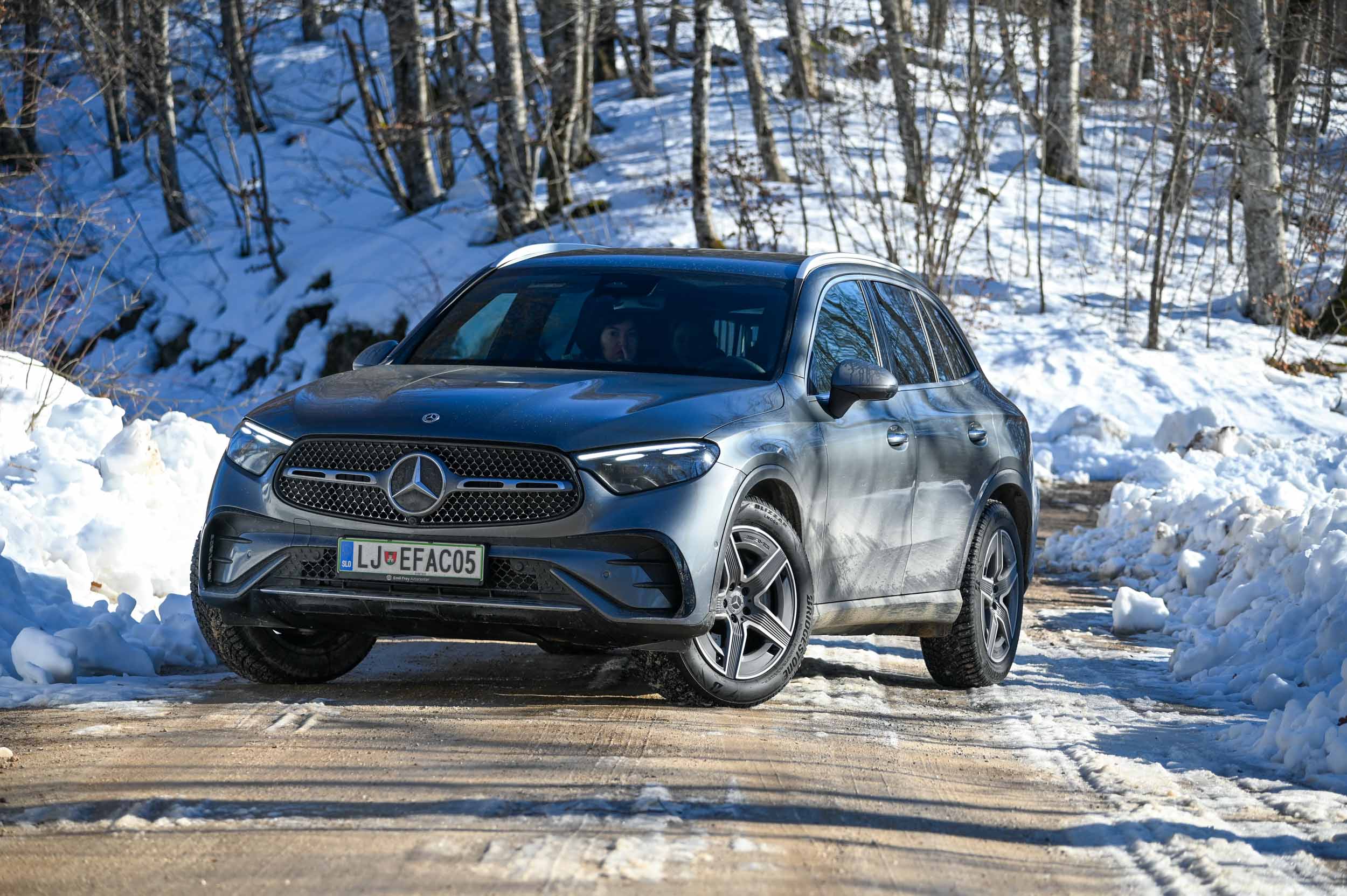 Pri voznih lastnostih velja ponoviti to, kar smo zapisali v uvodu: novi GLC je na asfaltu še bližje natančni vodljivosti in lahkotnosti razreda C, na terenu pa je eden bolj pogumnih cestnih terencev prestižnega razreda. Nadzorna enota sistema za stabilnost in nadzor zdrsa, ki v terenskem programu zelo natančno razporeja navor na vsa štiri kolesa glede na stopnjo oprijema na posamezni osi oziroma celo na posameznem kolesu, je praktično enako zmogljiva oziroma natančna kot pri legendarnem terencu razreda G, le da se tukaj vozniku ni potrebno ukvarjati z diferencialnimi zaporami. Seveda GLC nima reduktorja in je od tal premalo oddaljen, da bi plezal preko skal, se pa z njim brez težav izkopljemo iz snega, prevozimo blatni kolovoz ali speljemo iz travnatega parkirišča, ki ga je razmočila poletna nevihta s točo. Nudi tudi izdatno pomoč pri pogledu neposredno pred avto, da voznika ne presneti kakšen kamen ali skriti drevesni štor. GLC se ne boji terena in zmore veliko več, kot pa mu bo pustil lastnik, ki je zanj odštel zajeten kup denarja.