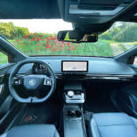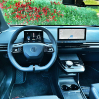 Nad vozniško ergonomijo v MG4 nimamo večjih pripomb; večina stvari je na dosegu rok, položaj za volanom je vozniško pravilen in udoben. Prednja sedeža bi lahko ponujala malce daljši sedalni del in več bočne opore v ovinkih. Vidljivost iz avta je dokaj dobra, le pogled nazaj je skozi ozko zadnje steklo malce oviran; pri parkiranju pomaga kamera za vzvratno vožnjo.