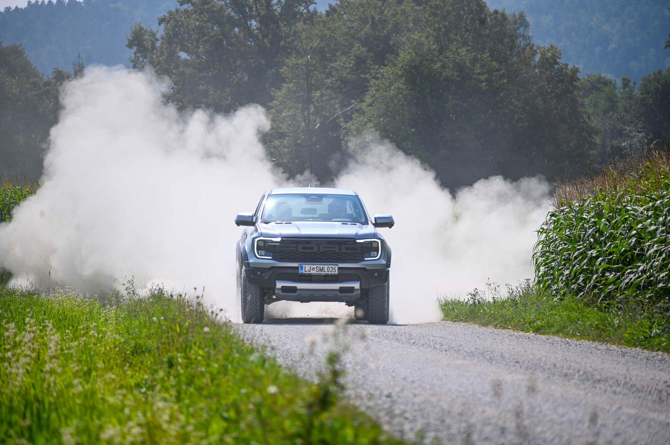 Raptor je ob vsej svoji velikosti in masi čudovito vodljiv stroj, v katerem je največji užitek v ostrem tempu uživati na širokih gruščnatih ovinkih. Ob množici različnih nastavitev pogona in voznih programov prav na makadamu najbolj izstopi njegov športni značaj, še zlasti v voznem programu “baja”. Se pa hitro izkaže, da so naše makadamske ceste povečini preozke in preveč nepregledne, da bi ta orjak varno drvel čez ovinke. Smo pa bili navdušeni nad njegovo natančnostjo, nad nadzorom oprijema in pospeševanjem na pršnem grušču.