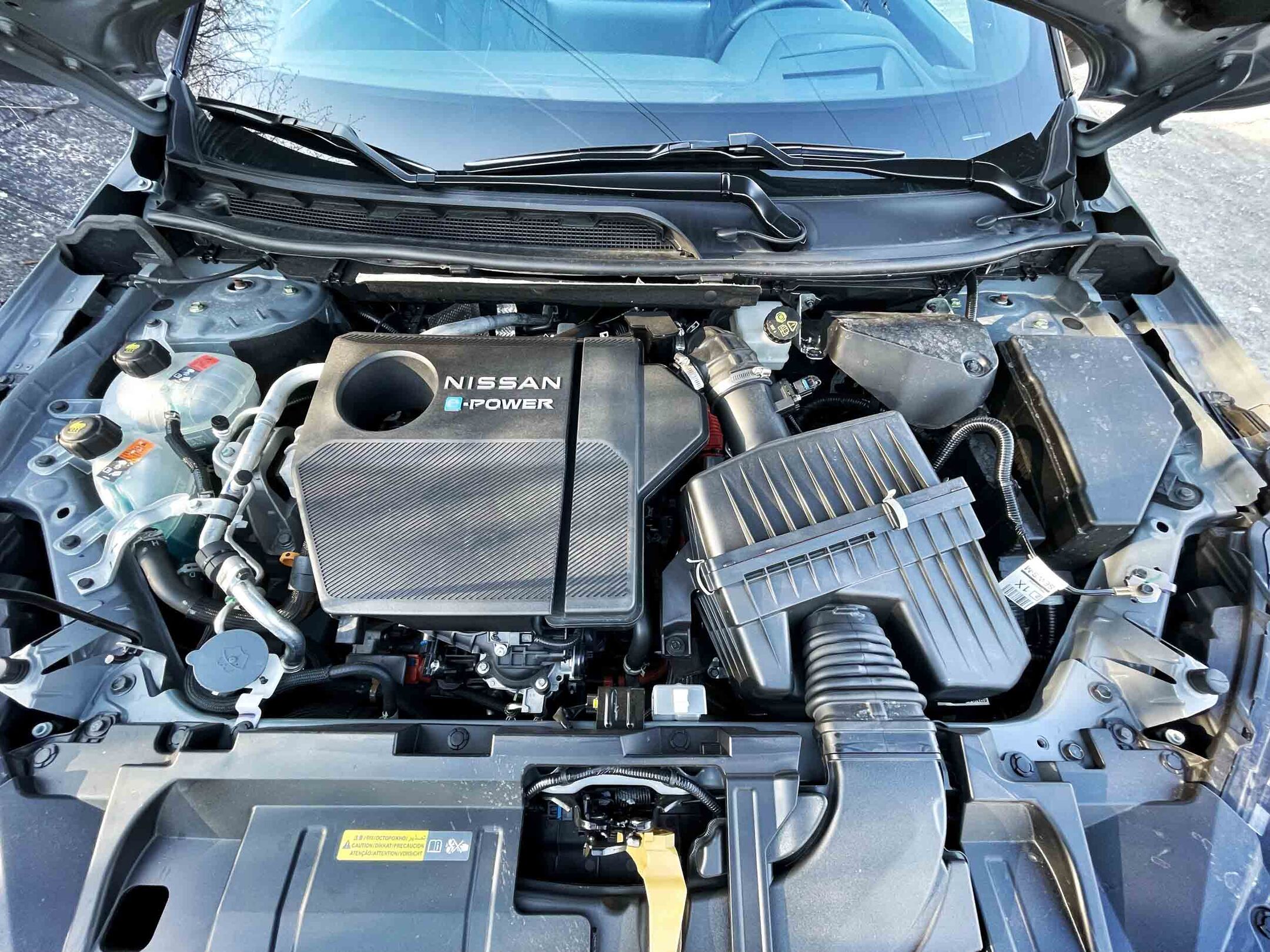 Tehnično je Nissanov sistem zelo zanimiv. Njegov bencinski motor, ki nikoli neposredno ne poganja prednjih koles, je 1,5-litrski bencinski turbo trivaljnik s spremenljivim kompresijskim razmerjem. Za razliko od klasičnih bencinskih motorjev, pri katerih so ojnice batov neposredno povezane z ročično gredjo v bloku motorja, ima Nissanov motor namesto klasičnih ojnic veččlenkasti sistem vzvodov, ki prilagajajo gornjo točko gibanja batov, s tem pa spreminjajo kompresijo: od 8:1 pri visokih obremenitvah do 14:1 pri nizkih obremenitvah. S tem je motror - vsaj v teoriji - bolj učinkovit.
