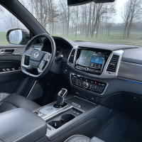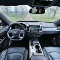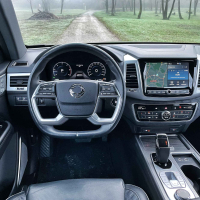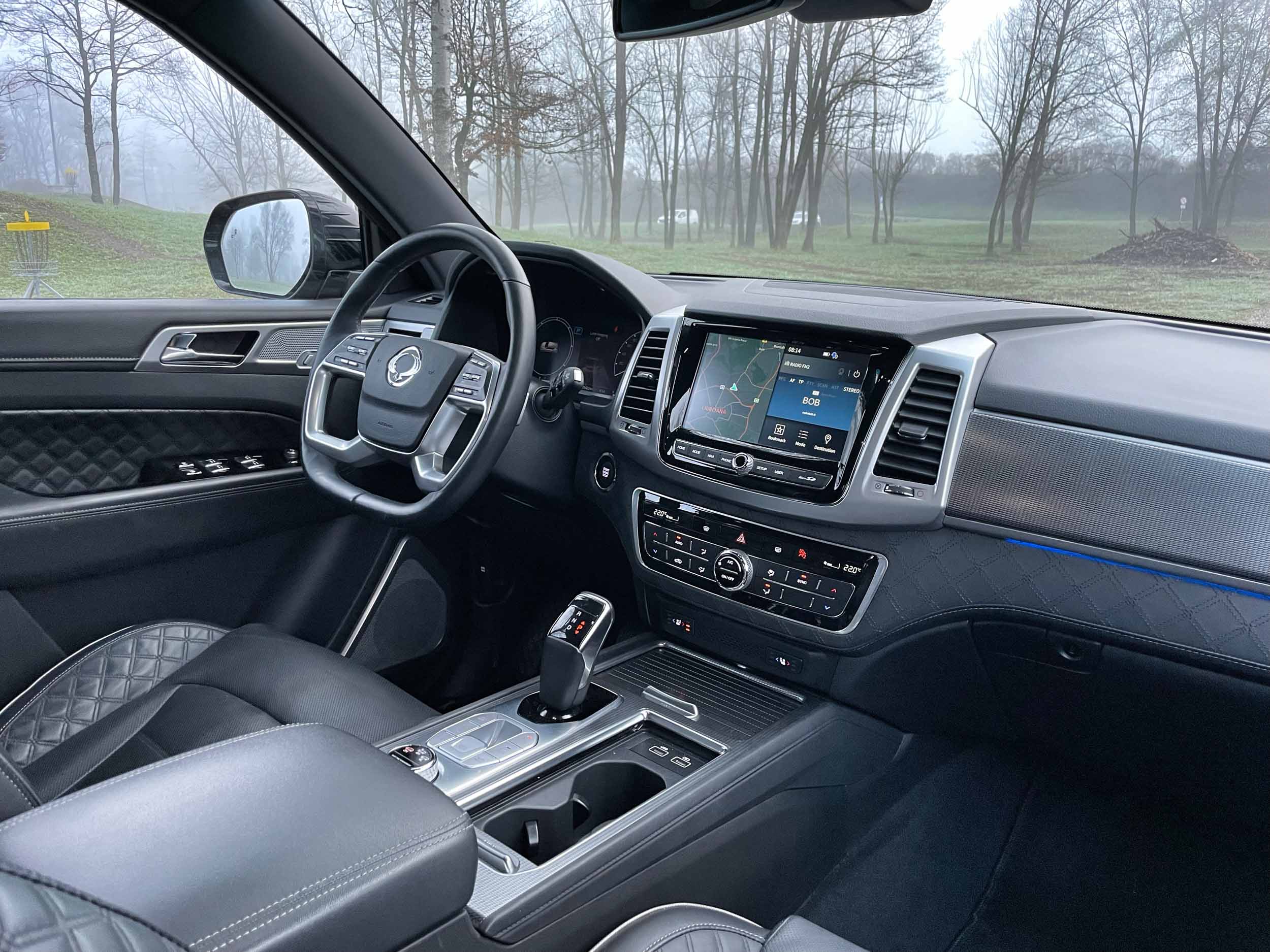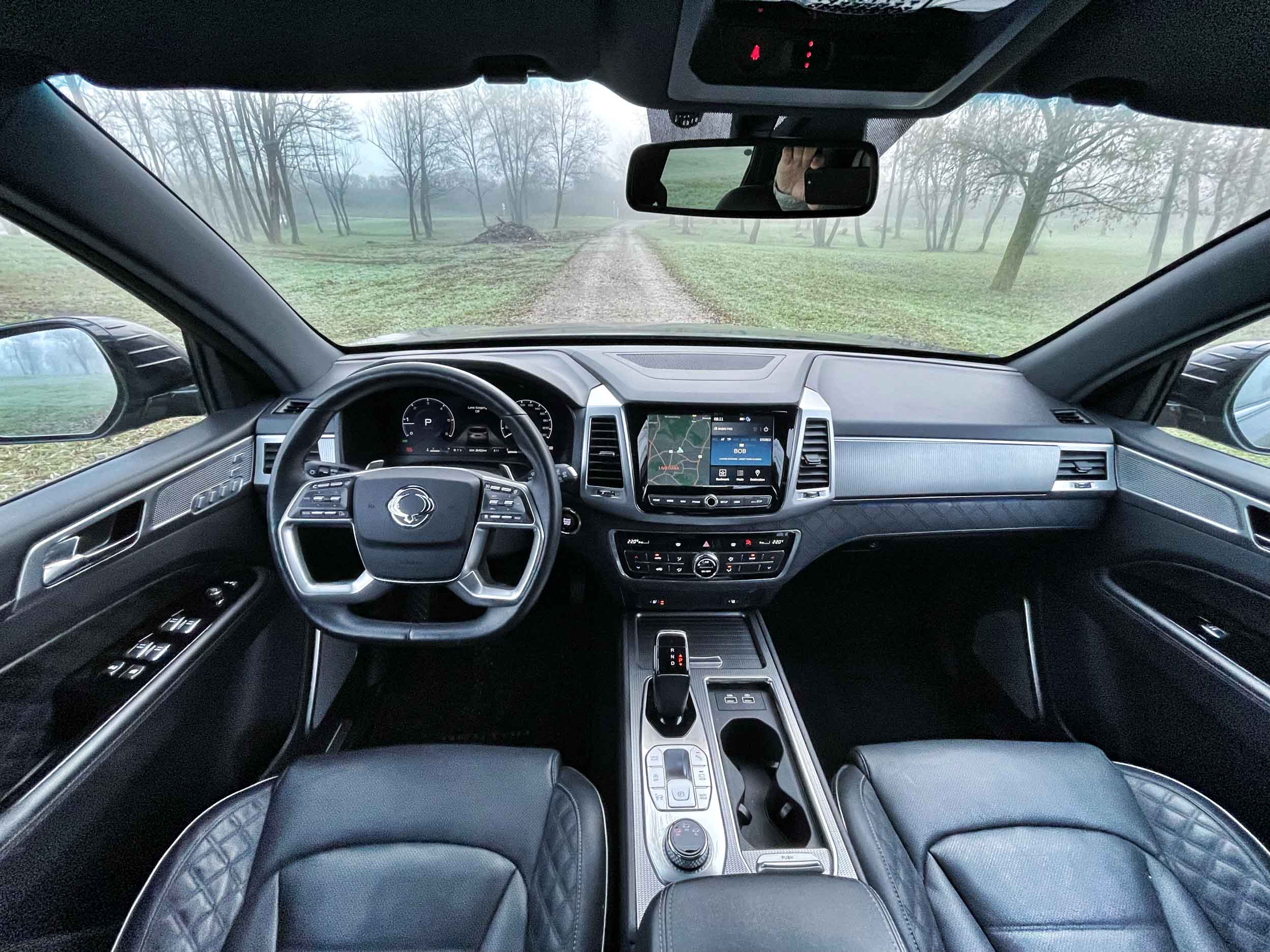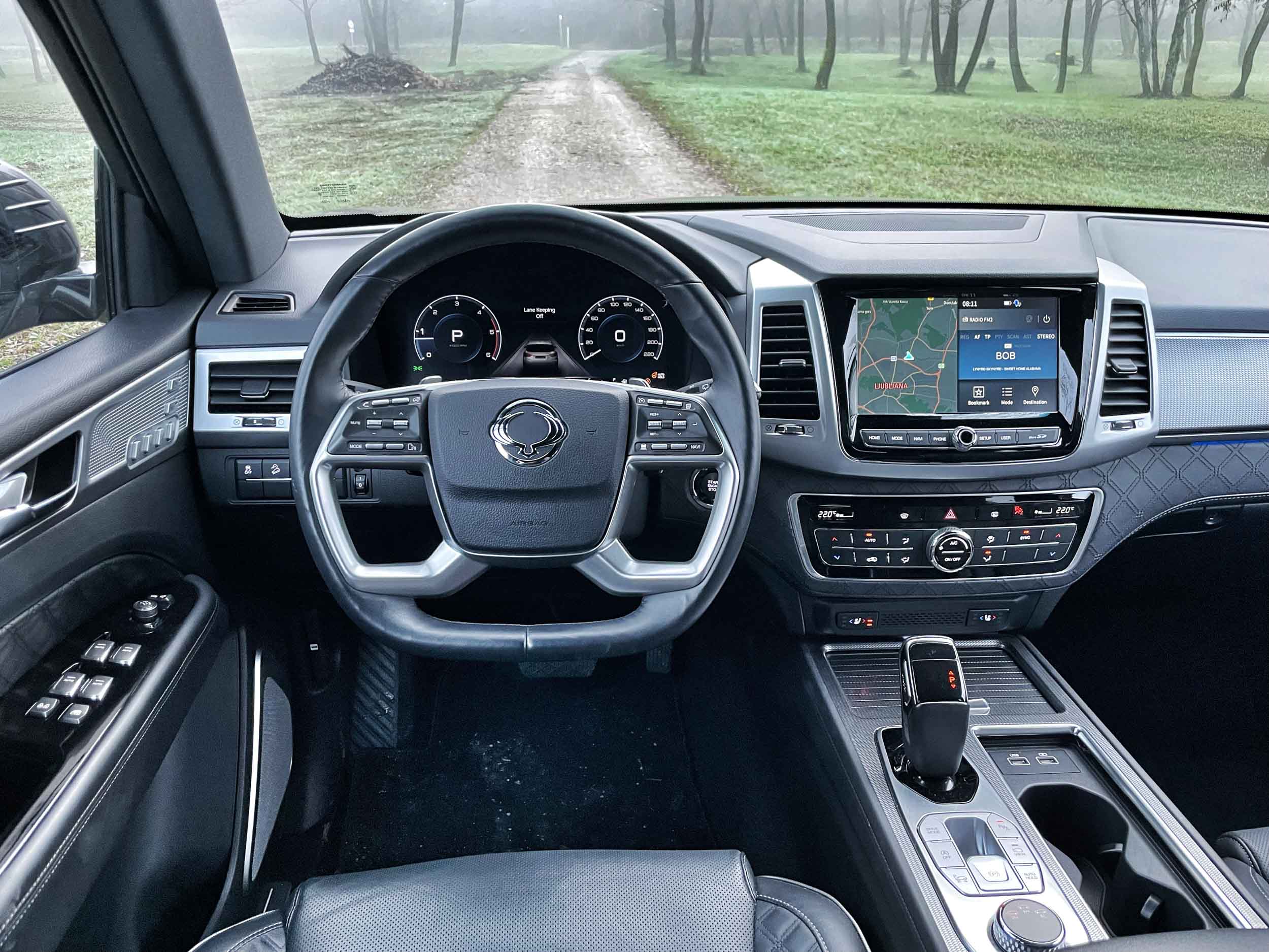S prenovo je rexton dobil povsem spremenjeno armaturno ploščo z dvema zaslonoma. Na prvem, ki služi kot instrumentna plošča, voznik dobi vse podatke o vožnji, pri čemer lahko izbira med različnimi prikazi. Na sredinskem zaslonu na armaturni plošči so na voljo vsi podatki info zabavnega sistema vključno z navigacijo. Grafični prikaz podatkov sicer ni v skladu z najnovejšimi trendi, a informacije so praviloma pravočasne in ustrezne. Omogočeno je tudi zrcaljenje mobilnika na sredinski zaslon, ki je povsem korektno. Upravljanje številnih funkcij je prek klasičnih stikal na volanskem obroču in pod sredinskim zaslonom, omogočeno pa je tudi upravljanje na dotik.