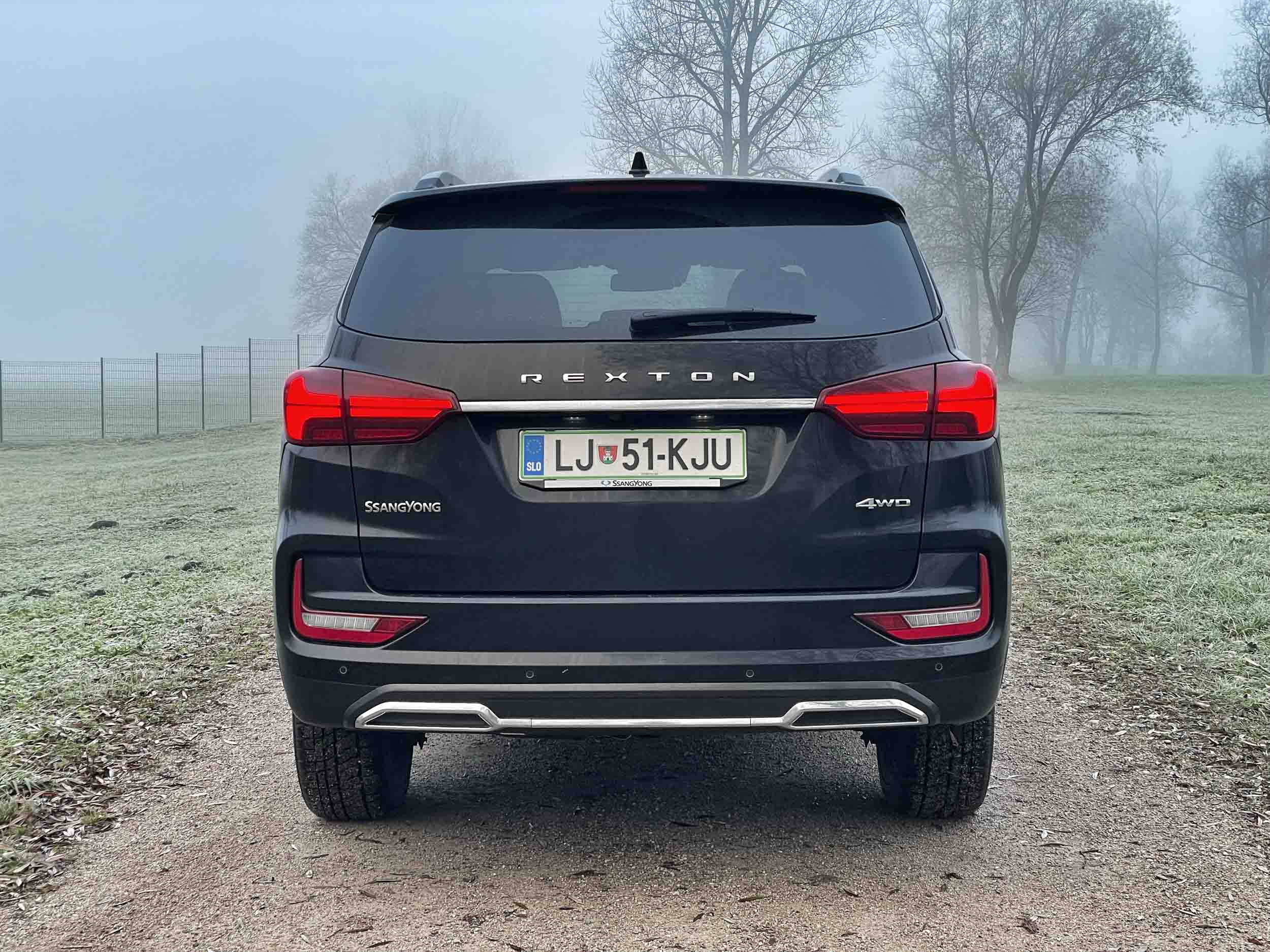 Motor in menjalnik sta dobro usklajena, prestavljanje je pravočasno in dovolj uglajeno. Voznik lahko poseže tudi po ročnem prestavljanju. Prenos moči je v osnovi na zadnji kolesi, voznik pa lahko z vrtenjem gumba na sredinski konzoli vklopi štirikolesni pogon in tudi reduktor, kar zagotavlja zanesljivo vožnjo tudi v bolj zahtevnih razmerah. Ob tem pa je vendarle treba vedeti, da rexton kljub več kot 20 cm oddaljenosti dna avta od tal ni kleni terenec in tudi nima ustrezne zaščite podvozja, zato se z njim ne gre podajati na zahteven teren, kjer je dodatna omejitev tudi dokaj dolg del avta za zadnjo premo. Rextonu veliko bolj ustreza vleka prikolice, saj s svojo maso 2145 kg zagotavlja ustrezno stabilnost. Seveda pa pri vleki prikolice velja upoštevati predpise o ustreznem vozniškem dovoljenju, saj ob dovoljeni skupni masi avta 2800 kg masa avta in prikolice hitro preseže 3,5 tone, do katere velja vozniško dovoljenje B kategorije. Velika masa avta vpliva tudi na porabo goriva, ki je pri običajnih zahtevah približno 9 litrov na 100 km, ob priganjanju na avtocesti ali vleki prikolice pa še večja.