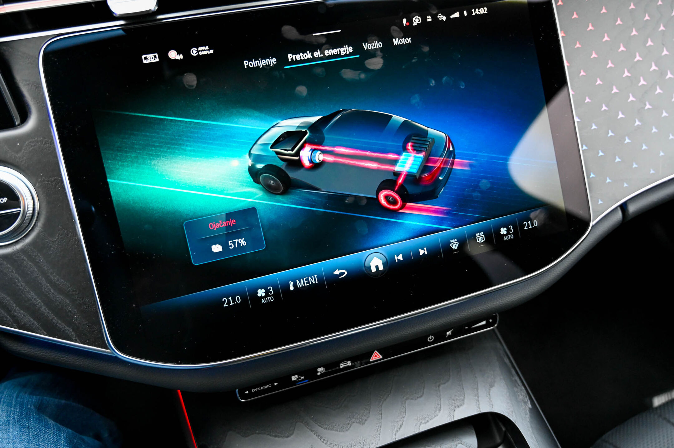 Izboljšana zasnova hibridnega pogona z dvolitrskim bencinskim motorjem ponuja učinkovito elektrifikacijo brez prilagajanja glede oskrbe avtomobila z električno energijo. To je znova pravi mercedes, ki zmore brez težav križariti na dolge razdalje, hkrati pa v času malce daljšega poslovnega sestanka ali pa med popoldanskimi nakupi z 11-kilovatnim AC polnilnikom obnoviti zalogo elektrike ter v mestu ponuditi dovolj električnih kilometrov za vse dnevne opravke. Pri tem velja pohvaliti še večstopenjsko rekuperacijo in zmogljivost električnega pogona, s katerim lahko na elektriko vozi do 135 km/h in brez težav drži tempo prometa na mestnih obvoznicah, vpadnicah in krajših avtocestnih odsekih.