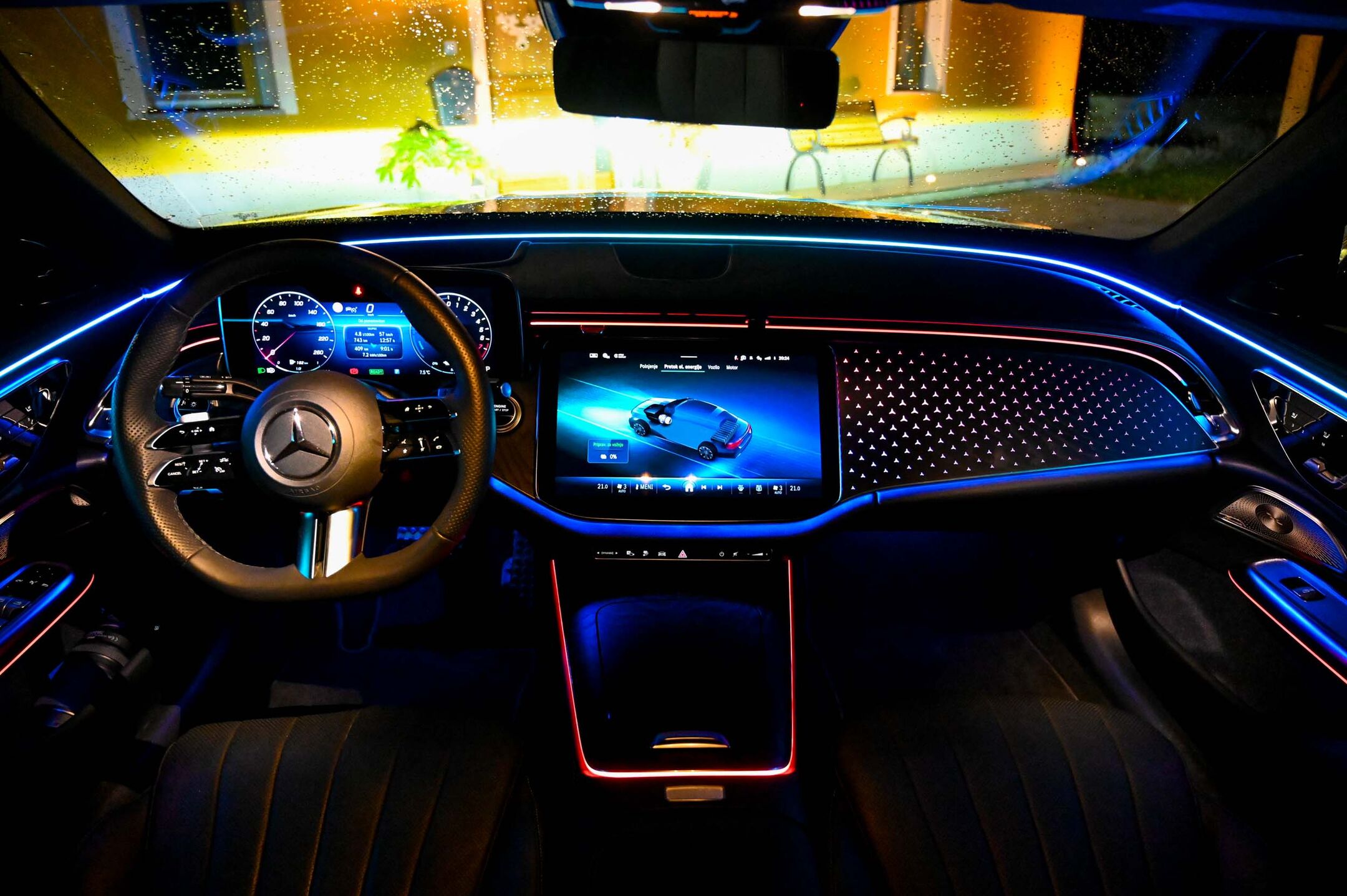 Vse, kar zahteven voznik od dragega mercedesa pričakuje, najbolj sijoče ponudi digitalno prvovrstno opremljena in prostorna kabine. Vožnja, sploh v električnem programu, je izjemno tiha. V kabini izstopa digitalna zasnova armaturne plošče, na kateri se bohoti podatkovno bogastvo, popolna komunikacijska podpora in celovit nabor aktivnih varnostnih pripomočkov. E brezhibno nadzira smer, v gneči sam zavira, ustavlja in spelje ter v tujini tudi sam opravi menjavo pasov na avtocesti.