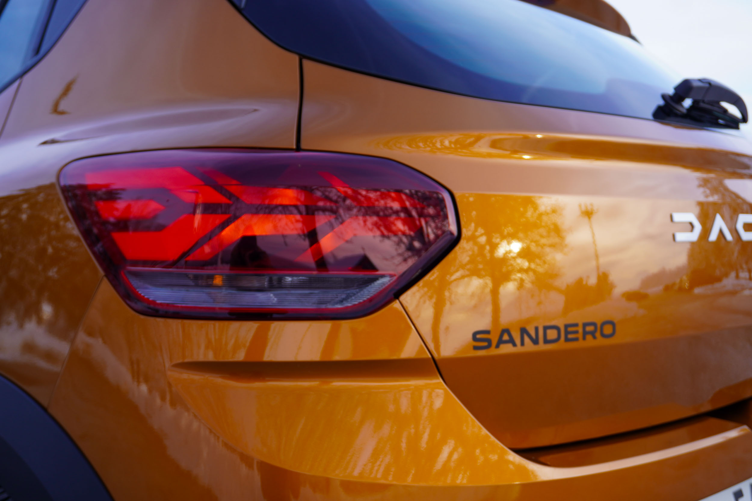 Nova sta tudi žarometa, ki sta kombinacija LED in klasične, halogenske zasnove - dnevne in zasenčene luči so v LED tehnologiji, dolge luči pa so halogenske - prepoznavne pa so po svetlobnem traku v obliki črke ipsilon. Spremenjeno obliko je dobil tudi prednji odbijač. V zadnjem delu je prenovljeni sandero prepoznaven po izstopajočem napisu Dacia in po zadnjih lučeh, ki imajo svetlobni trak - tako kot žarometa - tudi v obliki črke ipsilon.