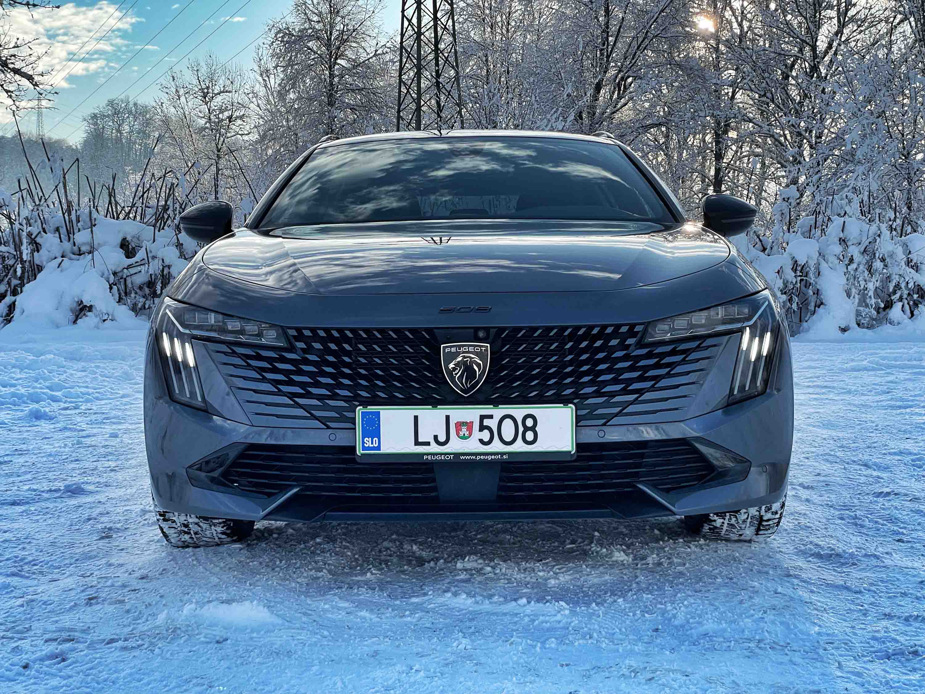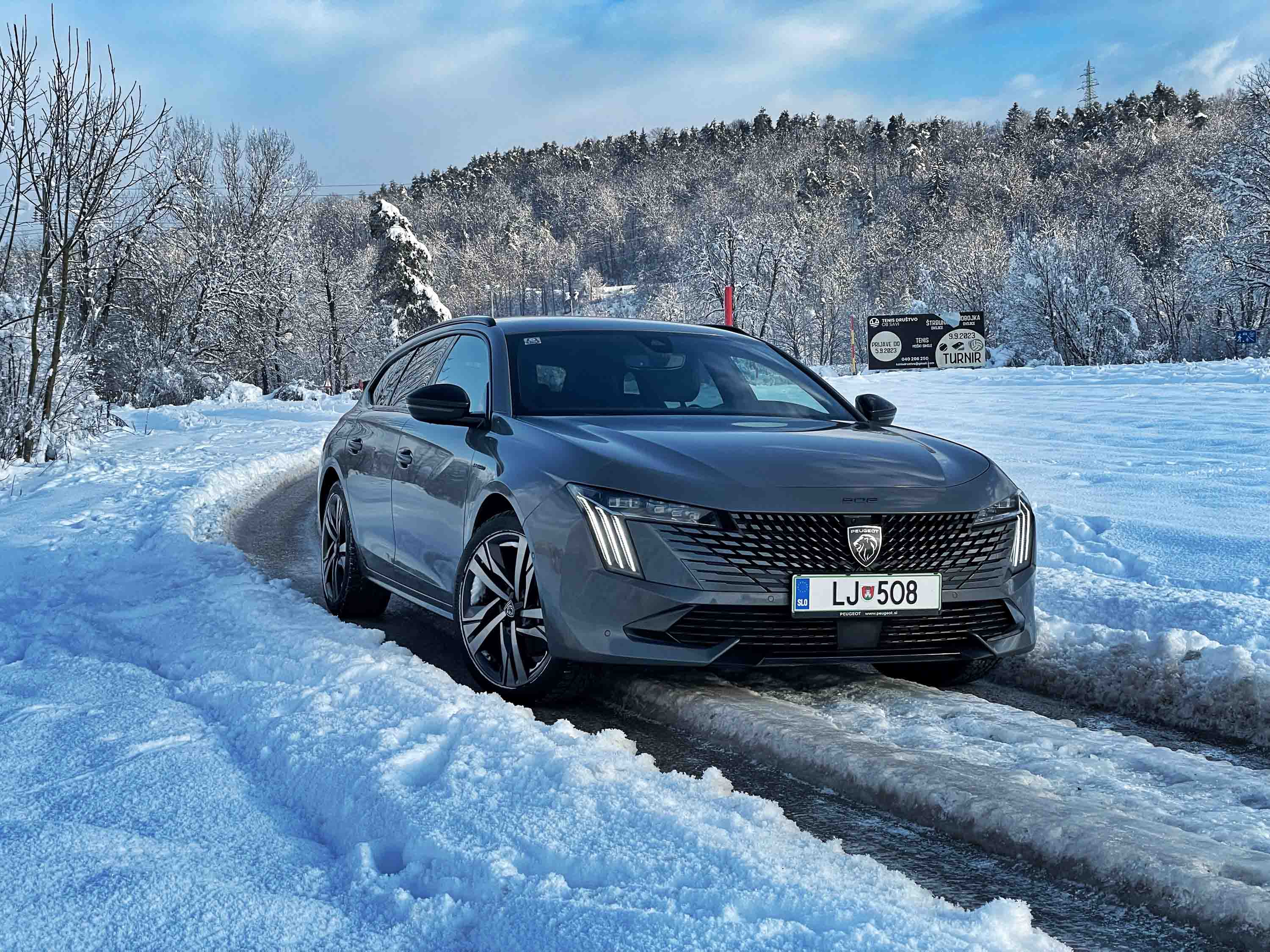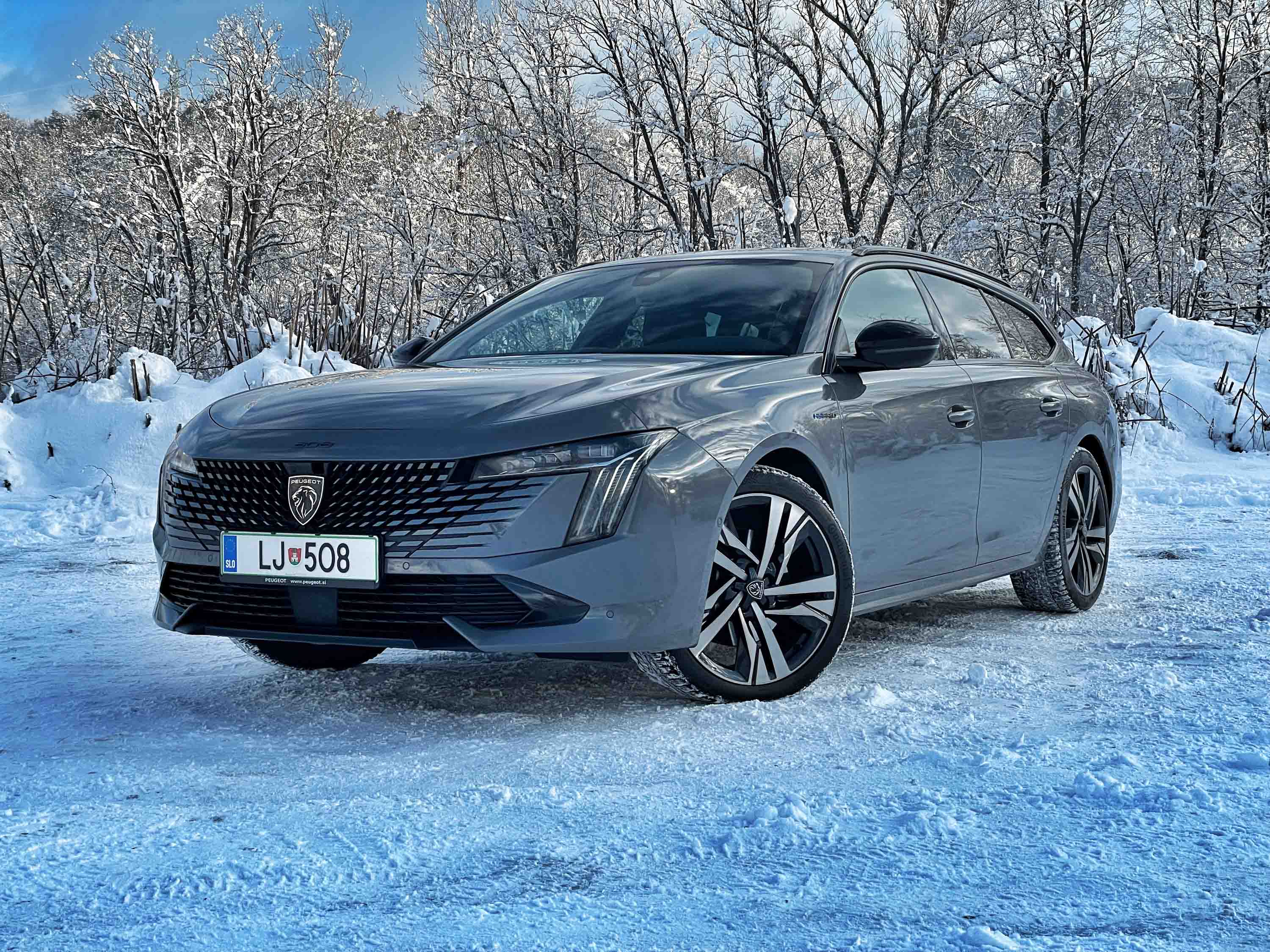 Pogonskega dela avta zadnja prenova ni zajela. To pomeni, da ima 508 SW pod motornim pokrovom še vedno priključno-hibridno kombinacijo 1,6-litrskega bencinskega turbo motorja s 132 kW, 8-stopenjskega samodejnega menjalnika, električnega motorja z 81 kW in litij-ionskega akumulatorja z zmogljivostjo 12,4 kWh. Skupaj to pomeni 165 kW (225 KM) sistemske moči in 360 Nm sistemskega največjega navora. Pri Peugeotu obljubljajo do 64 kilometrov električnega dosega s polno zalogo električne energije, a v resnici je ta seveda manjši: mi smo avto preskušali v letos najbolj zasneženih in hladnih zimskih dneh, kar je na papirju obljubljen doseg skoraj prepolovilo - več kot 38 kilometrov nismo zmogli prevoziti zgolj na elektriko. Nič čudnega, da gospodarne prednosti električnega pogona tako hitro izzvenijo - in da na koncu vozniku ostane bencinsko gnan avto s porabo goriva 7 l/100 km.