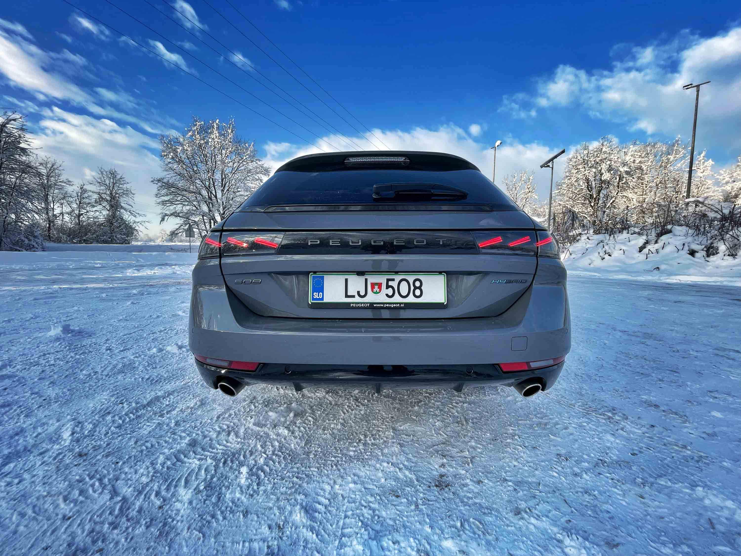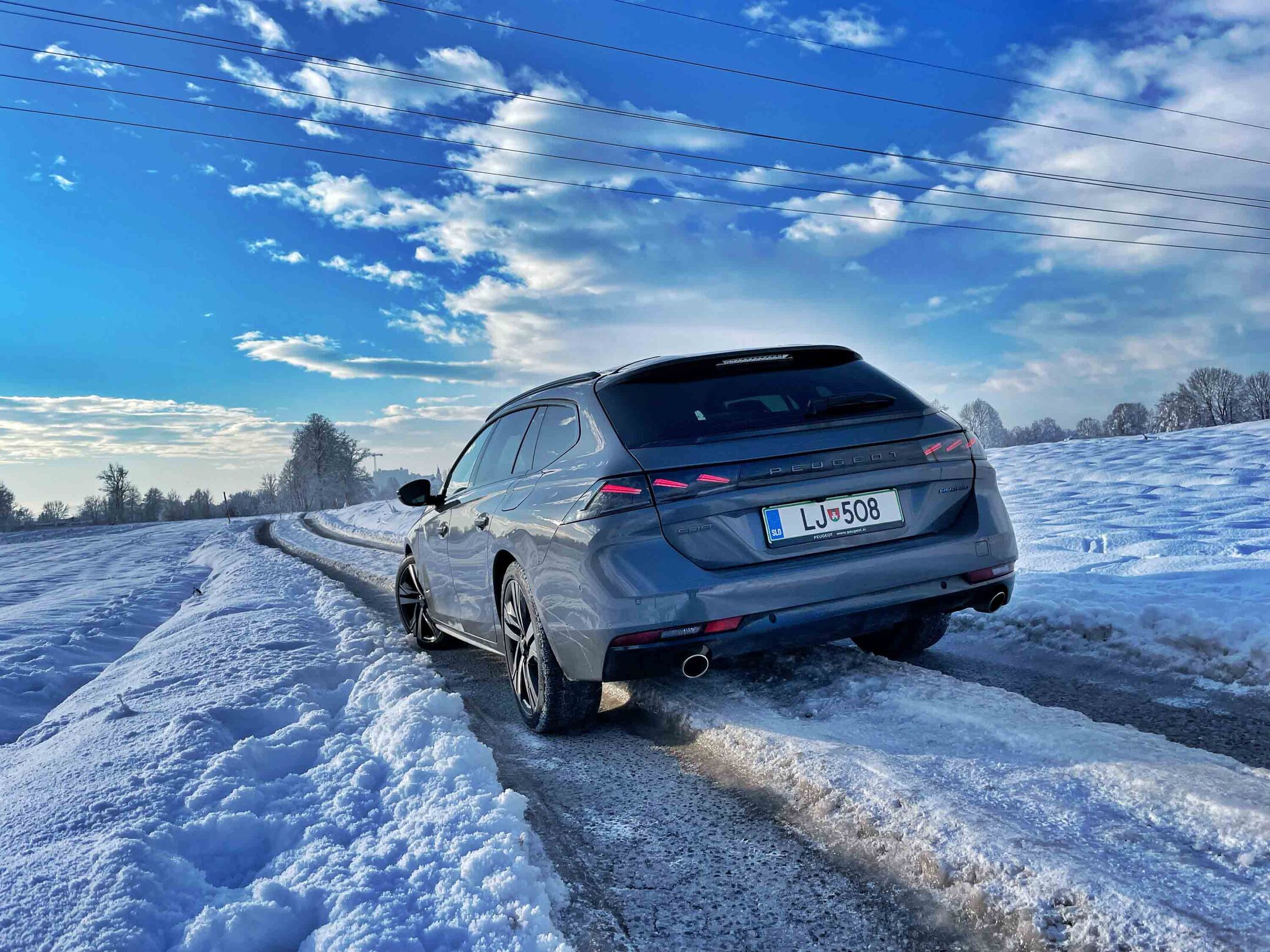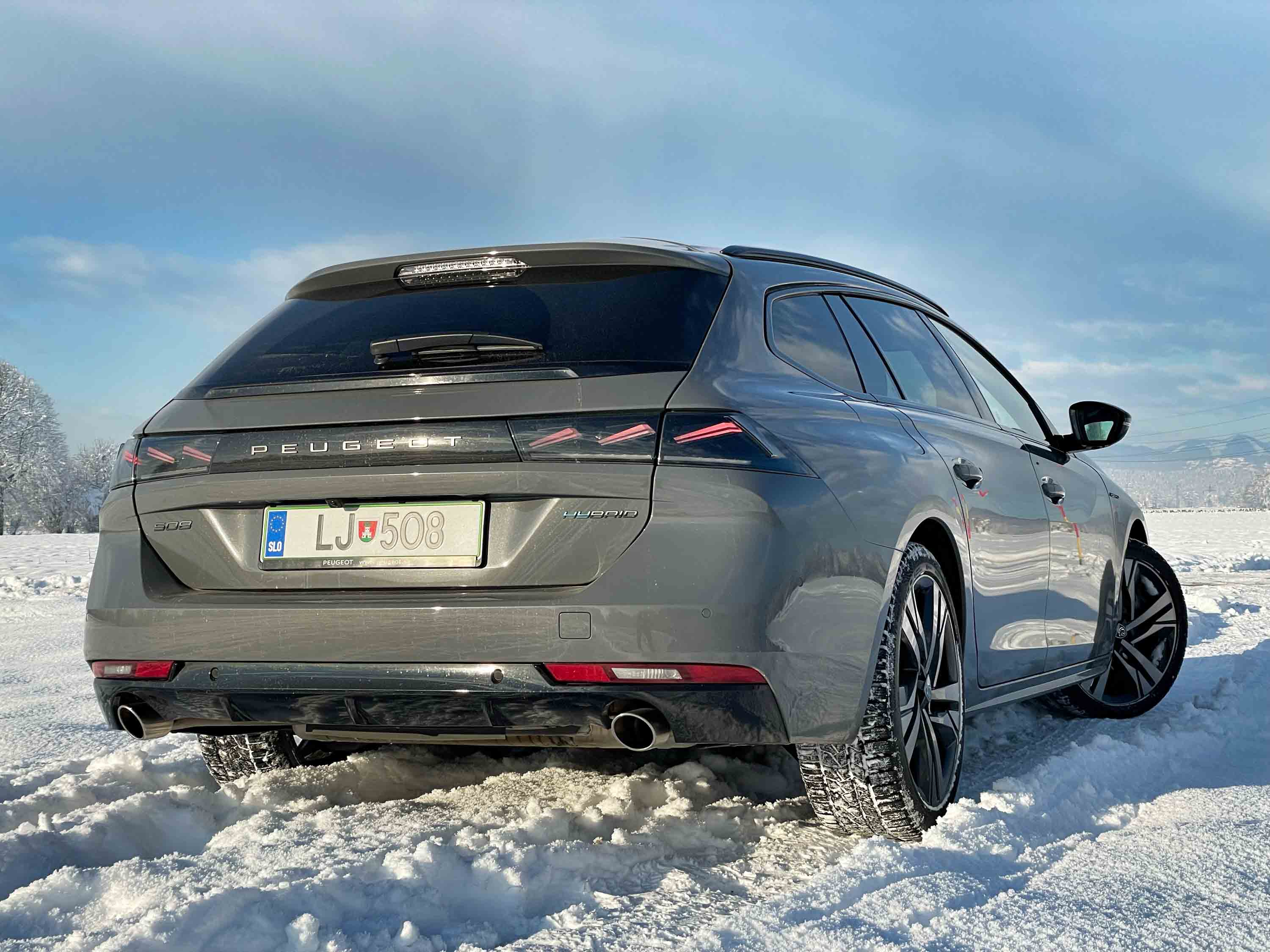 Pogonskega dela avta zadnja prenova ni zajela. To pomeni, da ima 508 SW pod motornim pokrovom še vedno priključno-hibridno kombinacijo 1,6-litrskega bencinskega turbo motorja s 132 kW, 8-stopenjskega samodejnega menjalnika, električnega motorja z 81 kW in litij-ionskega akumulatorja z zmogljivostjo 12,4 kWh. Skupaj to pomeni 165 kW (225 KM) sistemske moči in 360 Nm sistemskega največjega navora. Pri Peugeotu obljubljajo do 64 kilometrov električnega dosega s polno zalogo električne energije, a v resnici je ta seveda manjši: mi smo avto preskušali v letos najbolj zasneženih in hladnih zimskih dneh, kar je na papirju obljubljen doseg skoraj prepolovilo - več kot 38 kilometrov nismo zmogli prevoziti zgolj na elektriko. Nič čudnega, da gospodarne prednosti električnega pogona tako hitro izzvenijo - in da na koncu vozniku ostane bencinsko gnan avto s porabo goriva 7 l/100 km.