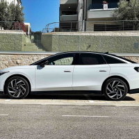 ID.7 je udobna potovalna električna limuzina, zato poudarek voznih lastnosti na udobju ne preseneča. ID.7 ni tako športno suveren kot kakšen BMW i4 ali tako odziven kot na primer (manjši) tesla 3, je pa precej udobnejši od obeh. Pomaga velika medosna razdalja, ki le na najdaljših avtocestnih valovih povzroči malce plavajoč občutek, sicer pa se odlikuje z brezhibno smerno stabilnostjo in z zadostno oporo tudi v kakšnem ostreje odpeljanem ovinku. Čeprav ID.7 ponuja izbiro voznih programov - med njimi tudi športnega - hitro postane jasno, da se najbolje počuti v programu “udobje”, v katerem razvaja potnike z dobrim glajenjem cestnih neravnin in natančno odmerjenim pomikom pedala za “plin”. Zanimivo je, da ID7 ne sili k brezglavim pospeševanjem (kot marsikateri drug električni avto), pa čeprav do 100 km/h “skoči” v 6,5 sekunde; veliko bolje se potniki in voznik počutijo pri hitrem, a udobnem križarjenju. Za tiste, ki ste pogosto na nemških avtocestah: največja hitrost ID.7 je omejena na 180 km/h …