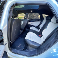 Več kot 500-litrski prtljažniki danes niso neobičajni, a si prtljažnik v iD.7 vseeno zasluži posebno pohvalo; ID.7 je po silhueti (kupejevska) limuzina, po funkcionalnosti pa kombilimuzina z velikimi dvižnimi petimi vrati, ki zares na široko odprejo dostop do prtljažnika. Zaradi limuzinske višine zadnjih vrat v njem sicer ne moremo prevažati pokončnih omar, za vse malce ožje kose tovora, prtljage ali opreme pa je prostora zares veliko - tudi zato, ker prtljažnik lahko povečamo s prevračanjem asimetrično deljivega naslonjala zadnje klopi. Tisti, ki potrebujete še več prostora v prtljažniku, boste morali počakati do konca leta, ko na slovenske ceste zapelje ID.7 tourer s karavanskim zadkom.