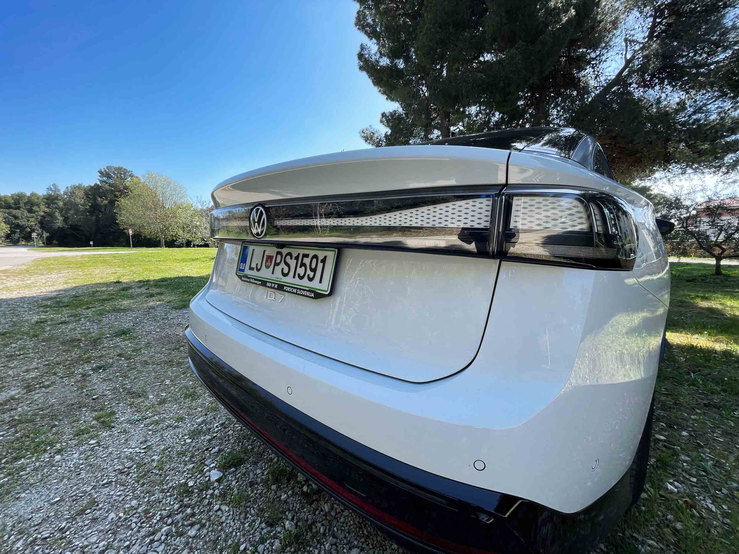 Kot smo v Motoreviji že pisali, je ID.7 prvi od električnih volkswagnov z izboljšanim električnim motorjem - ta je nameščen zadaj nad zadnjo osjo in poganja zadnji kolesi. Pozneje, ko bo na voljo različica GTX, bo ID.7 dobil še električni motor spredaj in s tem štirikolesni pogon. Nas pogon zadaj ni prav nič motil, le en električni motor (in malce manjša masa) pa dobro dene učinkovitosti oziroma dosegu. Prav pri teh lastnosti so pri Volkswagnu naredili največji korak naprej - predvsem po zaslugi novega električnega motorja (interna oznaka APP550), pa tudi zelo aerodinamične karoserije, kar se pozna predvsem pri avtocestnih vožnjah. Nov sinhroni motor s trajnimi magneti, večjo termalno učinkovitostjo in manjšim trenjem v enostopenjskem menjalniku je hkrati tudi (doslej) najmočnejši Volkswagnov električni motor - zmore 210 kW in ima 545 Nm navora. Dovolj za že omenjene dobre zmogljivosti, a tudi za zelo dobro energetsko učinkovitost, ki smo jo doslej pri električnih volkswagnih pogrešali. Res je, da smo avto preskušali pri prijetnih spomladanskih temperaturah, a povprečje štirinajstdnevnega preskusa, ki se je ustalilo pri 15,2 kWh/100 km, je precej boljše od kateregakoli drugega (novejšega) električnega volkswagna. Pri tem velja pripomniti, da smo kar lep delež skupnih testnih kilometrov prevozili na avtocestah - in to na zgornji meji dovoljenih hitrosti. Če to povprečje razdelamo še natančneje: pri mestnih in primestnih vožnjah smo avtu namerili porabo med 13 in 14 kWh/100 km, zgolj pri avtocestni vožnji pa približno 20 kWh/100 km. Ob akumulatorskem sklopu z neto zmogljivostjo 77 kWh to pomeni realnih 500 kilometrov dosega, če si seveda upate voziti še dlje od zadnjih nekaj odstotkov zaloge energije.