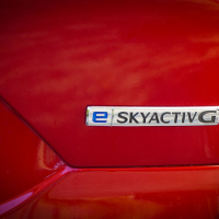Mazda ubira tudi samosvojo pot pri motorjih. Preskusni avto je poganjal 2,5-litrski bencinski štirivaljnik z atmosferskim polnjenjem, torej brez pomoči turbinskega polnilnika. Motor zmore 143 kW moči, njegova posebnost je veliko kompresijsko razmerje 13 : 1. Posebnost motorja je možnost delovanja po načelu dizelskega motorja, torej s samovžigom zgorevalne zmesi, ki je lahko zelo revna, torej ima večjo vsebnost zraka v zgorevalni zmesi kot običajni bencinski motorji. To pripomore k varčni porabi goriva. Motor omogoča tudi tako imenovano jadranje v vožnji, ko voznik ne pritiska na pedal za plin in avto ne potrebuje pomoči motorja in so izklopljeni vsi štirje valji. Ob zelo zmerni obremenitvi lahko motor deluje le z dvema valjema, dva pa sta izklopljena. Vsi preklopi seveda delujejo povsem samodejno in neopazno.