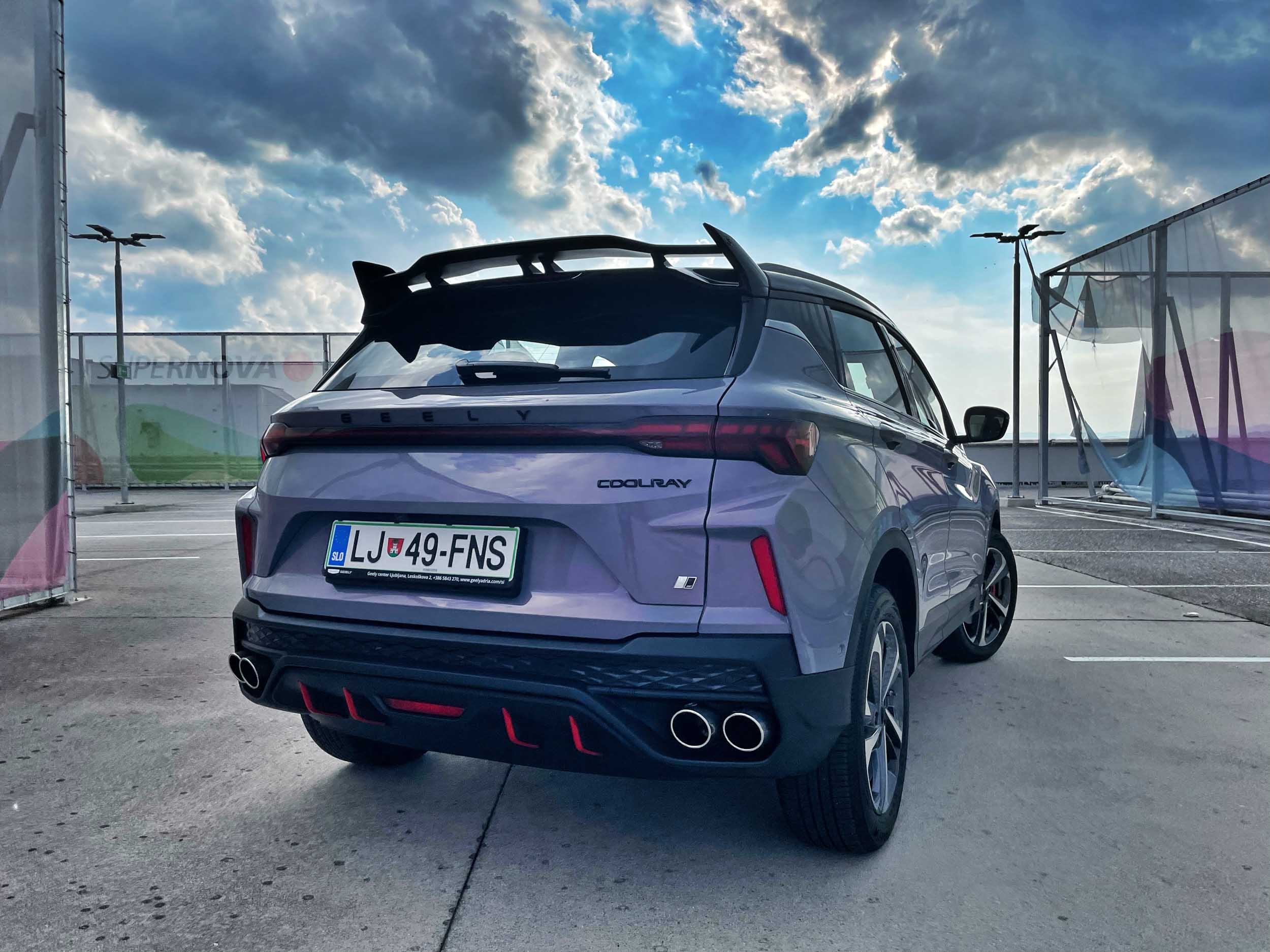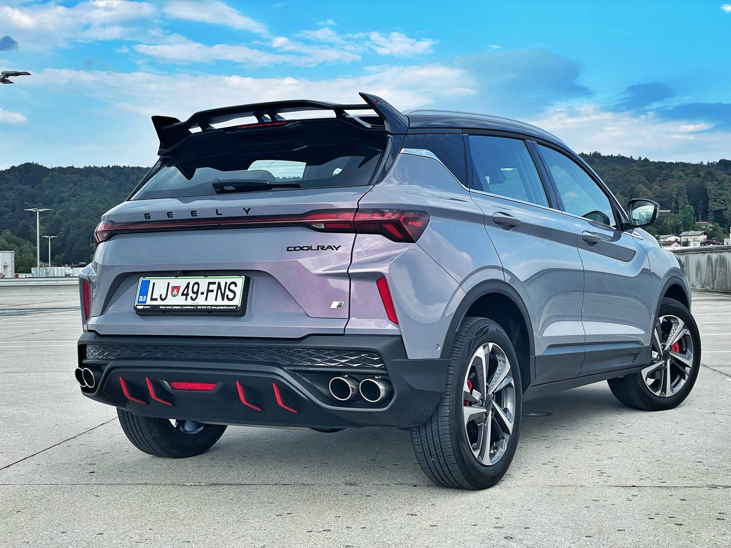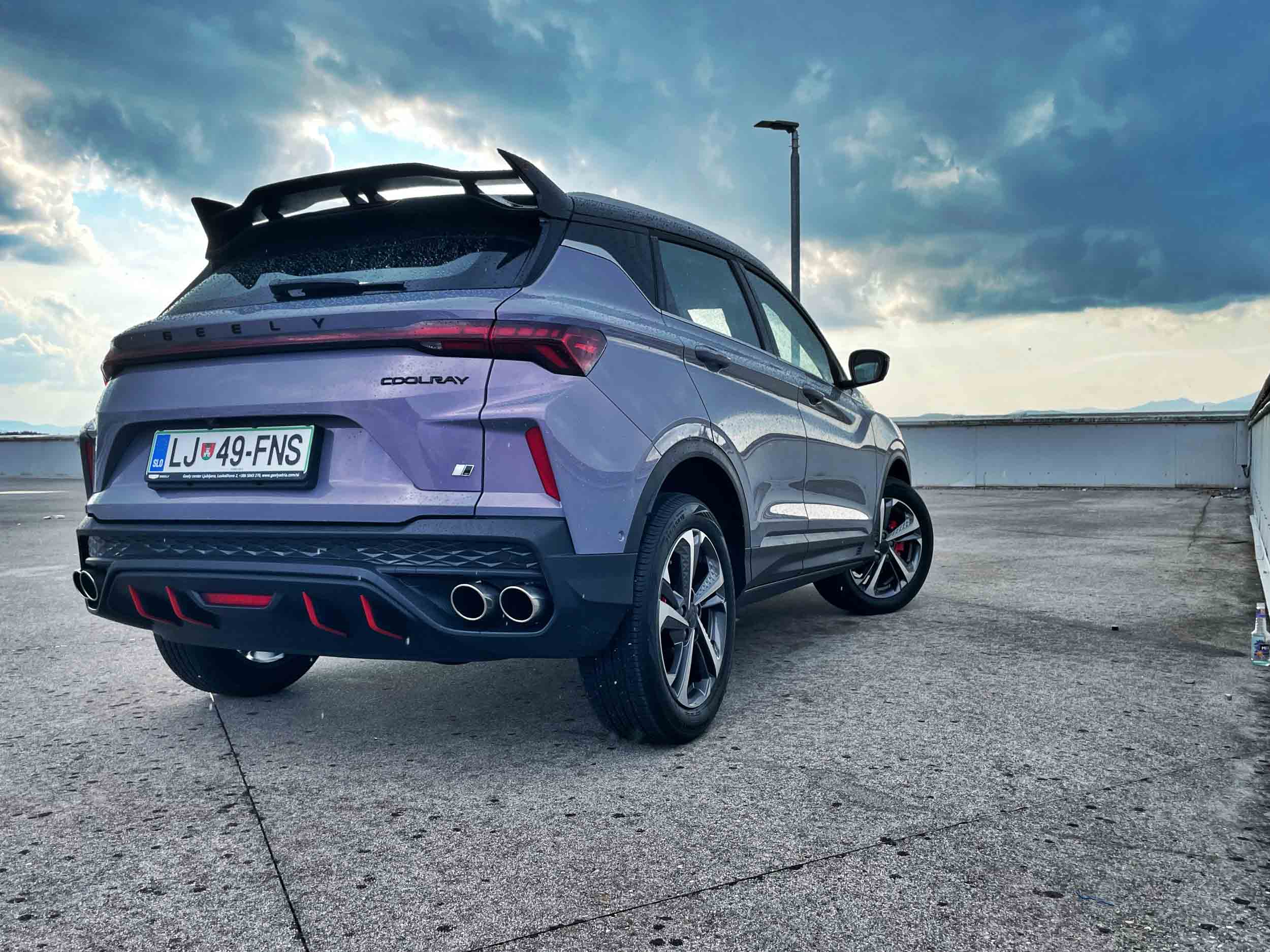 A to ne pomeni, da Geelyjev coolray ni zanimiv avto; 4,4 metra dolg križanec zelo evropskega formata navduši z vpadljivo, presenetljivo športno podobo, ki jo podčrtujejo 18-palčna kolesa, zajetna dvojna izpušna cev na zadku in dirkaški spojler nad zadnjim steklom. Ko k temu dodamo še svetlikajočo in na svetlobi spreminjajočo se barvo sivke, coolray upravičeno obrača glave.