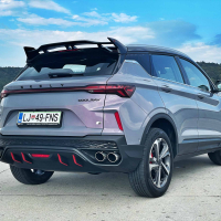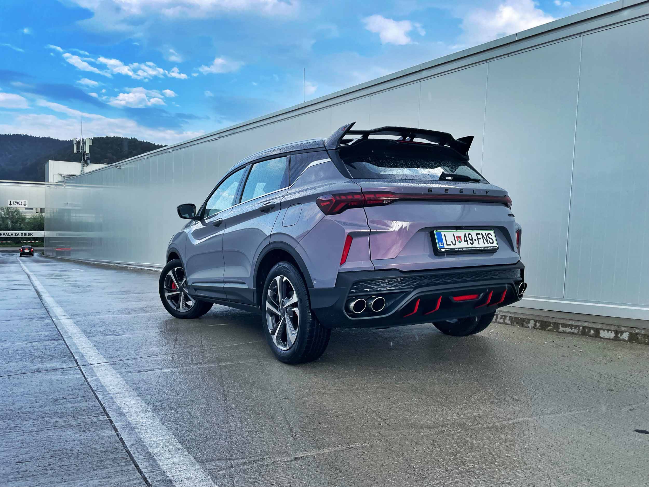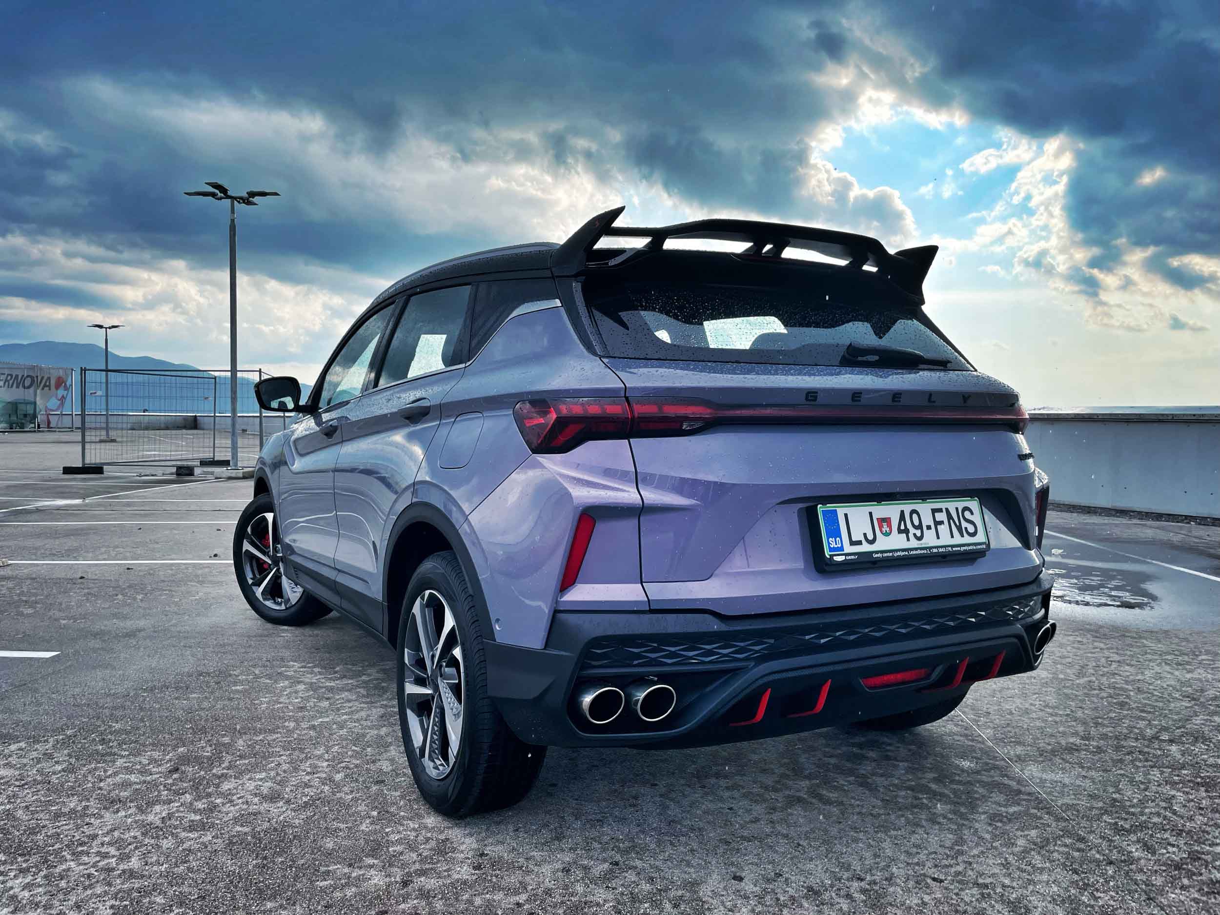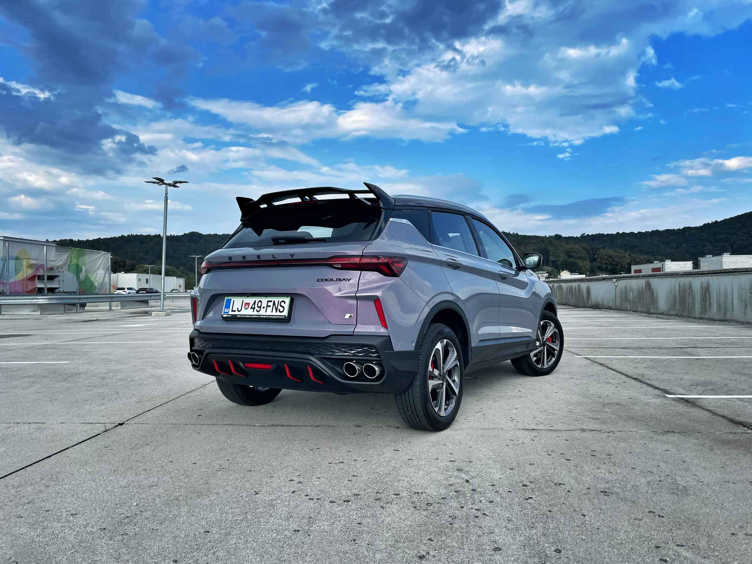 A to ne pomeni, da Geelyjev coolray ni zanimiv avto; 4,4 metra dolg križanec zelo evropskega formata navduši z vpadljivo, presenetljivo športno podobo, ki jo podčrtujejo 18-palčna kolesa, zajetna dvojna izpušna cev na zadku in dirkaški spojler nad zadnjim steklom. Ko k temu dodamo še svetlikajočo in na svetlobi spreminjajočo se barvo sivke, coolray upravičeno obrača glave.