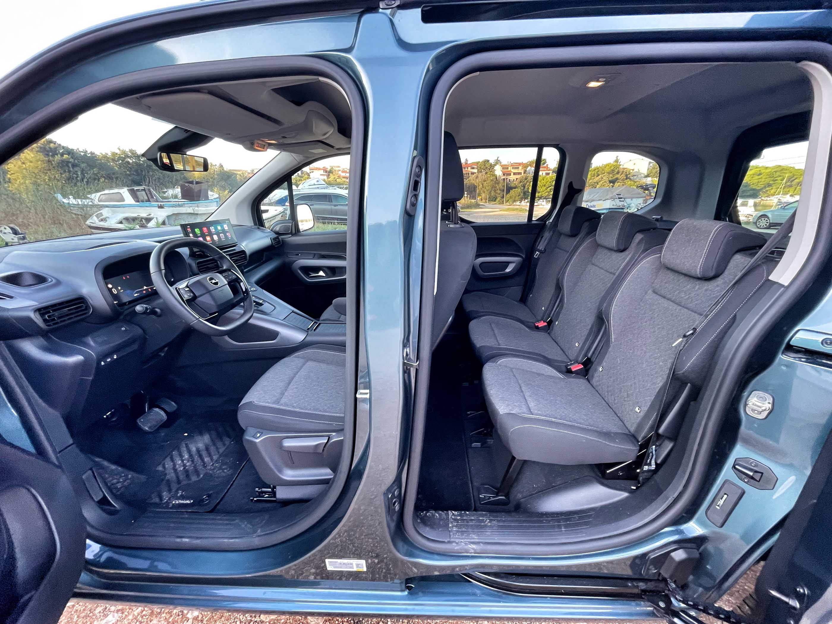 Potniška različica je zgolj izpeljanka, ki ima tri posamične, a dokaj ozke sedeže v drugi vrsti, do katerih dostopamo prek velikih drsnih vrat na obeh straneh avta. Vsi trije sedeži so opremljeni z isofix sidrišči za otroške varnostne sedeže - prednji sovoznikov sedež nima isofixa -, a je pri njihovem nameščanju treba upoštevati ozkost sedežev. Vsi trije sedeži so opremljeni z mehanizmom, ki ob prekucnjenem naslonu premakne tudi sedalni del sedeža, da nastane ravno dno prtljažnika. Zelo domiselno in uporabno, a z opombo, da sedež lahko zložimo le, če prednji sedež ni pomaknjen povsem nazaj, kar seveda še zlasti vpliva na voznikovo ergonomijo. Ta je dobra, zaradi visokega sedenja pa zagotavlja tudi zelo dobro vidljivost naprej, pogled na obe strani pa omejujeta dokaj debela prednja (A), pa tudi bočna (B) stebrička.