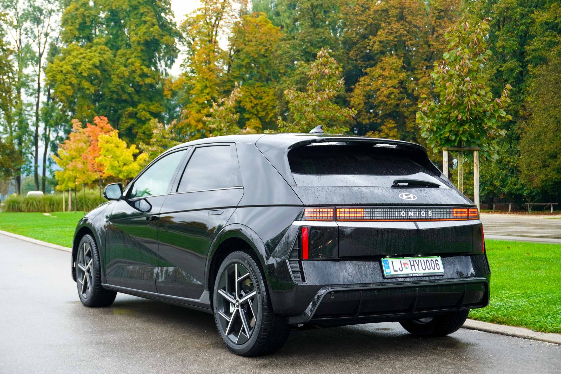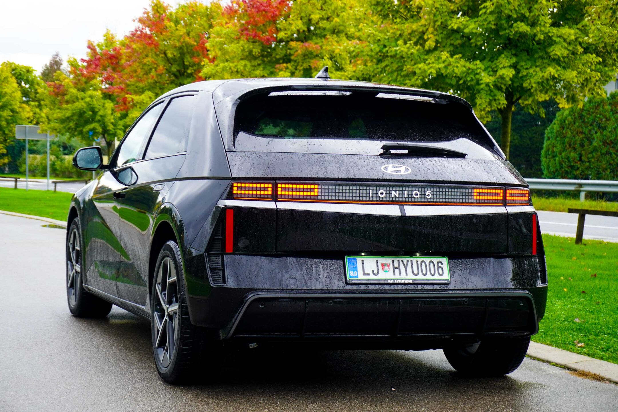 Večji akumulatorski sklop seveda pomeni tudi nekaj večjo skupno maso avtomobila, ki zdaj presega 2,1 tone. Kljub temu pa električni motor s 168 kW konične moči nima nobenih težav, da avtu ne bi zagotavljal zelo dobrih pospeškov, še zlasti, če voznik izbere športni program vožnje - na voljo sta še varčevalni (eko) in običajni, a tudi pri teh dveh je ioniq 5 suvereno kos vsem voznim zahtevam. Motor poganja zadnji kolesi in še zlasti na slovenskih mokrih, spolzkih cestah voznik hitro občuti zmogljivost motorja, še zlasti pri odločnejših pospeševanjih iz ovinkov. Elektronski nadzor stabilnosti deluje včasih malce z zamikom, a še vendarle dovolj učinkovito.