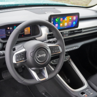V potniški kabini, kot smo zapisali že ob testu električnega avengerja, uporabljeni materiali pustijo malce cenen občutek. Položaj za volanom je dober, prav tako si pohvalo zaslužijo pregledni in enostavno nastavljivi digitalni merilniki, niz enostavno dostopnih analognih stikal za vse ključne funkcije in številna odlagalna mesta, med katerimi izstopa dolga polica pred sovoznikom. Ta je iz trde plastike, zato se odložene stvari na njej vozijo sem in tja.