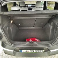 Še več unikatnosti je v notranjosti C3, kjer najprej v oči pade sploščen volanski obroč, nato pa še visoko postavljen razpotegnjen nadstrešek merilnikov, pod katerim je prvi od obeh digitalnih zaslonov. Ker na te merilnike gledamo prek volanskega obroča - in ne, kot običajno, skozi volanski obroč -, so jo pri Citroenu drzno poimenovali kar “head-up display”; ta oznaka seveda nima nič skupnega z uveljavljenimi projicirnimi sistemi na vetrobransko steklo, pa tudi pogled je vendarle treba malce spustiti, da vidimo na merilnike, a vse skupaj vseeno deluje kar pregledno, po našem mnenju bolje kot v peugeotu 208. Zaslon multimedijske naprave je štrleče postavljen na običajnem mestu sredi armaturne plošče; s podatki je razmeroma skop, ima pa brezžično povezavo s pametnim mobilnikom (z brezžičnim polnjenjem) in je sprejemljivo odziven. Razveseljuje dejstvo, da so glavna stikala za prezračevanje in gretje stekel še vedno mehanska.