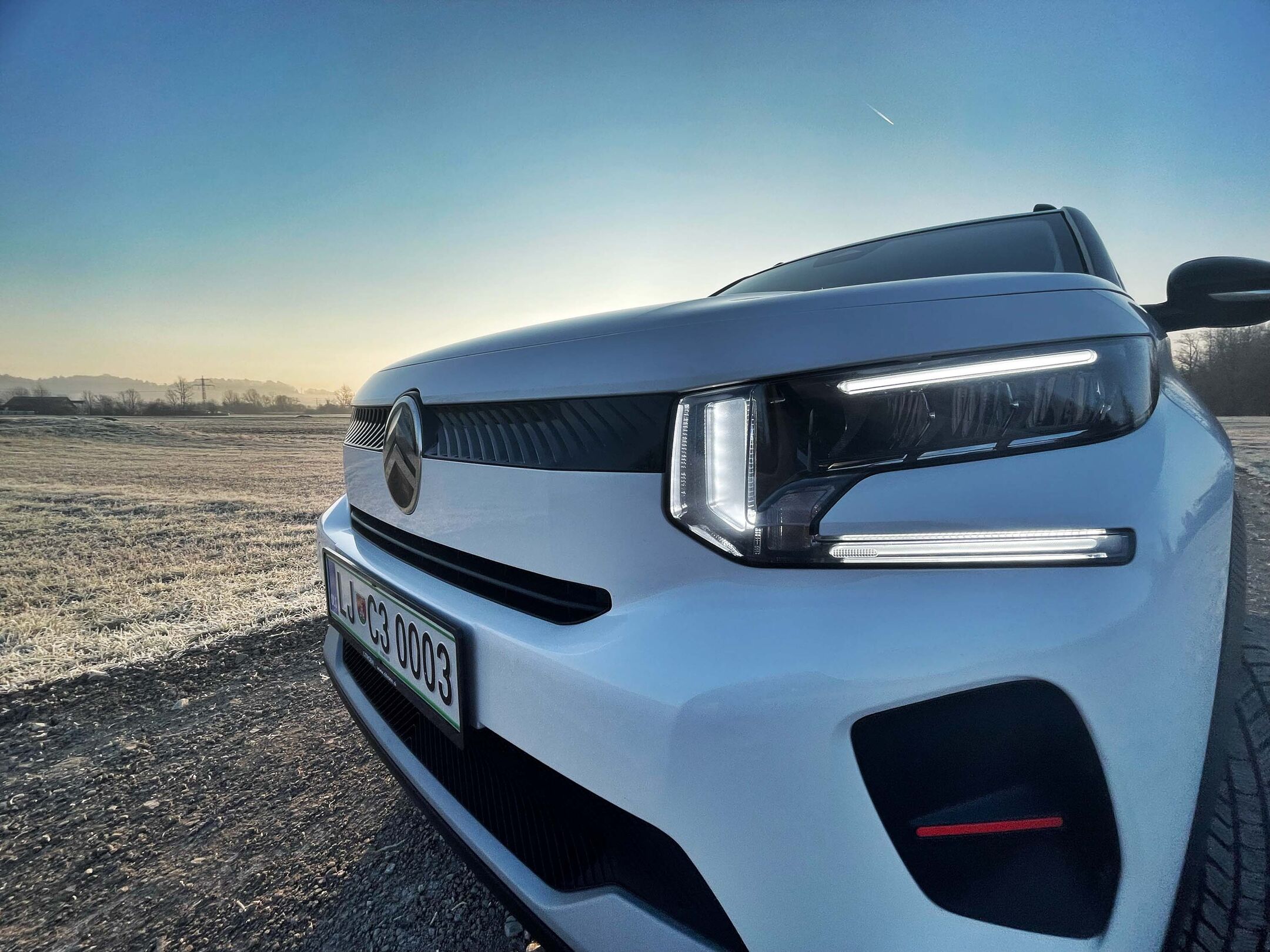 Četrta generacija C3 ni tako zelo nova, kot je videti navzven. Platforma je ostala enaka - novi C3 je le za nekaj centimetrov daljši kot doslej, zadržal pa je 254-centimetrsko medosno razdaljo -, si jo pa C3 deli z drugimi Stellantisovimi avtomobili tega razreda, začenši s peugeotom 208 in oplom corso. A je C3 vseeno videti precej drugače kot koncernski bratranci in sestrične: oblikovalci so C3 optično dvignili in mu vgradili bolj pokončno vetrobransko steklo, kar na koncu avtu daje višji sedežni položaj in robustnejši videz križanca. C3 ni seveda prav nič cestno-terenski avto, čeprav ima 19,7-centimetrsko oddaljenost od tal; morda se z njim lažje zapeljemo čez robnik, brezpotju pa se vseeno velja izogibati. K všečni podobi veliko pripomorejo tudi domišljene oblikovalske podrobnosti, kakršna sta zanimivo oblikovana žarometa ali tridimenzionalne zadnje luči, oblikovalsko uspel pa je tudi povratek Citroenovega retro logotipa iz leta 1959.