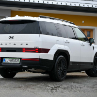 Priključno-hibridni pogon ni nov, je pa dopolnjen z več električne moči in navora. V celoti ima pogon malce manj sistemske moči kot prej, a hkrati več skupnega navora. Na novo so nastavili sodelovanje med 1,6-litrskim turbo bencinskim motorjem, elektromotorjem in 6-stopenjskim samodejnim menjalnikom. Pogon kot celota sedaj deluje bolj odzivno, prožno in predvsem učinkovito. Električna jadranja so pri avtocestnih hitrostih daljša in rekuperacija zavorne energije boljša. Žal pa pogonu niso namenili nove, zmogljivejše električne shrambe ali dodatnega DC polnilnika, kot to ponujajo tekmeci. V mislih imamo predvsem novo generacijo priključno-hibridnega Škodinega kodiaqa. Santa fe v zimskih mesecih zgolj na elektriko le s težavo prevozi več kot 40 km. Kdor bo sicer pogonski akumulator dosledno polnil iz vtičnice, bo v hibridnem načinu brez večjih težav povprečno porabo goriva spravil tudi pod mejo petih litrov. Marsikateri nekdanji ali bodoči kupec bo pogrešal dizelski motor, ki ga njegov Kiin prenovljeni korejski bratranec sorento še vedno ponuja. Z njim bi bila zagotovo večja tudi njegova vlečna moč: kot priključni hibrid za sabo lahko vleče le dobro tono težko prikolico (1010 kg).