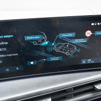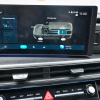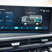 Izza volana santa fe pohvalo zasluži za pregledne in enostavno nastavljive digitalne merilnike, katerih 12,3-palčni zaslon visoke ločljivosti je del neprekinjenega samostoječega informacijskega centra, ki v rahlem loku voznikov zaslon povezuje še z osrednjim informacijsko-komunikacijskim zaslonom. Ta z najnovejšo programsko opremo sistema Bluelink ponuja pravo bogastvo sproti osveženih informacij, kot so stanje na cestah, vreme in celo cene goriva ter seveda še vse najsodobnejše komunikacijske storitve. Tehnologija vozniku omogoča vso možno pomoč za varnejšo vožnjo. Santa fe ima celo vrsto aktivnih in predvsem zanesljivo delujočih vozniških pomagal; avto brezhibno vzdržuje smer in varnostno razdaljo, pri nadzoru mrtvih kotov ponudi še živo sliko dogajanja ob boku avtomobila vsakič, ko voznik vklopi smernik. Sistem nadzora mrtvih kotov deluje tudi pri izstopanju iz avtomobila. Za dodatnih 240 evrov je bil testni santa fe opremljen še z dodatnim digitalnim ključem, ki lastniku omogoča odklepanje in zaklepanje avtomobila na daljavo ter zagon avtomobila tudi s telefonom, ki ga ima lastnik namesto fizičnega ključa ob sebi v kabini. Seveda ima voznik na voljo še pametni ključ, ki deluje v povezavi z naprednim parkirnim pomočnikom in zmore na ukaz parkiranje zaključiti s pomočjo daljinskega nadzora, ko je voznik zunaj avtomobila.
