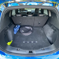 Najprej o najpomembnejši: akumulatorskem sklopu. Ta ima v hibridni različici zmogljivostd 1,1 kWh, v priključno hibridni različici pa je zmogljivost 14,4 kWh. Tolikšna zaloga elektrike naj bi normno omogočala od 60 do 69 km dosega z vožnjo zgolj na elektriko. Takšen način vožnje voznik lahko izbere v izbirniku načina vožnje: na voljo so namreč hibridni pogon, vožnja zgolj na elektriko in vožnja brez pomoči shranjene elektrike, ker jo voznik hrani za poznejšo vožnjo, na primer v mestu. Omenjeni doseg je kar težko doseči, v praksi se je izkazalo, da avto zgolj na elektriko zmore med 40 in 50 km, odvisno od konfiguracije terena in voznikovih zahtev. A do polnega akumulatorskega sklopa ni tako enostavno priti, če nimate domače polnilnice ali vsaj električne vtičnice. Največja polnilna moč polnilnika v kugi je namreč vsega 3,7 kW - v praksi je bilo polnjenje še malce šibkejše, kar na običajnih javnih 22 kW polnilnicah pomeni, da traja polnjenje 3,5 ure. Če avto polnite prek običajne domače vtičnice, za napolnitev potrebujete več kot 6 ur. To torej pomeni, da med potjo lahko pozabite na polnjenje, saj je prepočasno. Če pa kugo polnite doma in se vozite na kratke razdalje, bo kuga povsem uporaben (električni) avto, ki se seveda lahko vozi tudi na hibridni pogon s pogonom prek bencinskega motorja in ob pomoči elektro motorja, ki energijo dobiva z rekuperacijo zavorne energije. Upoštevati velja le, da je posoda za bencin v priključno hibridni različici manjša za 9 litrov kot v hibridni, a tudi 45 litrov bencina je ob porabi 6,1 litra dovolj za približno 700 km vožnje.