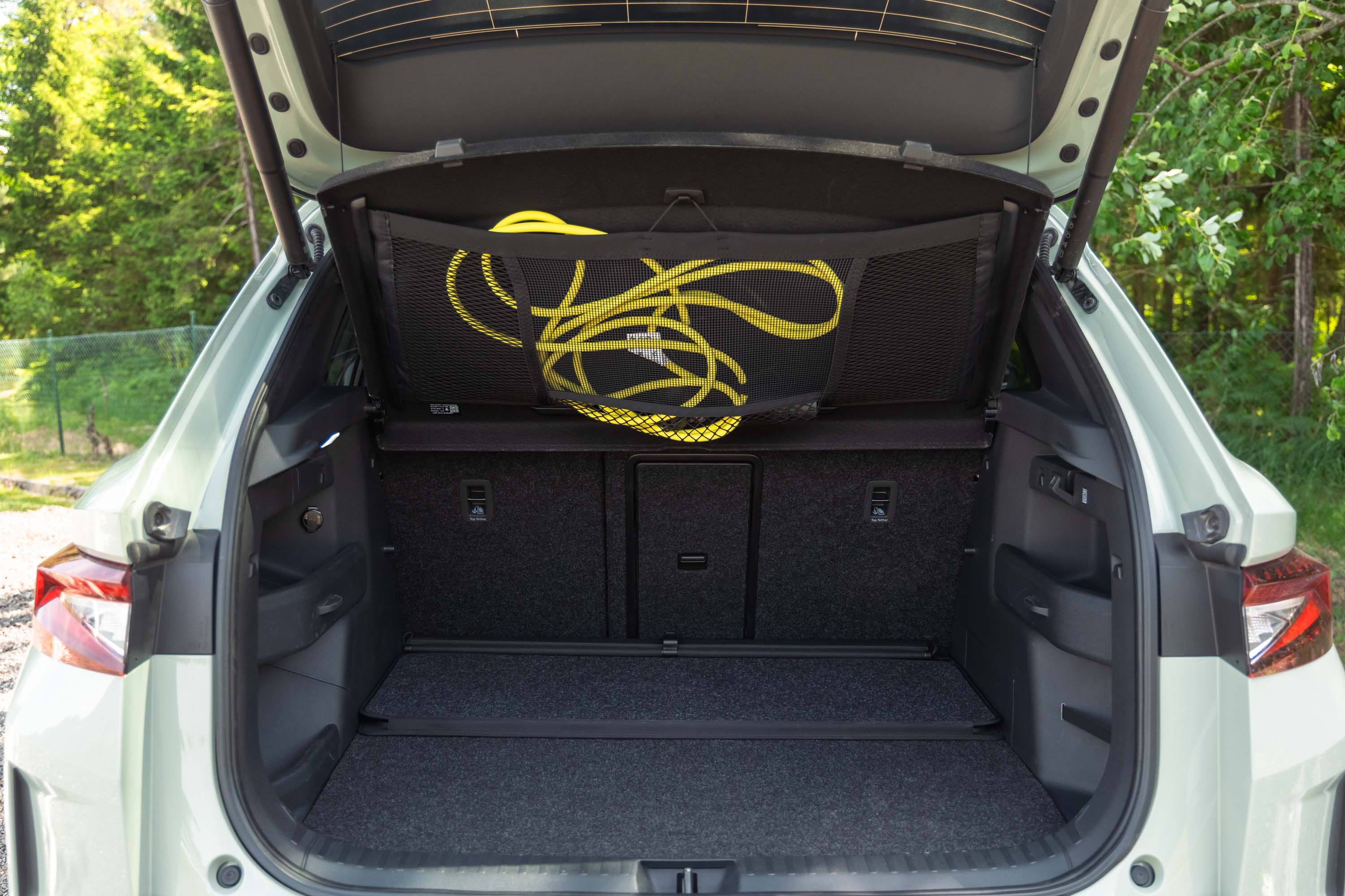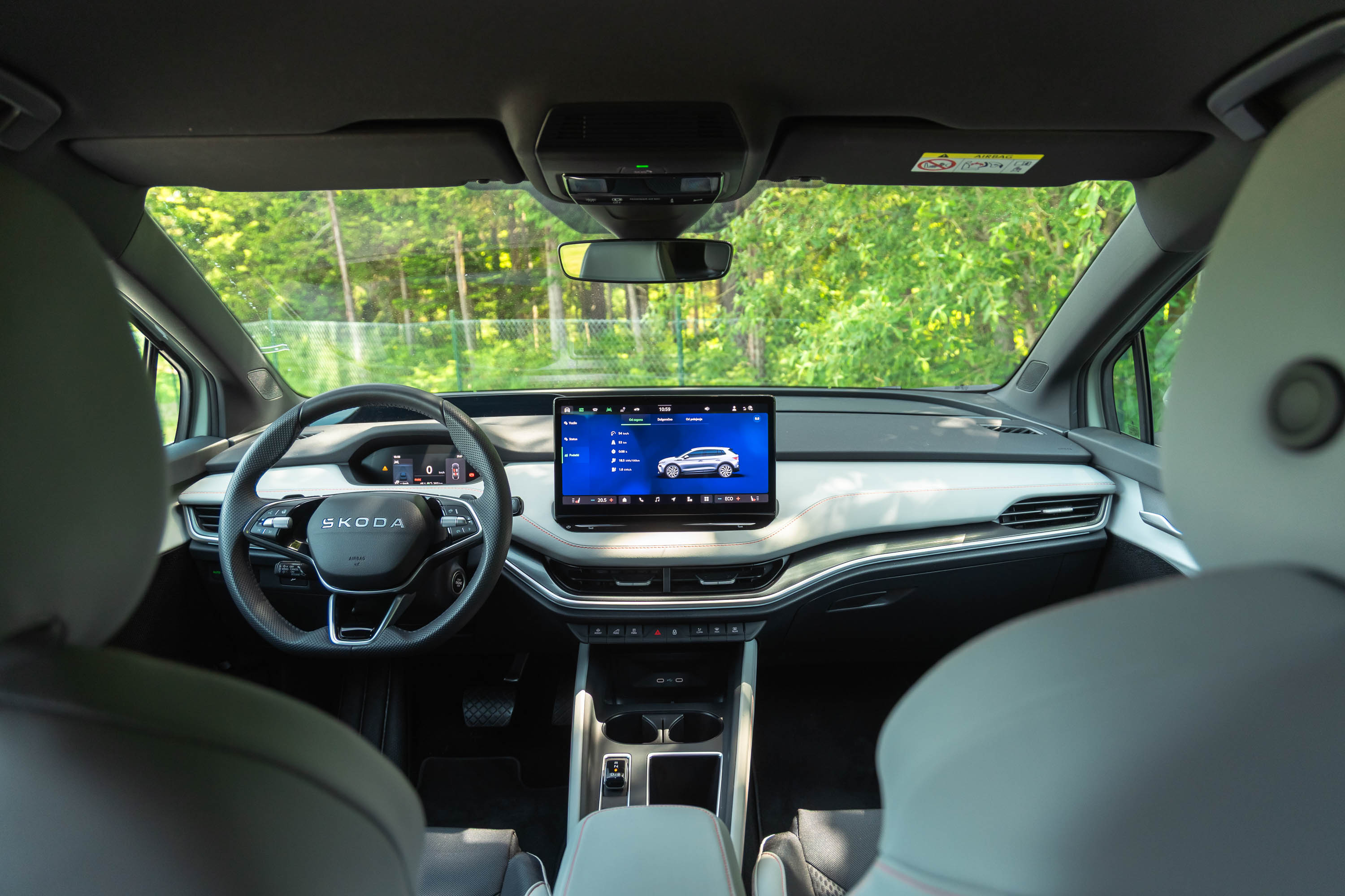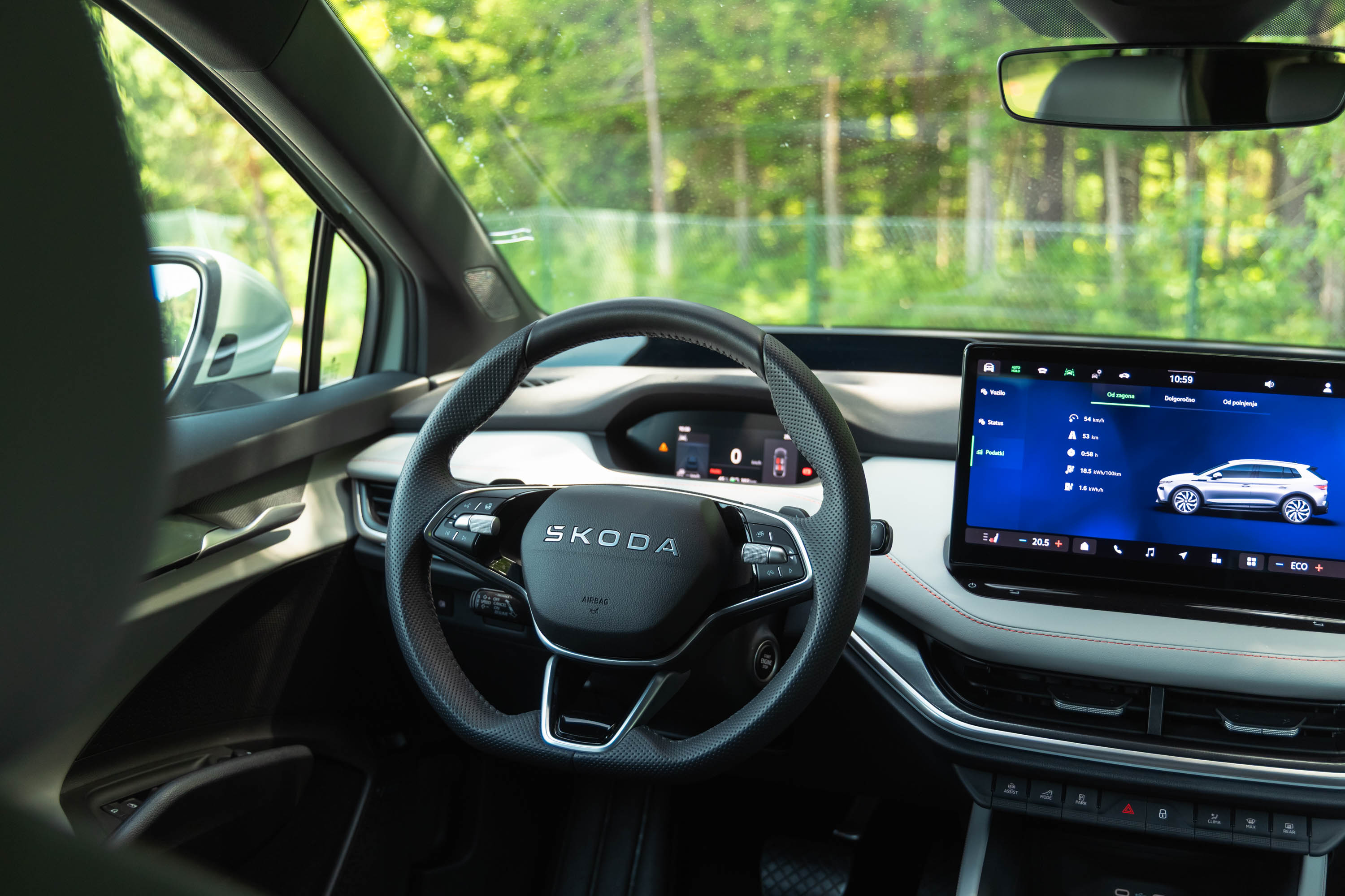 Elroq je seveda postavljen na Volkswagnovo MEB platformo, ima 277-centimetrsko medosno razdaljo, obilico prostora za potnike zadaj in uporaben (a ne največji) 470-litrski prtljažnik z nekaj domiselnimi rešitvami, kakršne so na primer mreža za shranjevanje kablov pod prtljažno polico, dvojno prtljažno dno in v okvir prtljažnih vrat spravljeno strgalo za led.