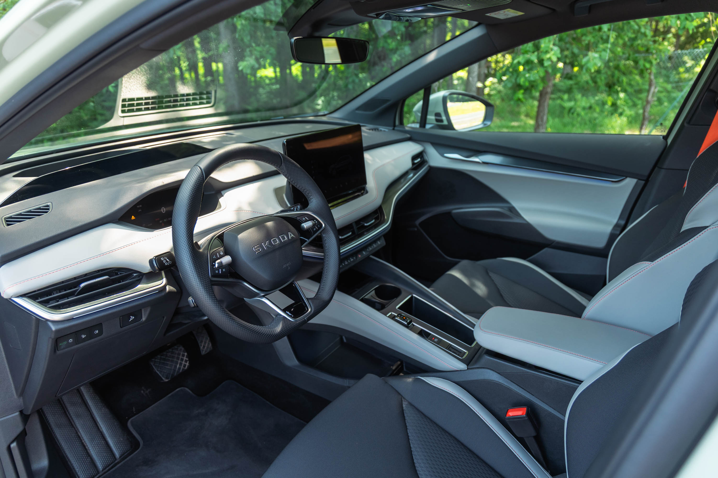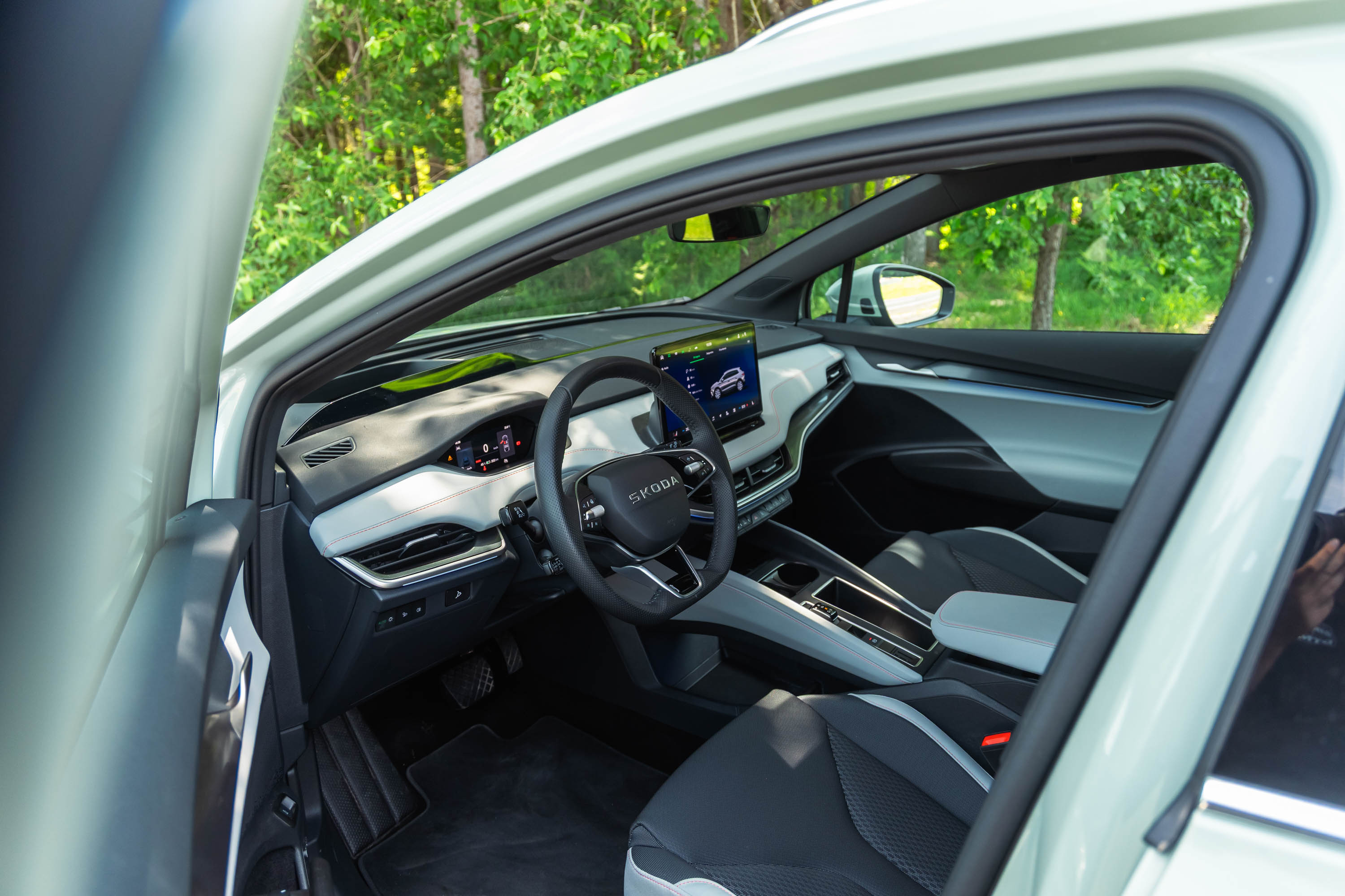 Vozniško okolje poznamo iz drugih električnih avtov VW koncerna; uporabniški vmesnik multimedijskega sistema je bolj odziven kot v preteklosti, kakovost vgrajenih materialov in izdelave pa je na zelo visoki ravni; ob odlični zvočni izolaciji potniške kabine in izjemno udobnem vzmetenju so tudi daljša (družinska) potovanja zelo udobna. Veliko zaslug za to ima seveda opremljenost avta; pri elroqu sicer ne moremo izbirati opremskih različic, lahko pa dodajamo doplačljive opremske pakete dodatkov za udobje in tehnologijo. Najzmogljivejši elroq s sistemsko močjo 210 kW in (neto) zalogo energije 77 kWh na primer v osnovi stane 41.344 evrov, z nekaj dodatnimi opremskimi paketi (na primer z bogatejšim naborom asistenčnih sistemov, imenitnejšo notranjostjo in številnimi drugimi dodatki) pa je treba za takšnega elroqa odšteti že več kot 52 tisočakov. S takšno ceno se mora elroq za kupce boriti s številnim tekmecem - nekateri so tudi prostornejši, zmogljivejši, energetsko bogatejši in bolje opremljeni; v tem primeru morda elroqove udobne in lahkotne vozne lastnosti ter odlično bivalno počutje ne bodo dovolj prepričljiv prodajni argument …