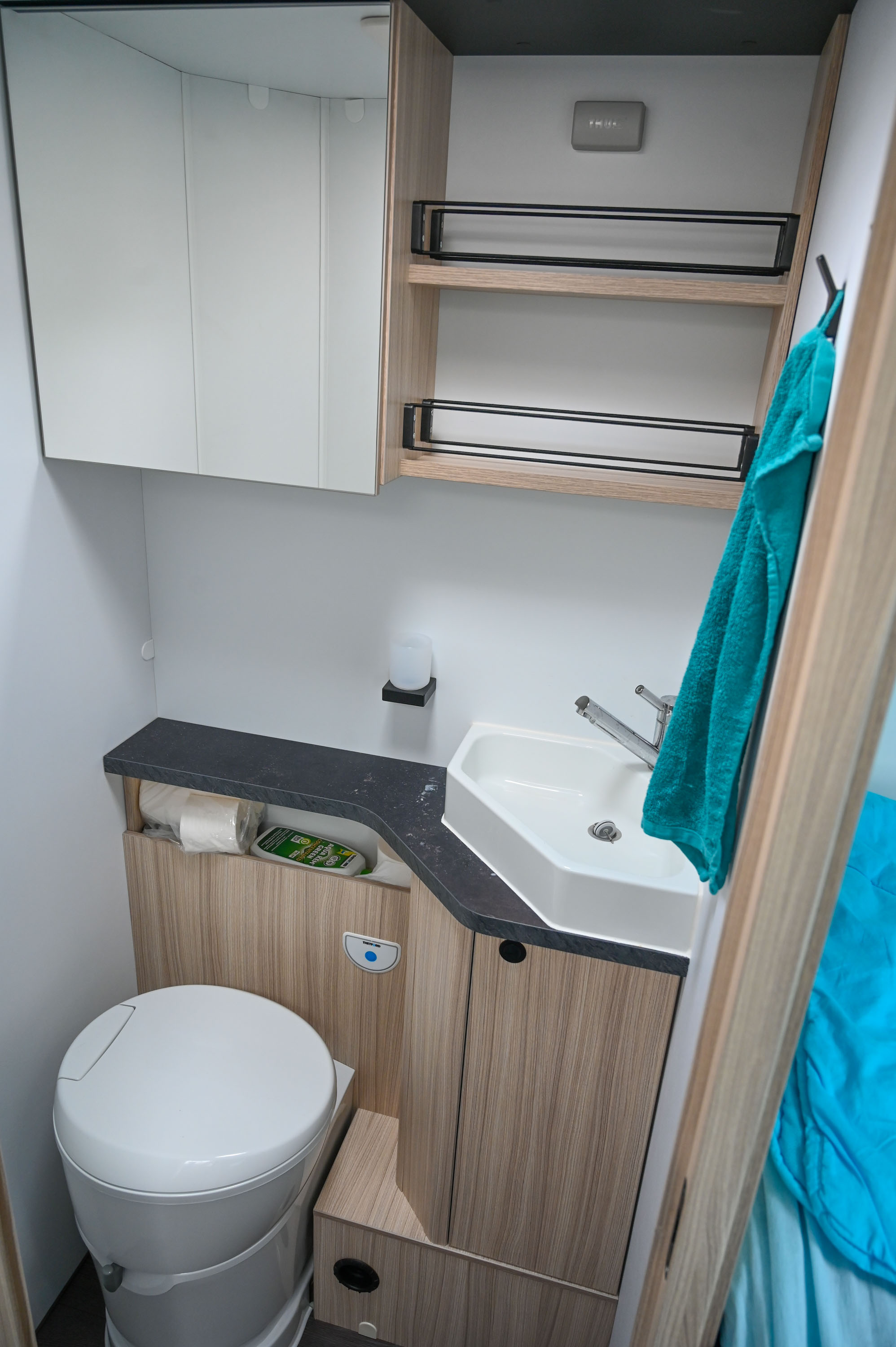 Zaradi racionalnega pristopa gradnje ima z dobrimi tremi tonami mase ta avtodom še nekaj rezerve v nosilnosti, a pred odhodom na pot vseeno ne napolnite 110-litrskega zalogovnika sveže vode, izpraznite zalogovnik umazane vode in kasetno stranišče. Verjemite, vsak kilogram šteje.
