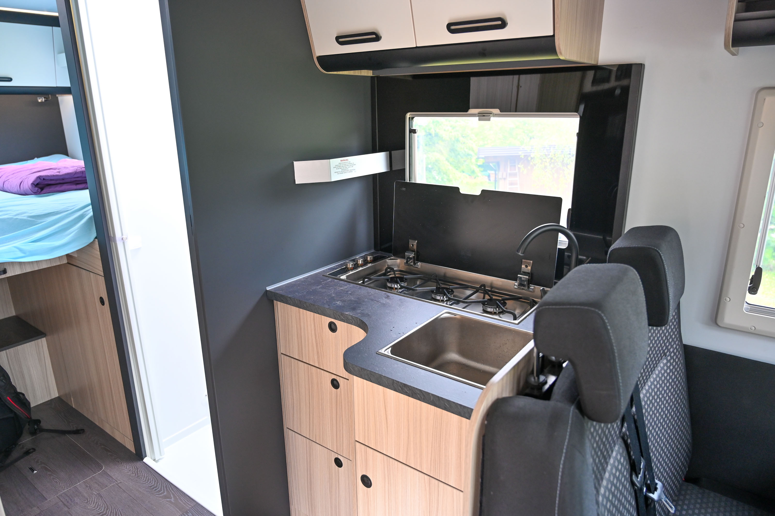 Naš testni avtodom je bil odličen primer preproste, a učinkovite zasnove bivalnega dela. Za Trumino ogrevanje vode in notranjosti so uporabili energetsko zalogo iz posode za gorivo, kar pomeni, da je plin namenjen samo kuhinji z velikim triplamenskim štedilnikom. Temu zato več kot zadostuje manjša in lažja 5-kilogramska jeklenka.