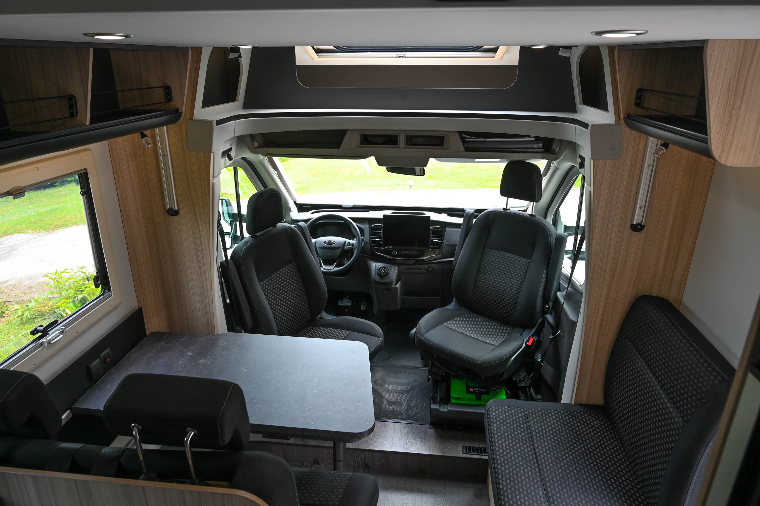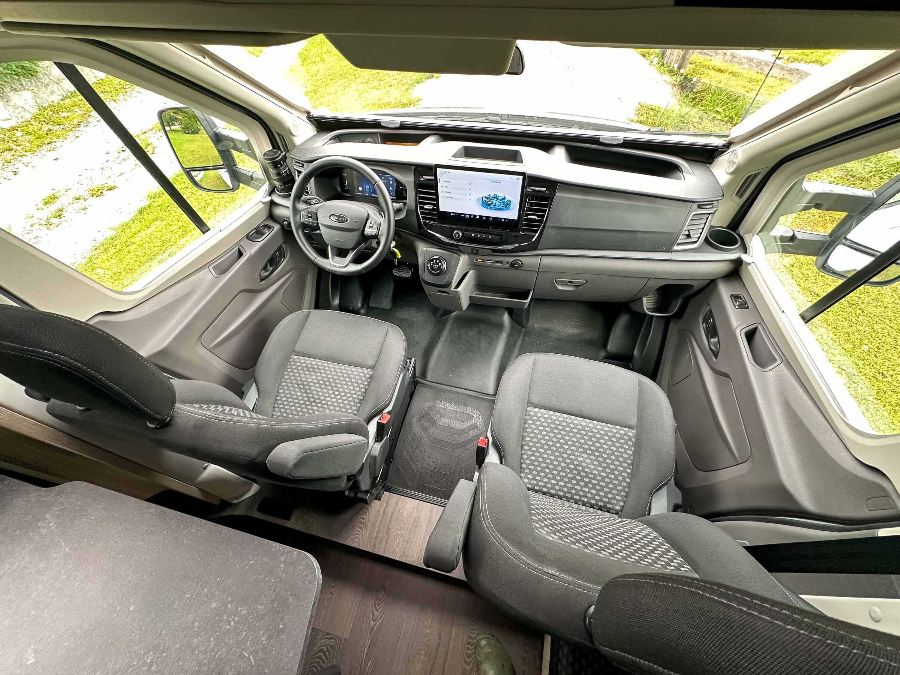 Po dolgem času smo preskusili bazno vozilo, ki ni bilo iz nabora Stellantisove ponudbe. Zajetno hišo je tokrat na svojem podvozju nosil Fordov transit s sodobnim in dovolj prožnim TDCi dvolitrskim dizelskim motorjem s 405 Nm navora, ki ga je odlično dopolnjeval 8-stopenjski samodejni menjalnik. Pri tem velja poudariti, da je Ford v avtodom pripeljal še dober komunikacijski vmesnik sync4 s širokopasovnim 5G mobilnim modemom za vse ključne komunikacijske storitve in navigacijo. Pohvalimo tudi razširjen nabor vozniških pomagal s tempomatom, natančnim branjem prometnih znakov, samodejnim nadzorom dolžine snopa žarometov …