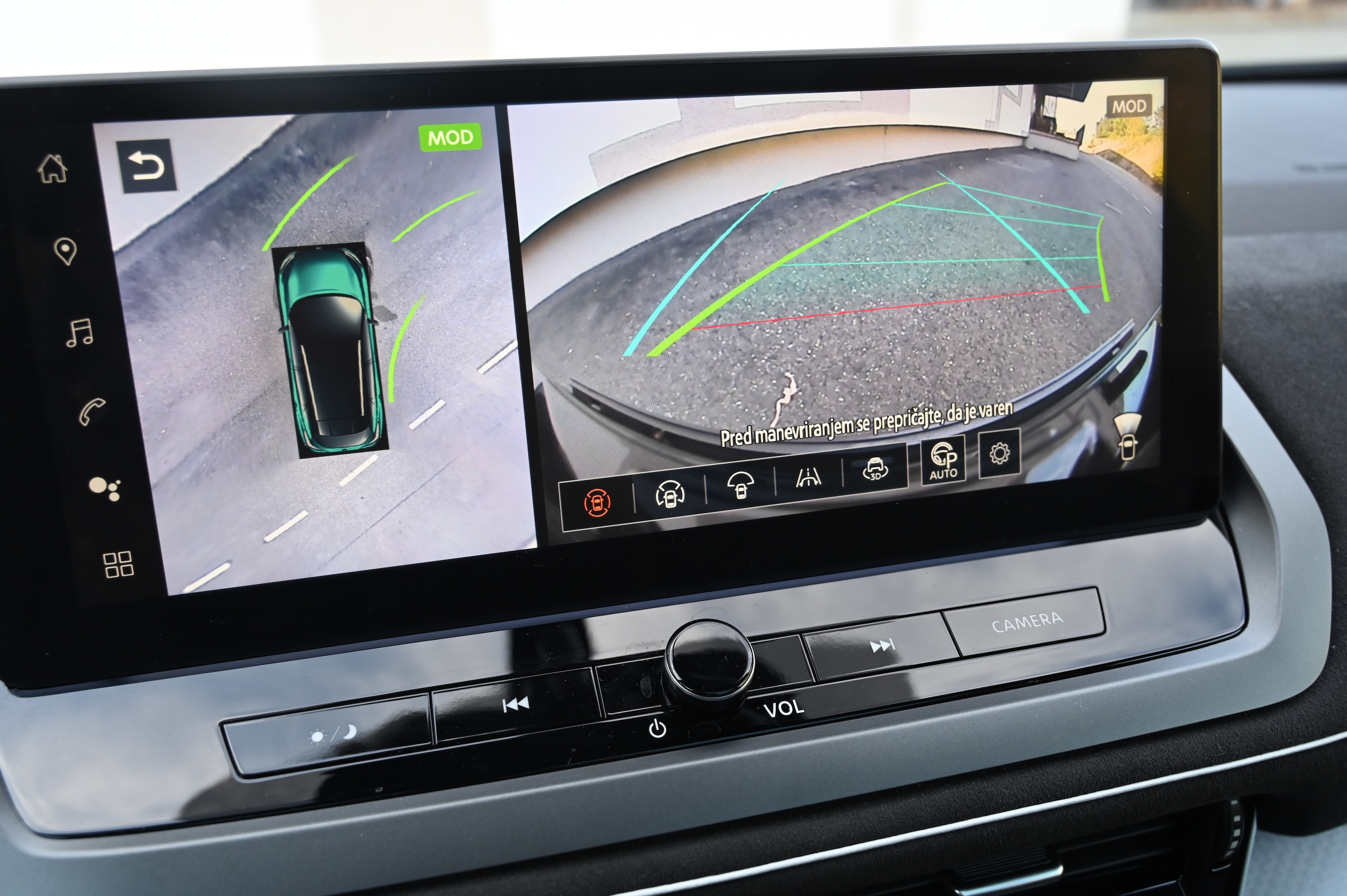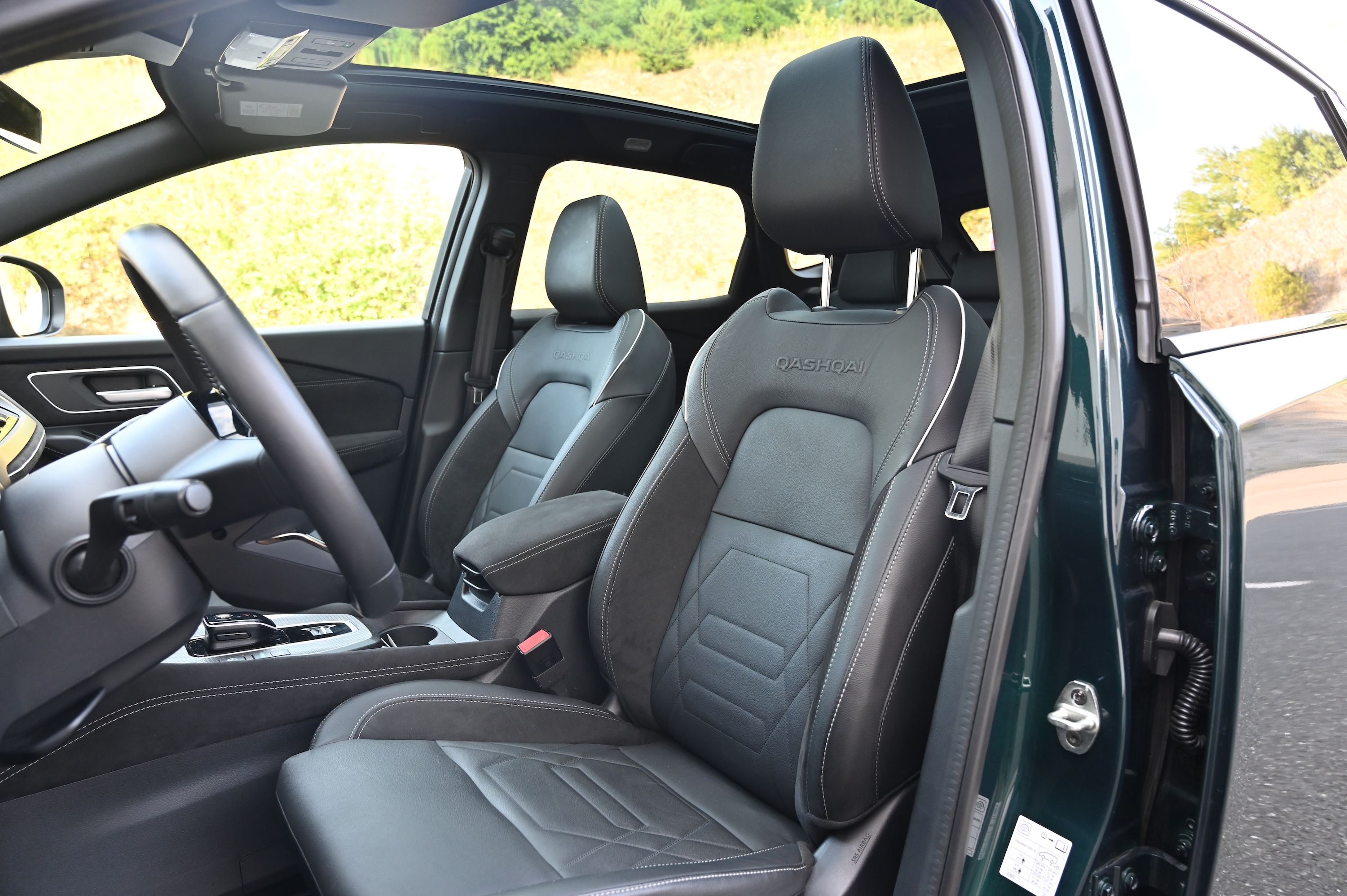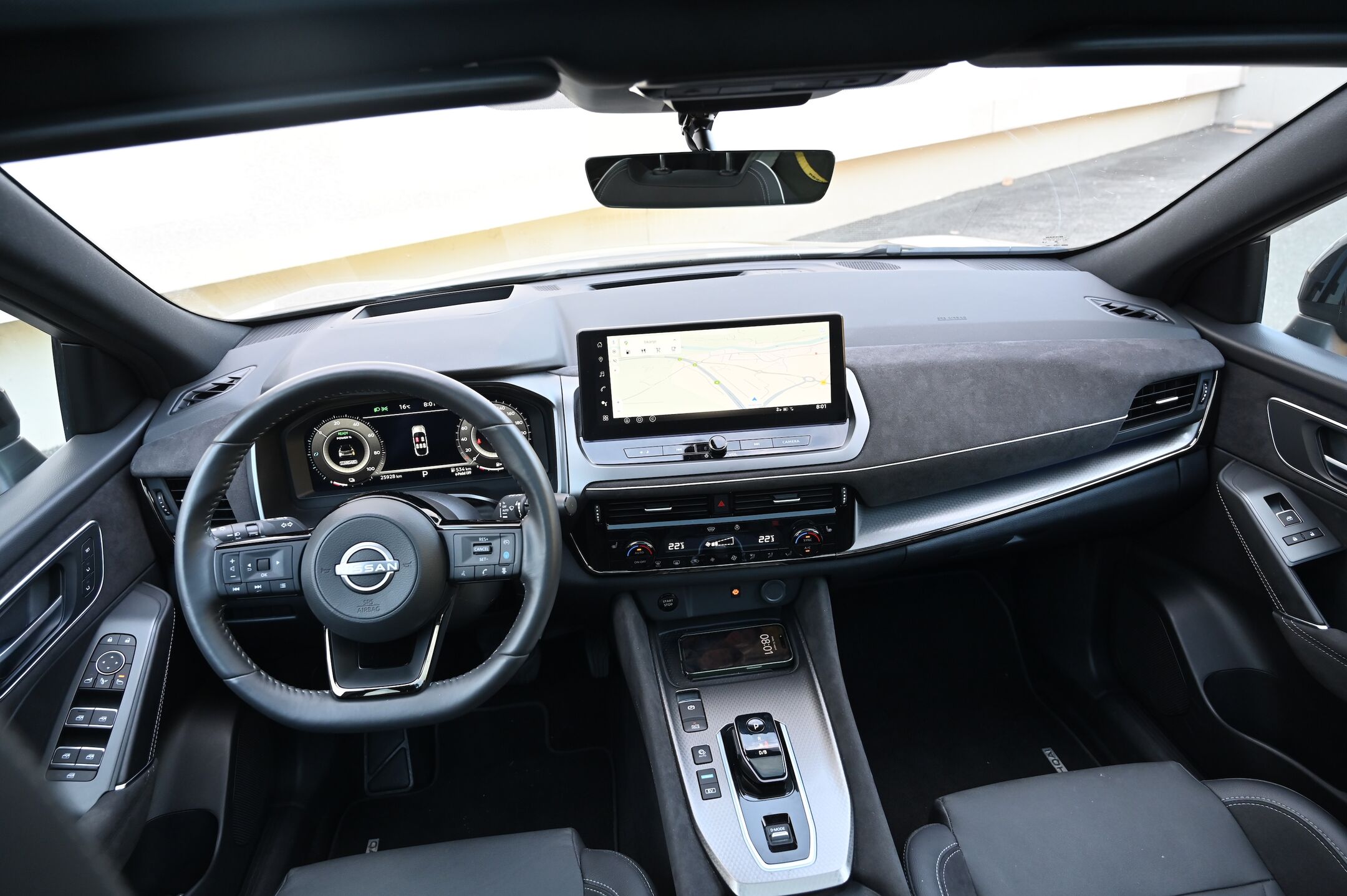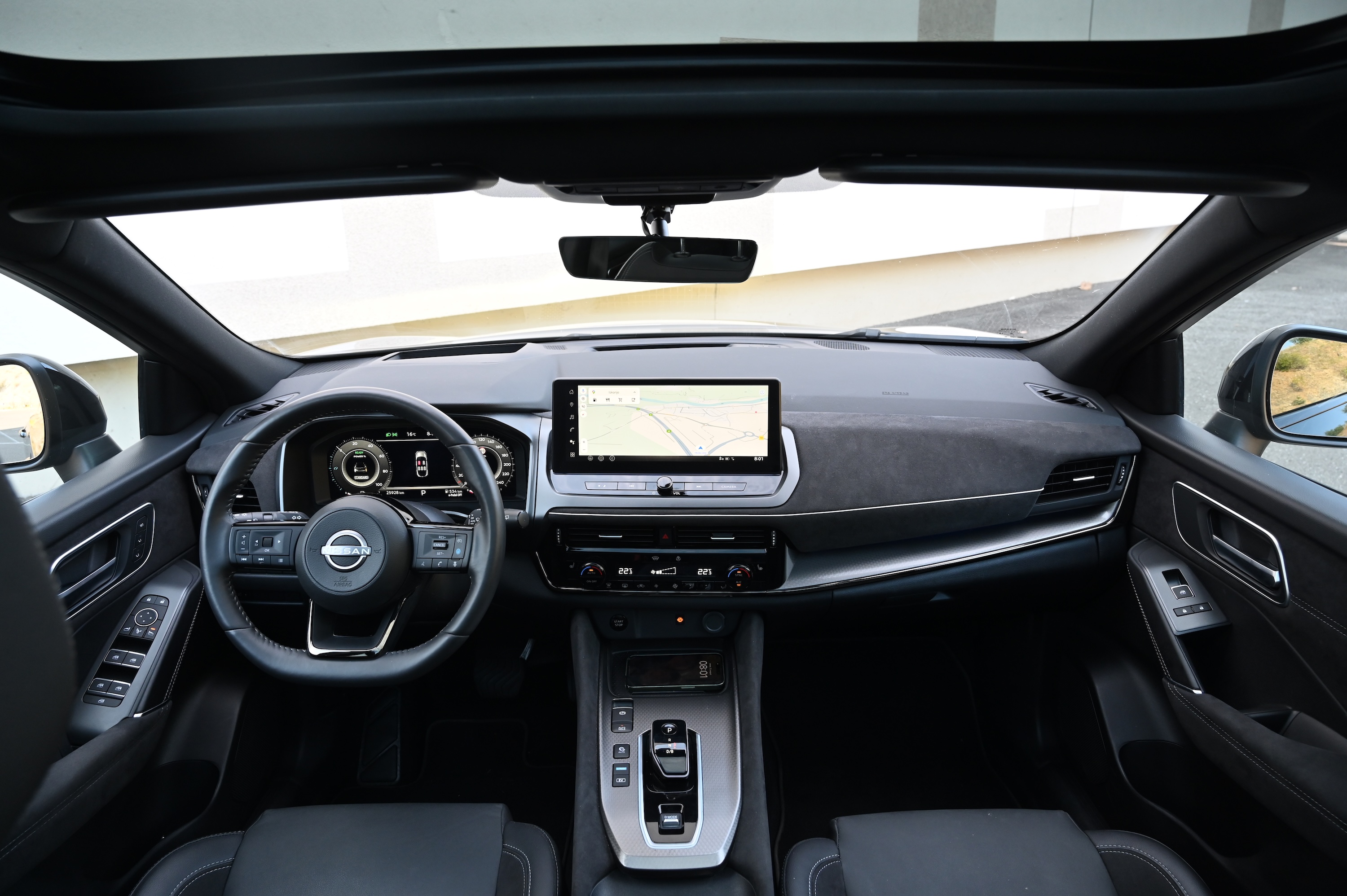 V potniški kabini qashqai ne ponuja presenečenj. Na digitalni instrumentni plošči so vozniku na voljo vsi najpomembnejši podatki: nekateri stalno, drugi na priklic s stikalom na volanu. Na sredinskem zaslonu na armaturni plošči so na voljo podatki o navigaciji, radiu, telefonu, prek katerega lahko vzpostavimo brezžično Apple CarPlay povezavo. Prek tega zaslona lahko upravljamo tudi razne nastavitve.