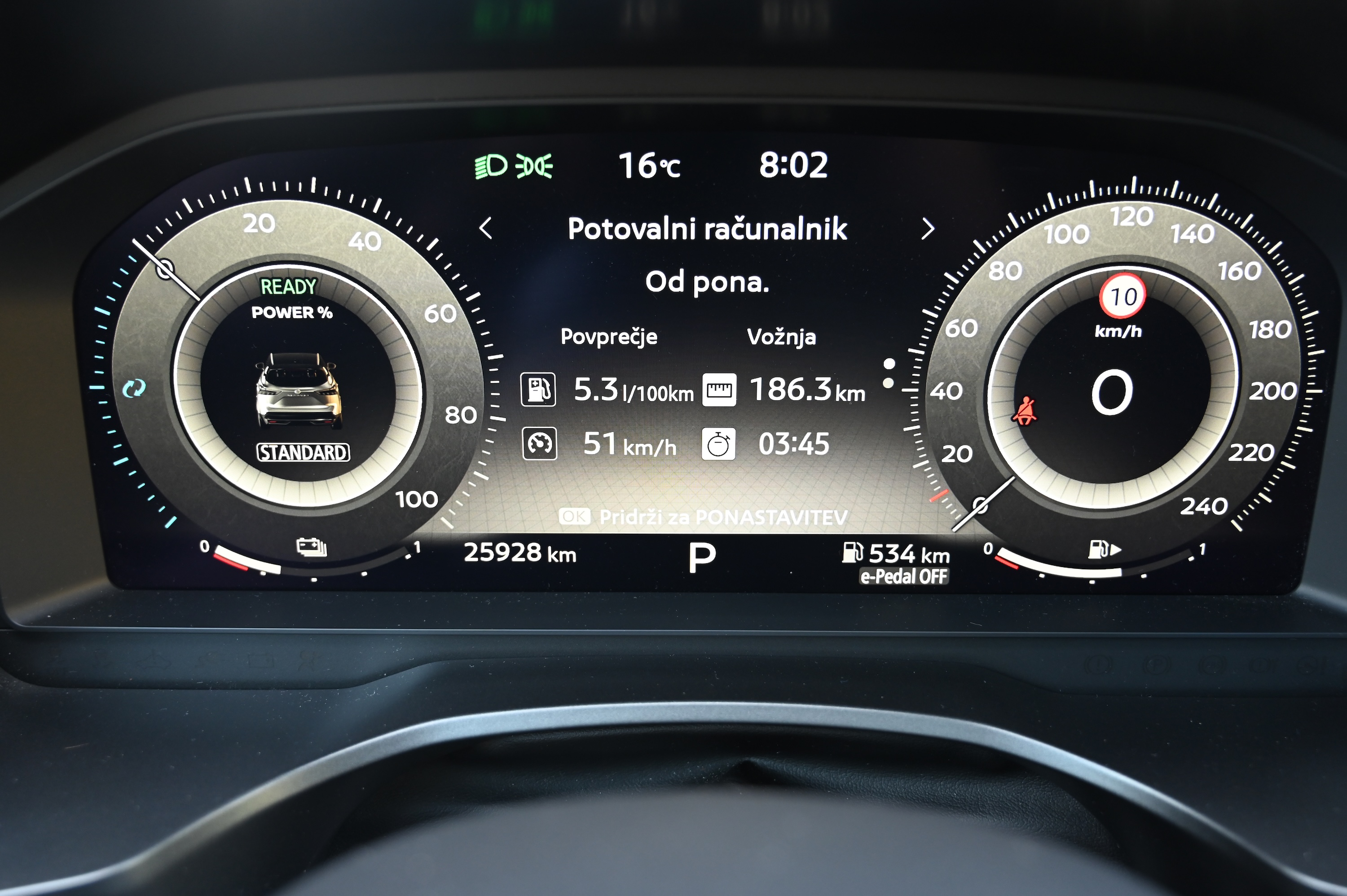 Ena od dobrih lastnosti e-power sistema je, da je akumulatorski sklop dokaj majhen in zato lahek, kar se pozna pri teži avtomobila, ki znaša 1741 kg, a ni manjša kot pri hibridnih avtih. To seveda vpliva na vozne zmogljivosti in lastnosti, vpliva pa tudi na učinkovitost pogona. Na našem preskusu je qashqai v povprečju porabil 5,9 litra bencina na 100 km, kar je za velikost avta zelo dober dosežek. Pri 55-litrski posodi za gorivo je tako doseg avta z enim polnjenjem goriva blizu devetsto kilometrov.