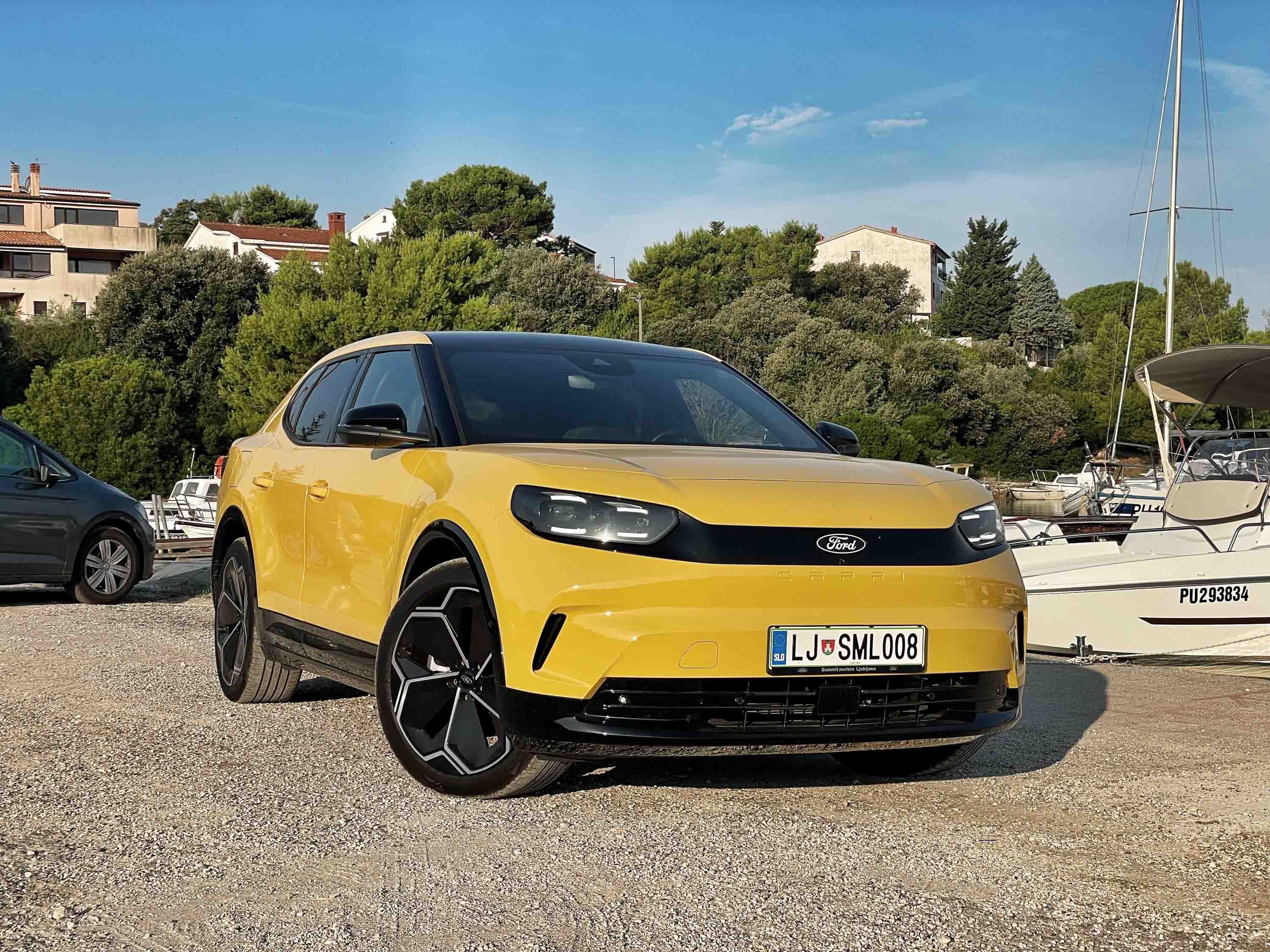 Zdi se, da Ford še ni našel svojega mesta v novi avtomobilski realnosti; pred kratkim je iz Fordove nemške tovarne v Saarlouisu zapeljal zadnji focus, v njihovi kölnski tovarni, kjer izdelujejo električne avte, je delo pred kratkim zaradi slabe prodaje električnih avtov izgubilo (še) 1000 delavcev, v njihovi ponudbi osebnih avtomobilov pa zeva kar nekaj lukenj. Ne čudi torej, da je tudi novi capri malce nenavaden avto; je srednjevelik kupejevski križanec, ki je - enako kot njegov tehnični brat explorer - postavljen na Volkswagnovo MEB platformo, s Fordovim samostojnim električnim avtom mustangom mach-E-jem pa nima prav nič skupnega.