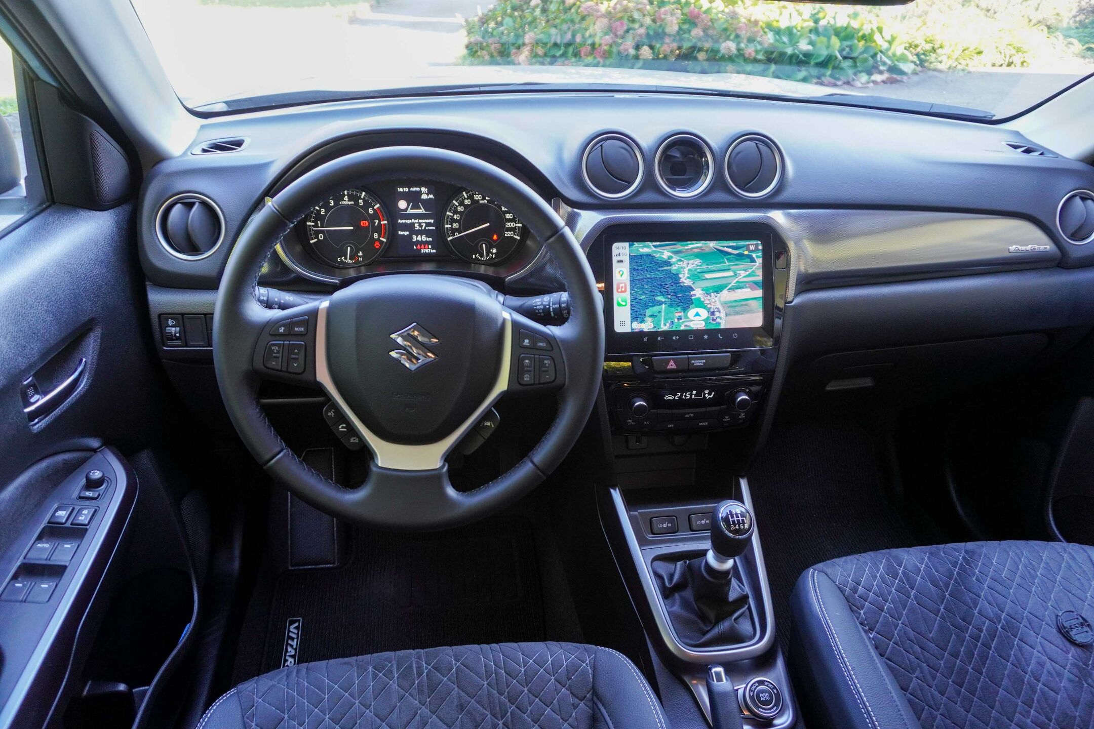 Suzuki je znan po svojih pragmatičnih avtomobilih s preverjeno tehniko. Tudi vitara je takšna. Njeno podobo že precej let srečujemo na cestah v skoraj nespremenjeni podobi. Sedaj je dobila nekoliko spremenjen videz, še zlasti v prednjem delu, kjer je kromirane dele zamenjala maska v sijoči klavirsko črni barvi. Malce neobičajno, a prepoznavno na prvi pogled. Sicer pa je karoserija ostala nespremenjena, kar pomeni, da je avto dolg malce manj kot 4,2 metra, širok 177,5 cm in visok 160 cm, medosna razdalja pa je še naprej 250 cm. To seveda pomeni tudi enako prostornost v potniški kabini, kjer je na dokaj visoko postavljenih prednjih sedežih dovolj prostora tudi za višjerasle, pa tudi na zadnji klopi je vsaj za dva običajno velika potnika prostora dovolj. Prtljažnik je s 362 litri dovolj velik za vsakdanjo uporabo, ima dvojno dno, naslon zadnje klopi je asimetrično deljen, prekucljiv in s polico v zgornjem položaju zagotavlja ravno dno prtljažnika.
