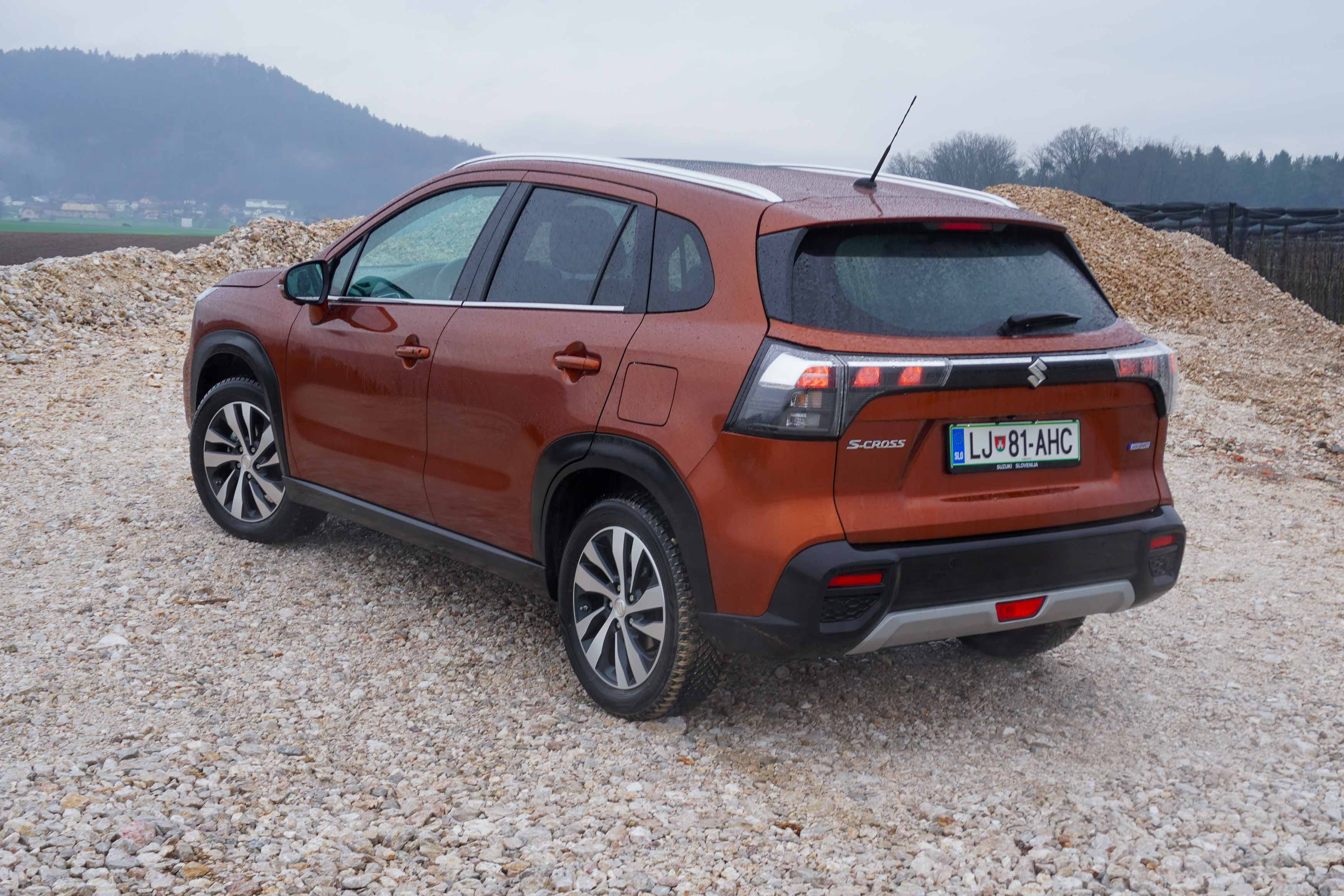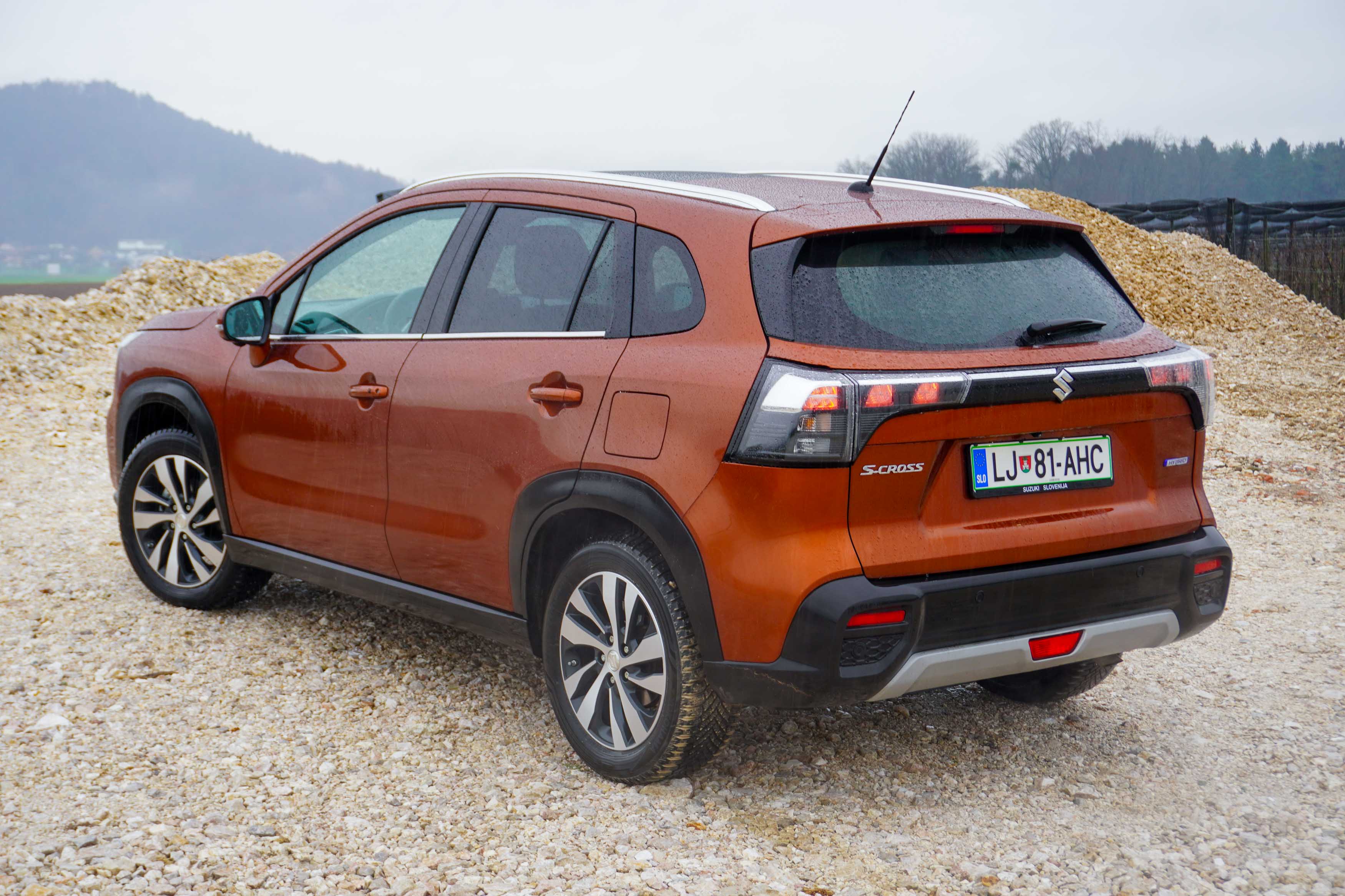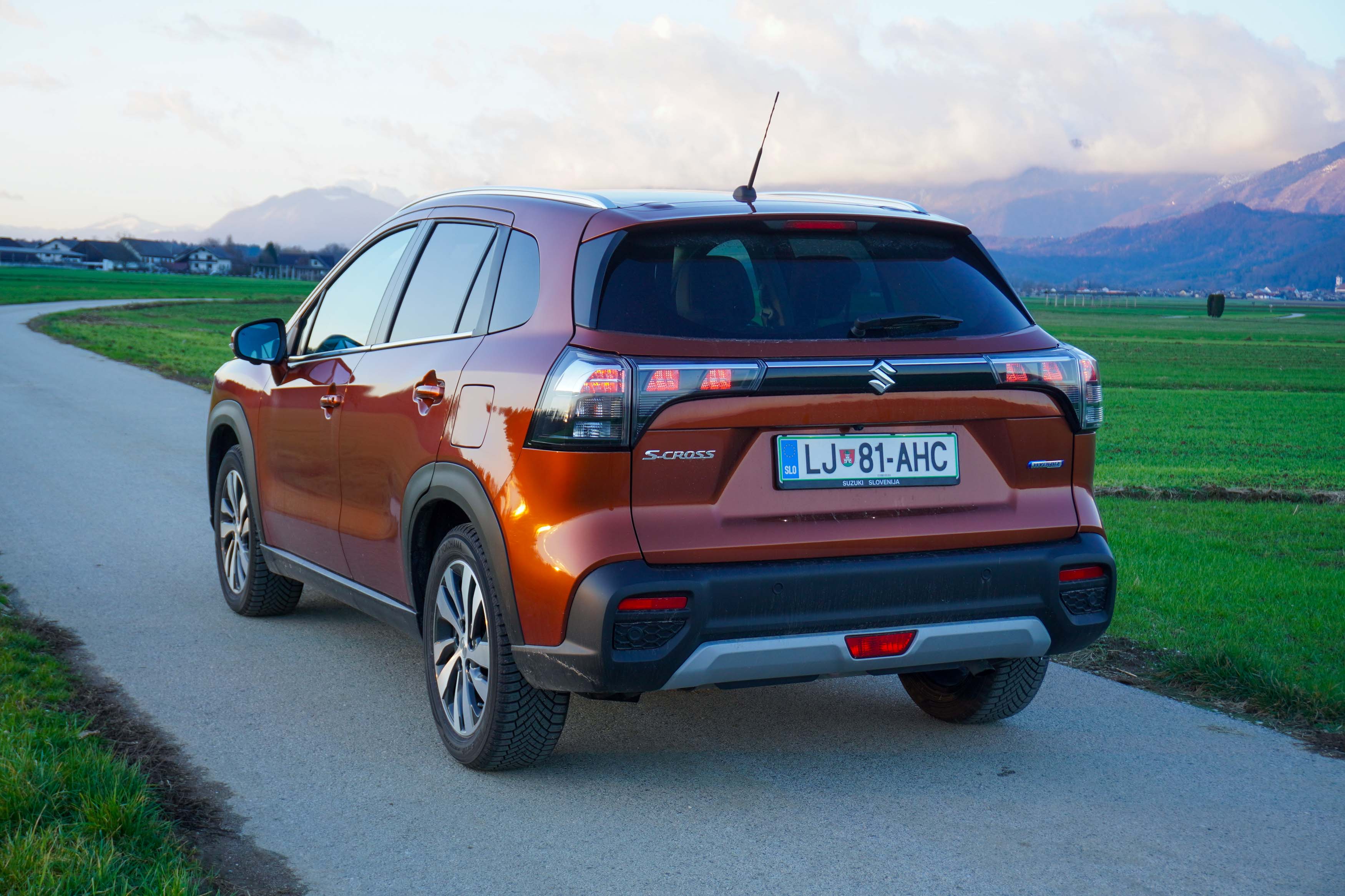 Enako kot vitara je tudi S-cross sedaj dobil nekoliko šibkejši 1,4-litrski turbo bencinski motor z največjo močjo 81 kW, ki mu je v pomoč blagi hibridni sistem, ki ga zagotavlja električni motor z največjo močjo 12,2 kW in deluje kot zaganjalnik in generator. Sistem rekuperira zavorno energijo v električno, ki je shranjena v 48 voltnem litij-ionskem akumulatorju in jo prek pretvornika v 12 voltno napetost uporabi pri speljevanju in pospeševanju pri nizkih vrtljajih bencinskega motorja, ko turbinski polnilnik še ne deluje v polnem obsegu. Sistem rekuperacije deluje samodejno, voznik nanj nima vpliva. Za prenos moči je v preskusnem avtu skrbel 6-stopenjski samodejni menjalnik z neobičajno prestavno kuliso. Ob potegu prestavne ročice do konca namreč prestavite v ročni način prestavljanja, običajni D položaj za vožnjo je stopnjo prej. Nič narobe, le navaditi se je treba, sicer pa menjalnik deluje uglajeno. Odločnejše pospeševanje, ko se motor zavrti z višjim vrtljaji, je glasno. Tudi vožnja po avtocesti je precej glasna, pa ne zaradi vrtljajev motorja, temveč aerodinamike karoserije.