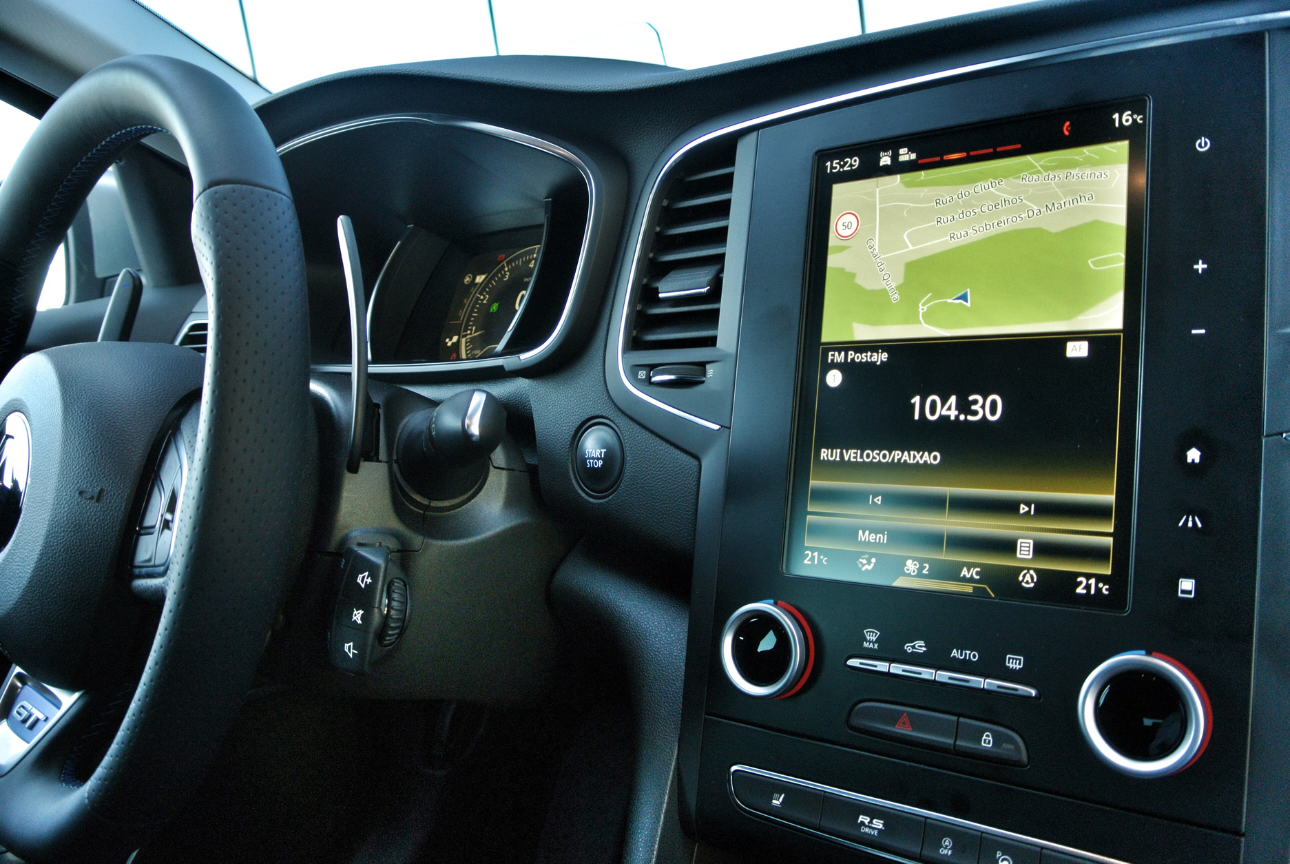 Na meganovi armaturni plošči kraljuje in vleče poglede velik, pokončno postavljen in na dotik občutljiv zaslon, prek katerega upravljamo z multimedijskim sistemom -r-link 2. Prek zaslona tako upravljamo z navigacijo, telefonom, klimatsko napravo, varnostnimi in voznimi pripomočki ter s številnimi možnostmi prilagajanja obarvanosti osvetlitve in oblike digitalnih merilnikov. R-link 2 bo na voljo v bolje opremljenih različicah, ostale bodo imele vgrajen manjši zaslon multimedijske naprave.
